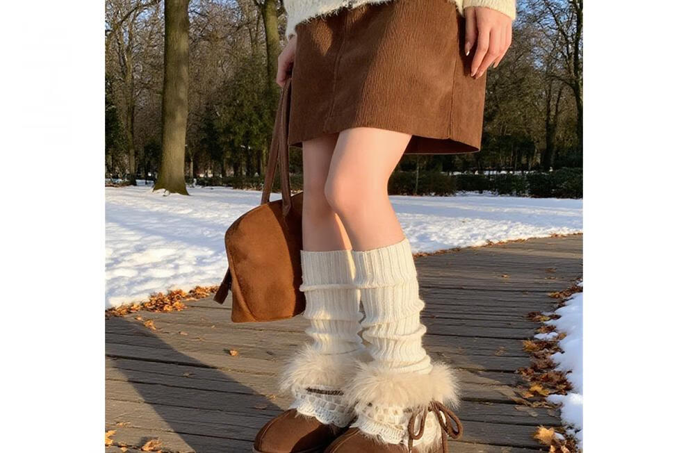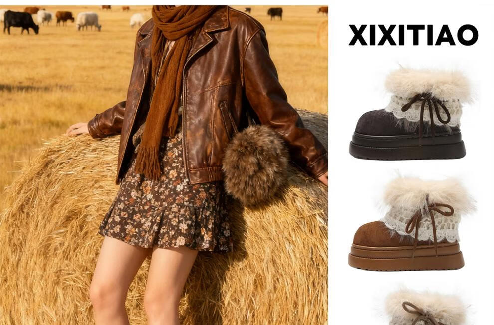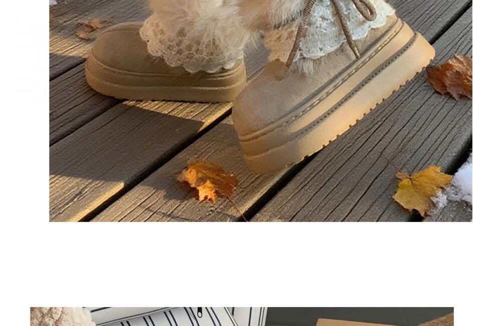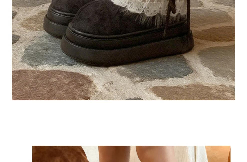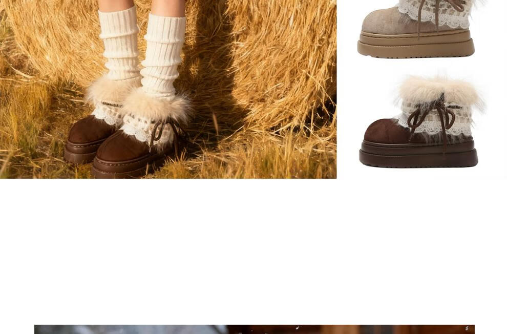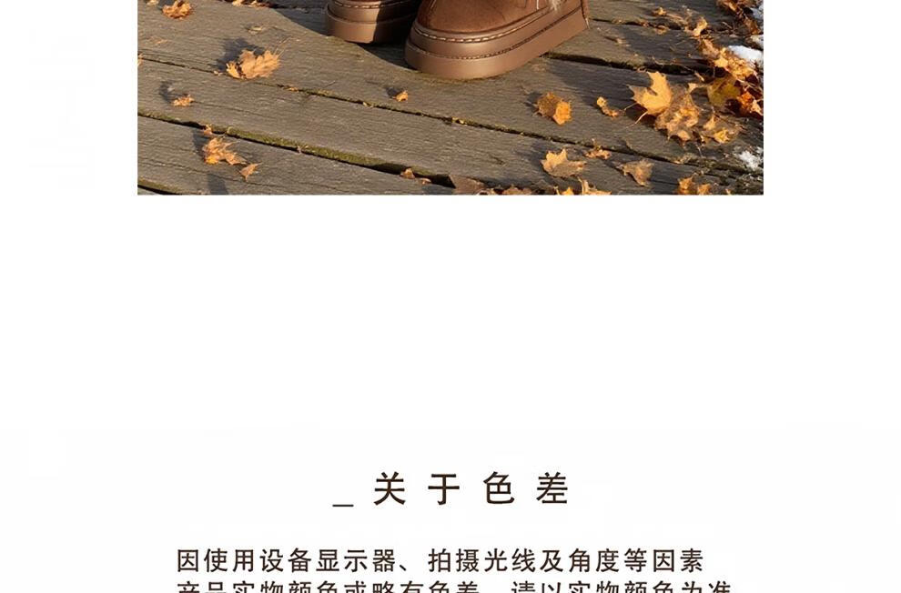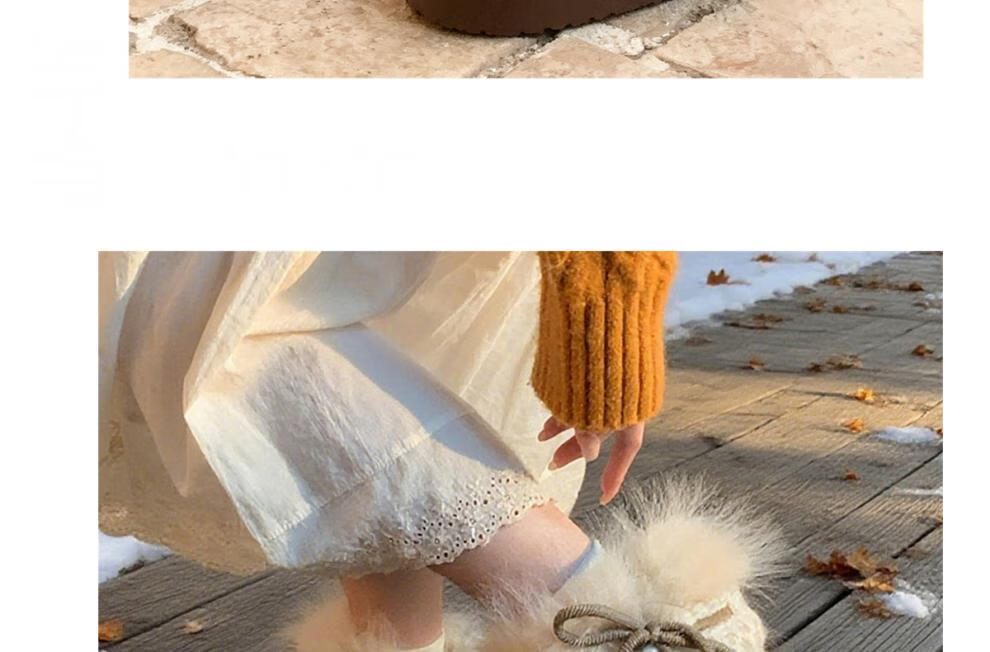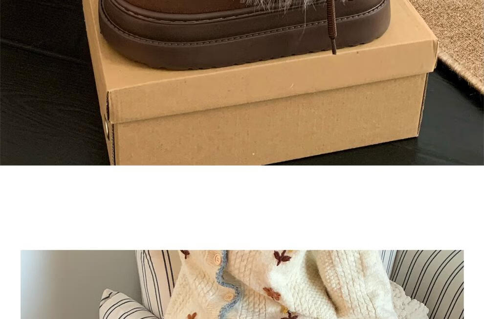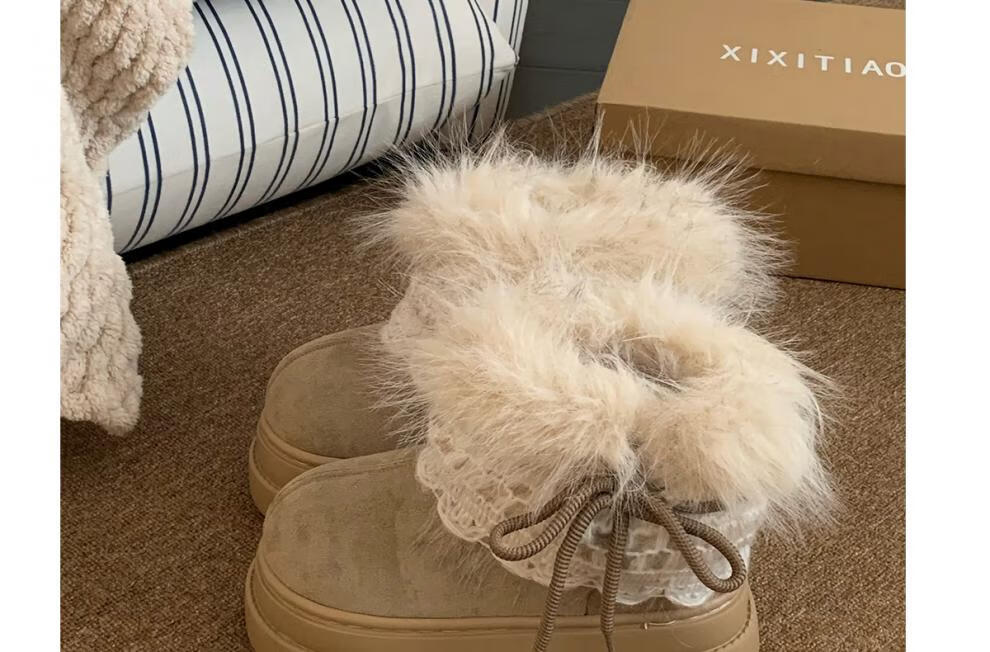 稻草人(MEXICAN)冬季舒适女士ins风毛毛雪地靴增高厚底加绒防滑费尔岛短靴子棉鞋 深棕色【系带毛毛蝴蝶结】 38 -39【标准码】
