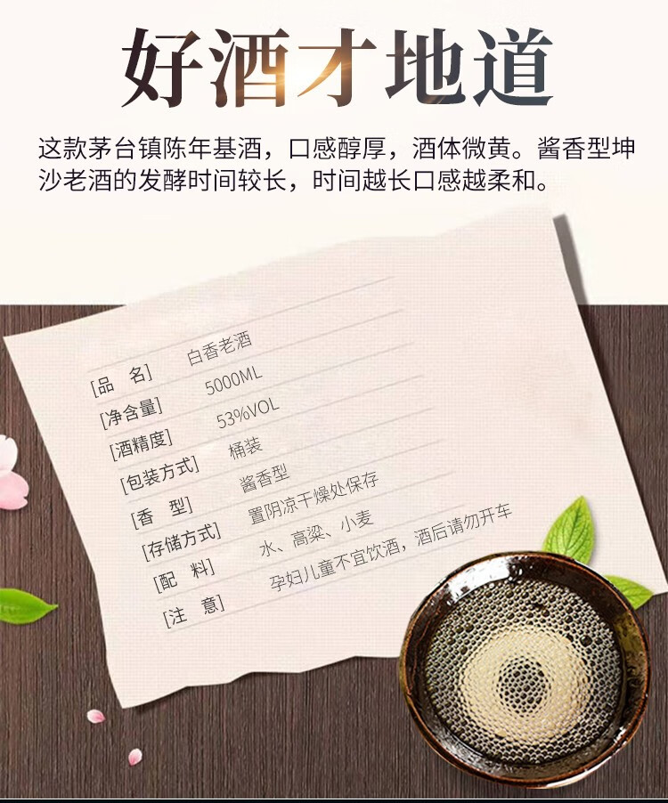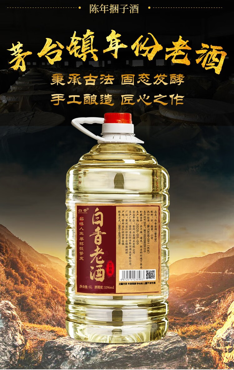 BAIXIANG茅台镇陈年坤沙桶装纯粮食散装白酒泡酒53度酱香型散酒茅香老酒 53%vol 5L 1桶 白香老酒窖藏10