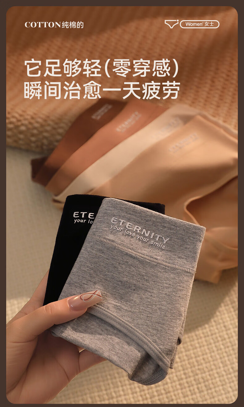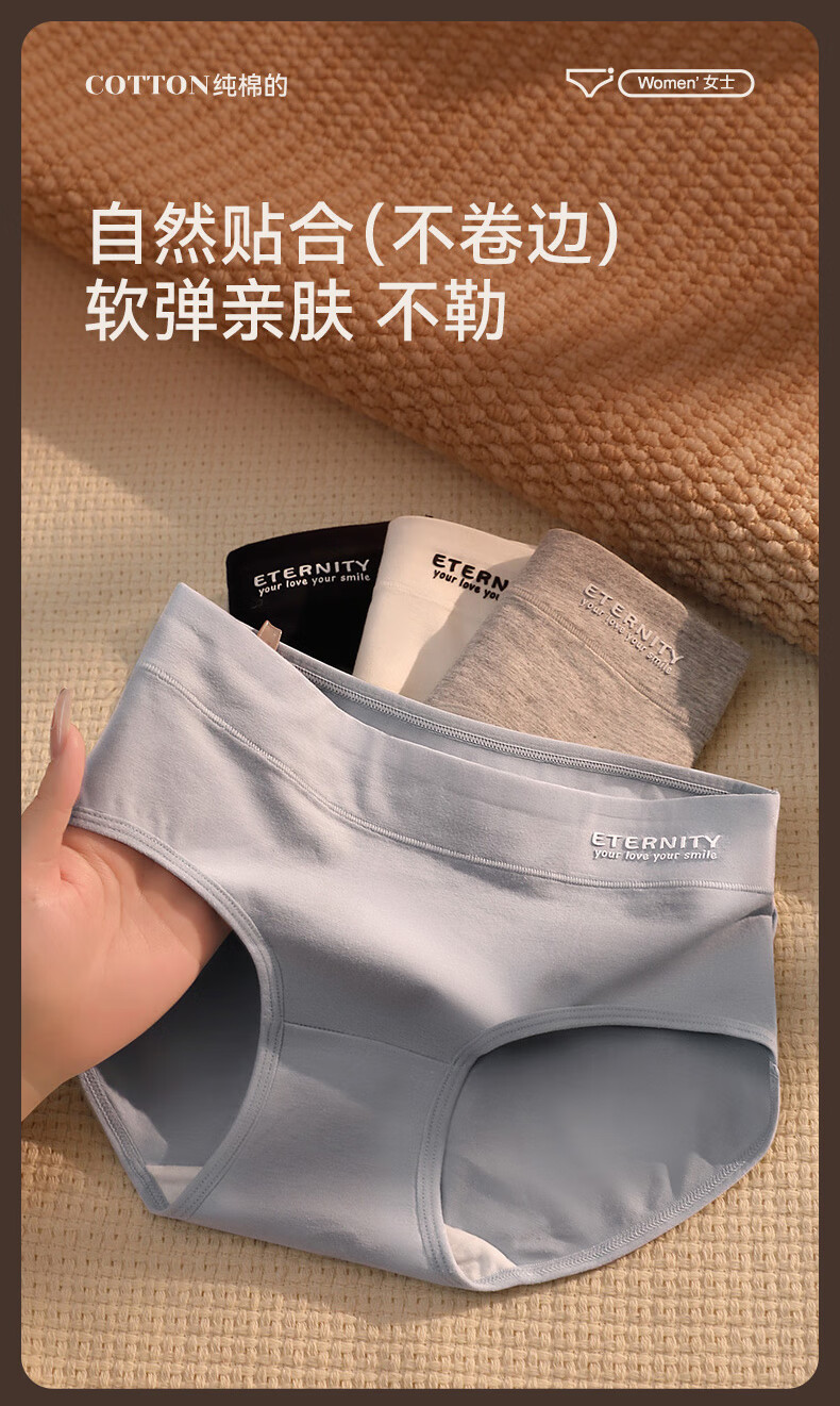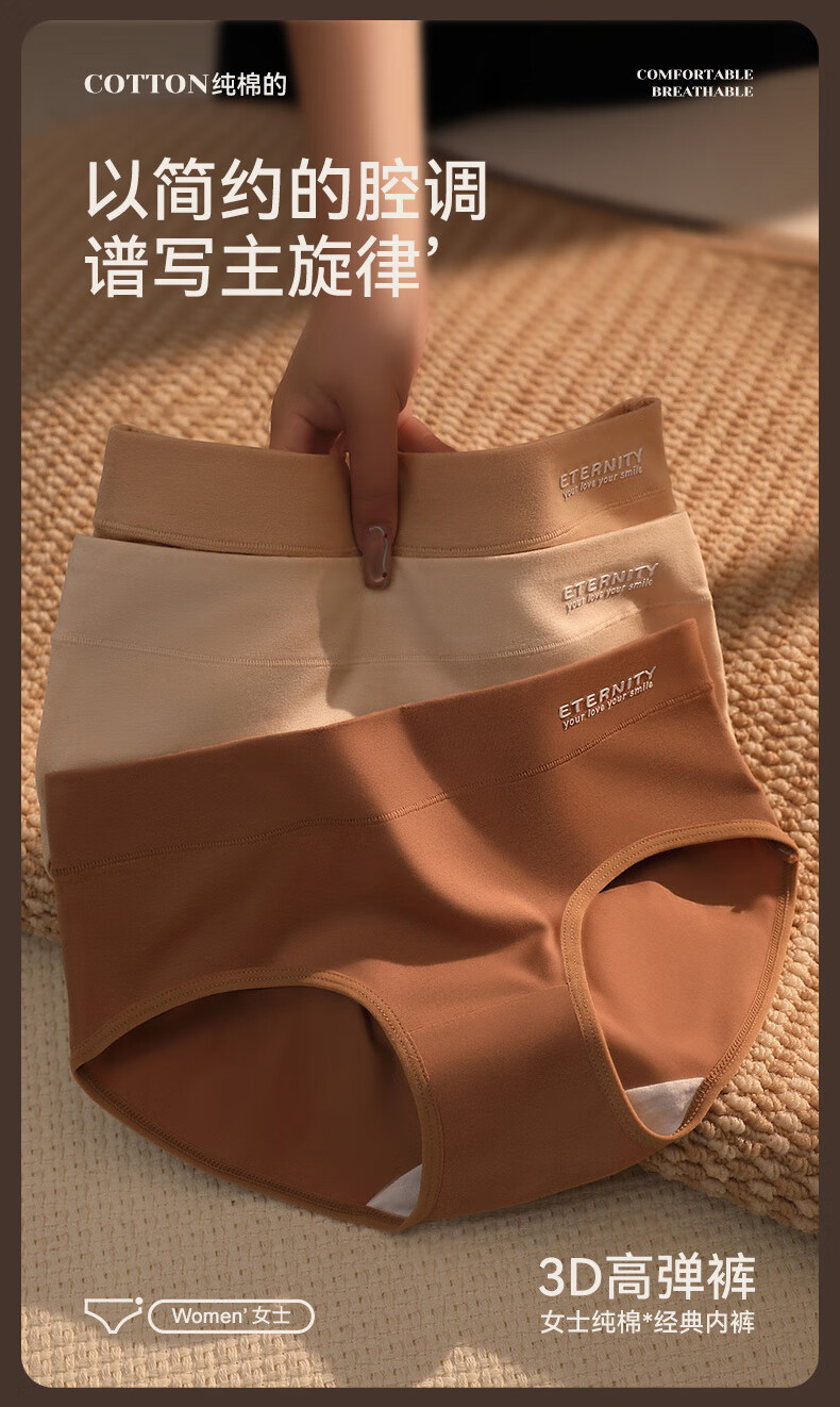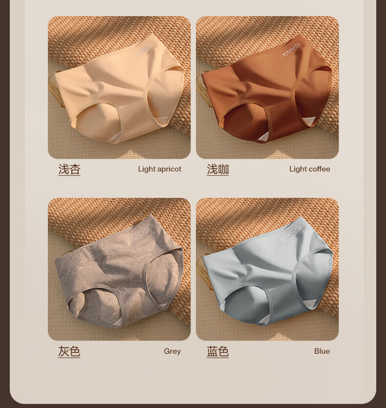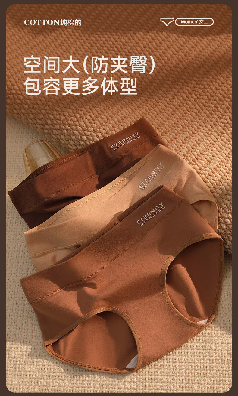 康丽霞(4条)女士内裤纯棉100%全棉抗菌裆中腰大码包臀女生内裤三角裤 4条装:浅咖+深咖+浅杏+深杏 M (80-100斤)
