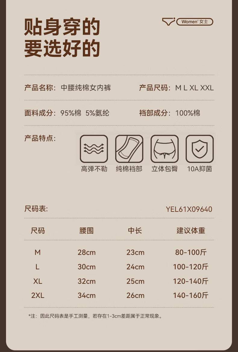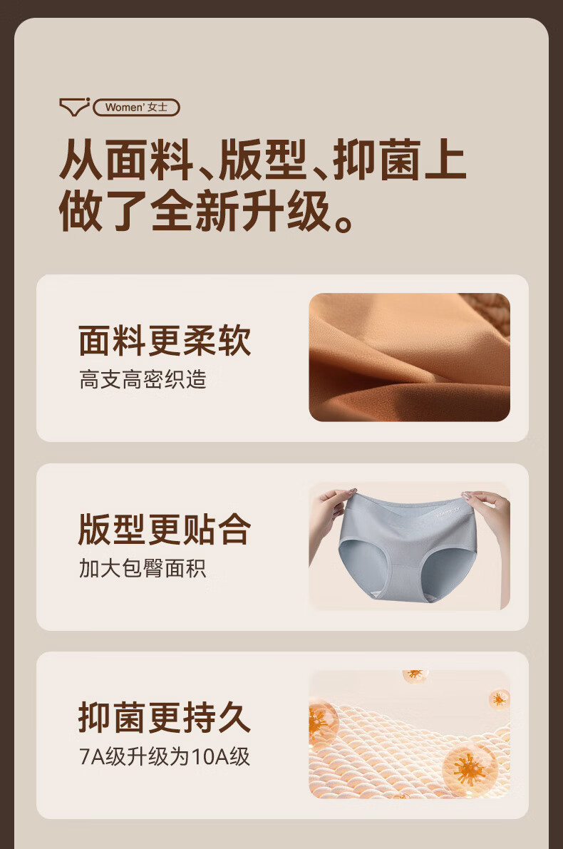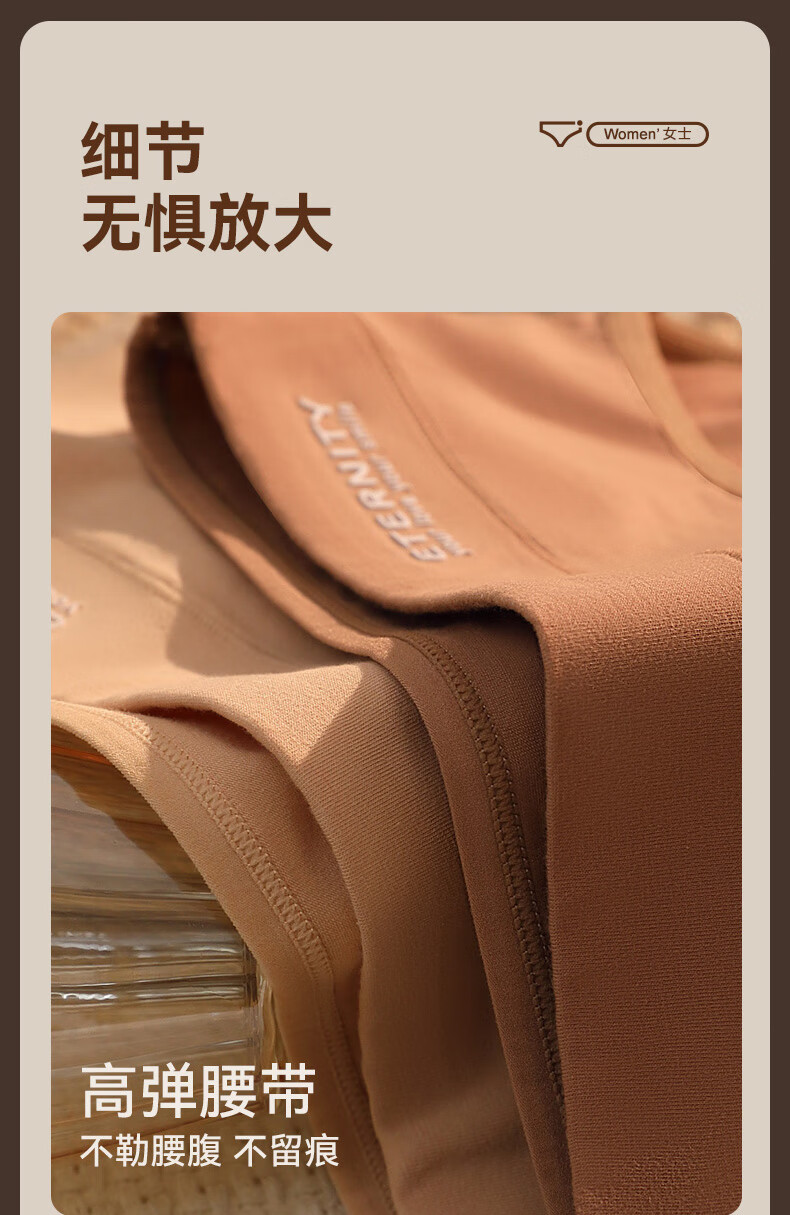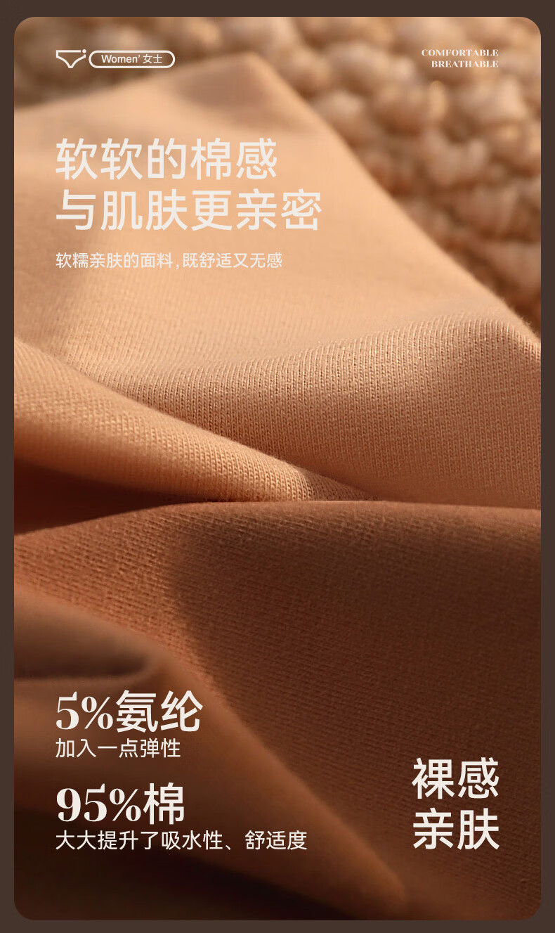 康丽霞(4条)女士内裤纯棉100%全棉抗菌裆中腰大码包臀女生内裤三角裤 4条装:浅咖+深咖+浅杏+深杏 M (80-100斤)