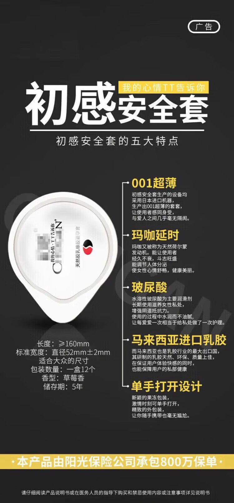 初感001001玻尿酸套安全套男用套水润 1盒*12只