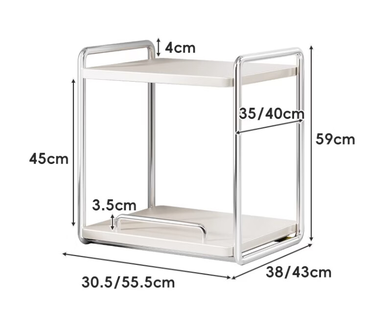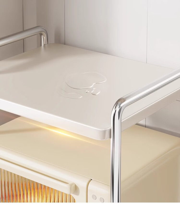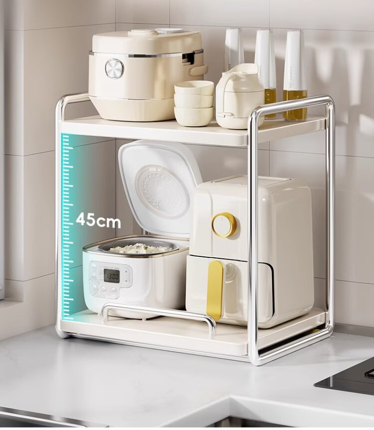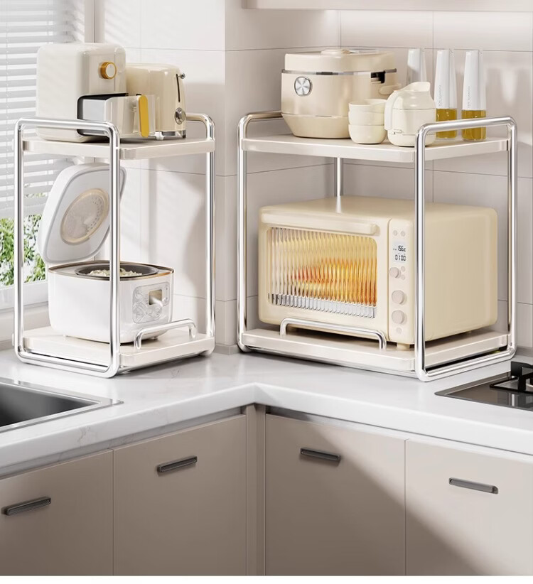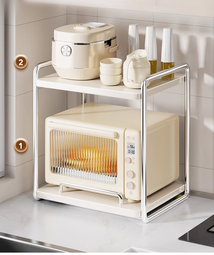 尔思家厨房置物架微波炉架子台面多层收纳架家用多功能桌面可抽拉烤箱架 白色双层-中号(可抽拉)