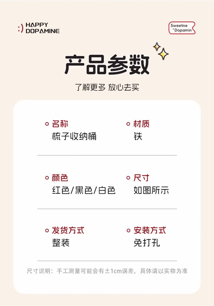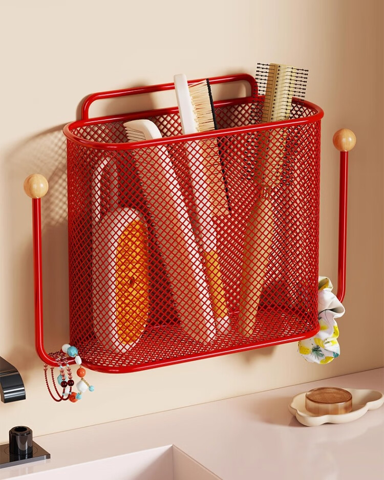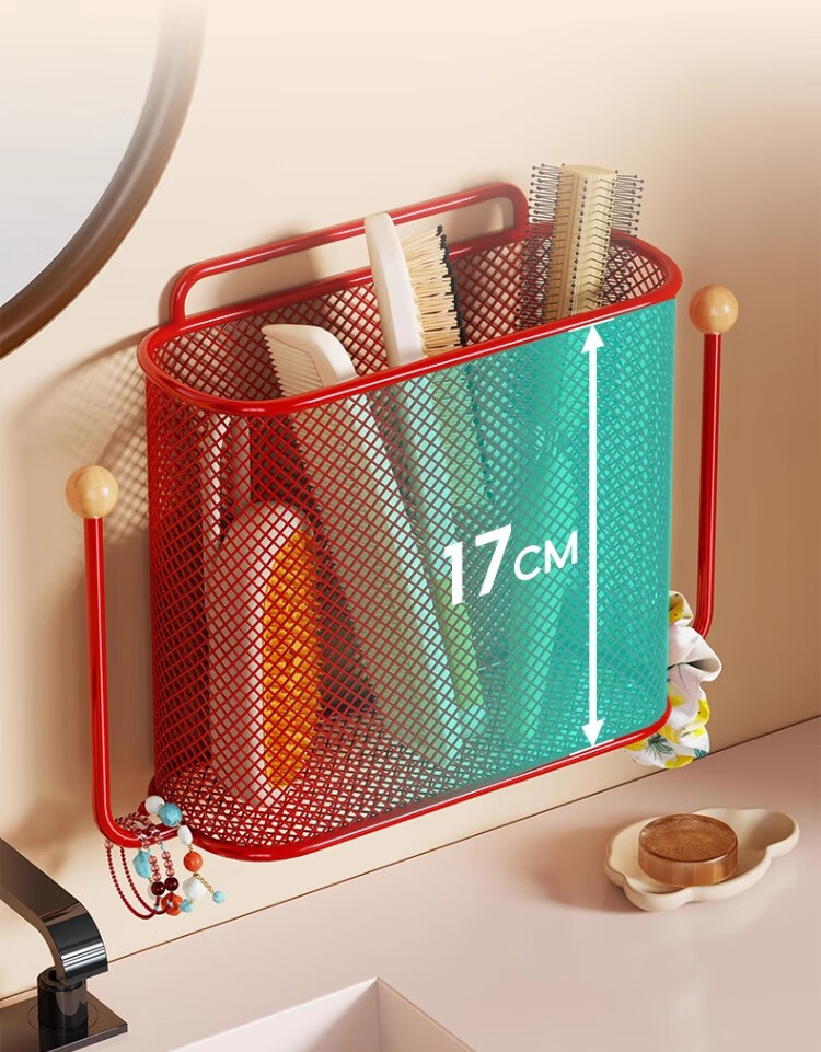 尔思家卫生间置物架浴室免打孔洗漱台墙上梳子架壁挂式洗漱台收纳神器 红色