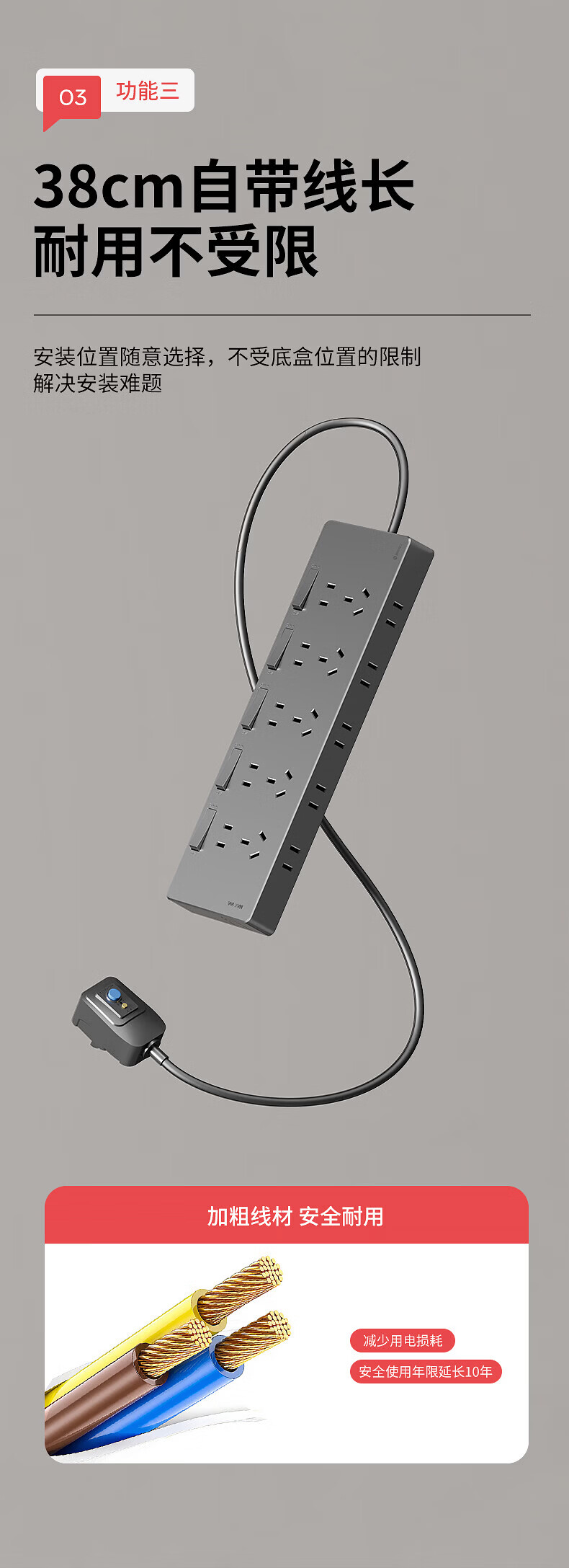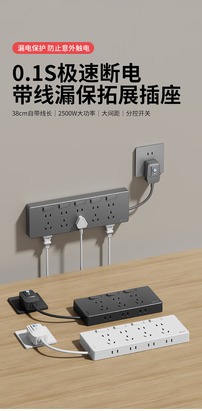 国际电工家用厨房漏保插头拓展插座防漏电直插式扩展插座带电源线分控插排 白色带漏保【3开21孔】向右扩展