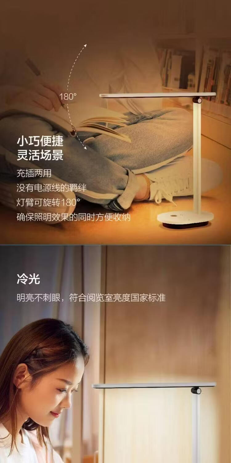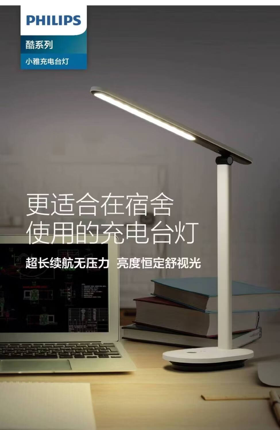 飞利浦(PHILIPS)充电插电两用台灯书桌学习专用学生卧室床头灯宿舍 小雅 66140充电台灯/3000毫安/白色