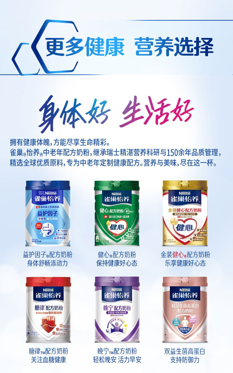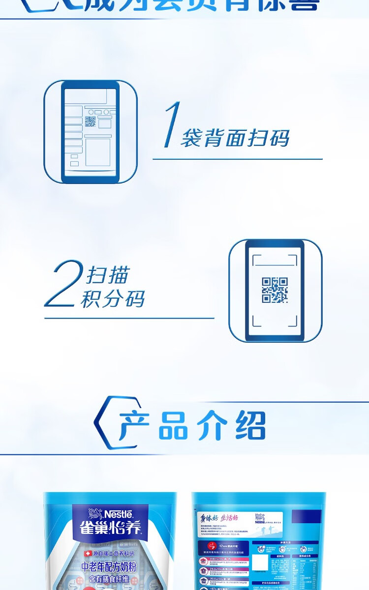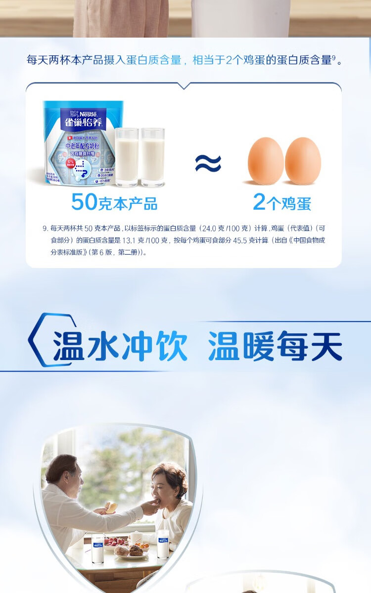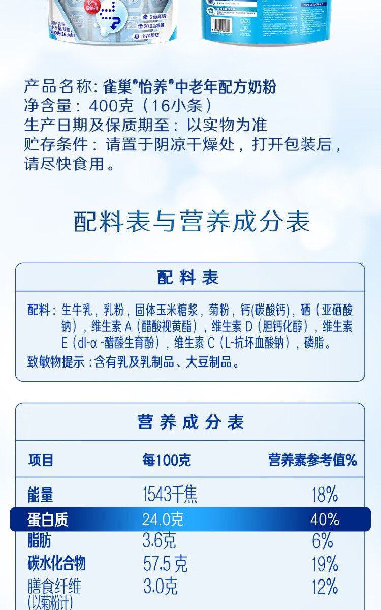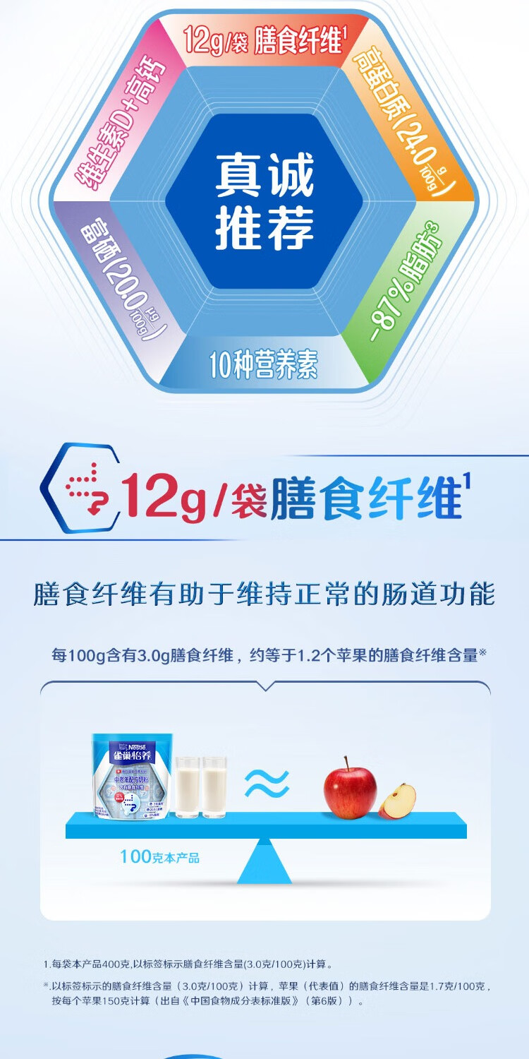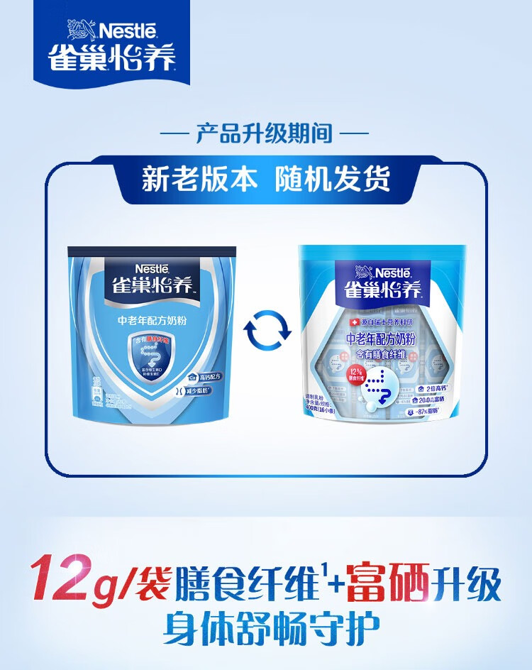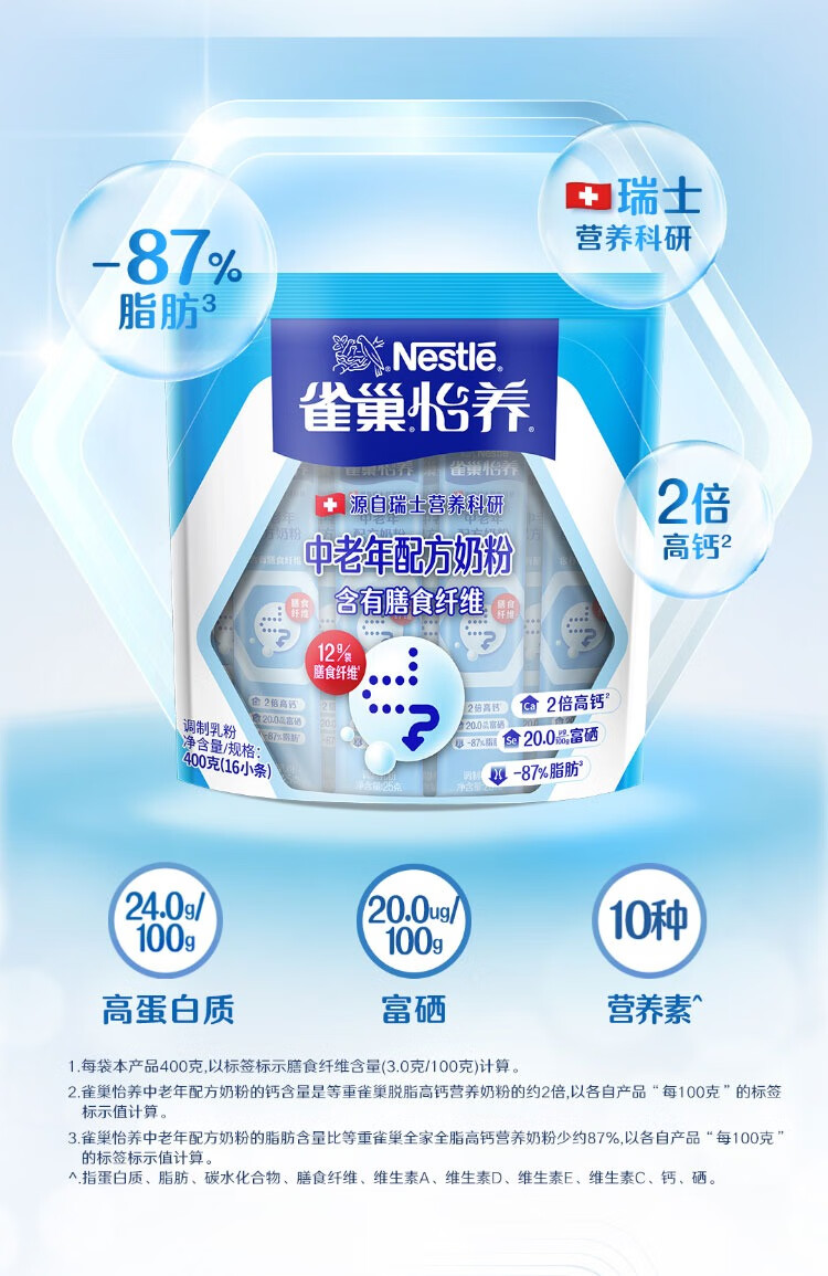 雀巢(Nestle)怡养膳食纤维中老年奶粉高钙400g成人奶粉 独立包装