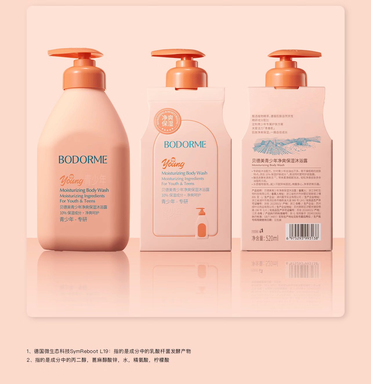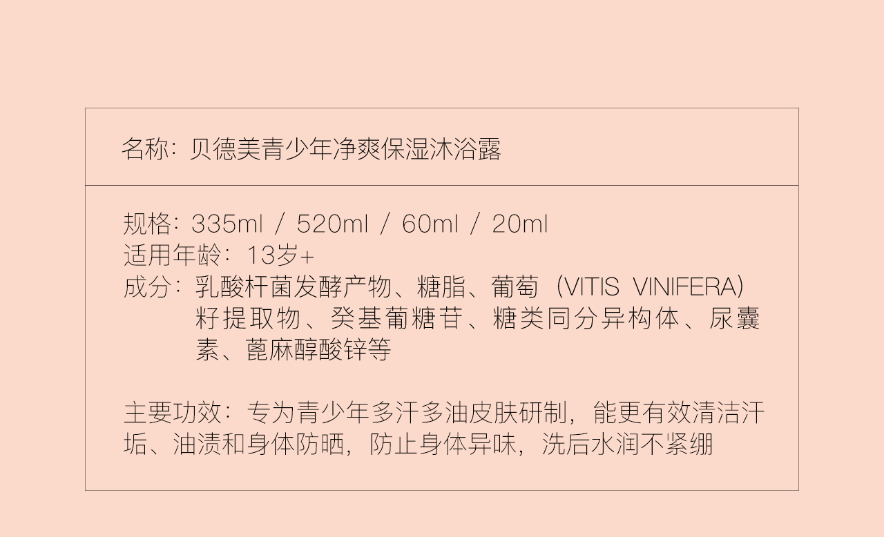 贝德美青少年沐浴露青春期专用除螨持久留香男女孩中学生 520ml
