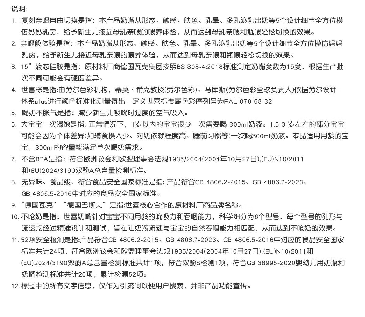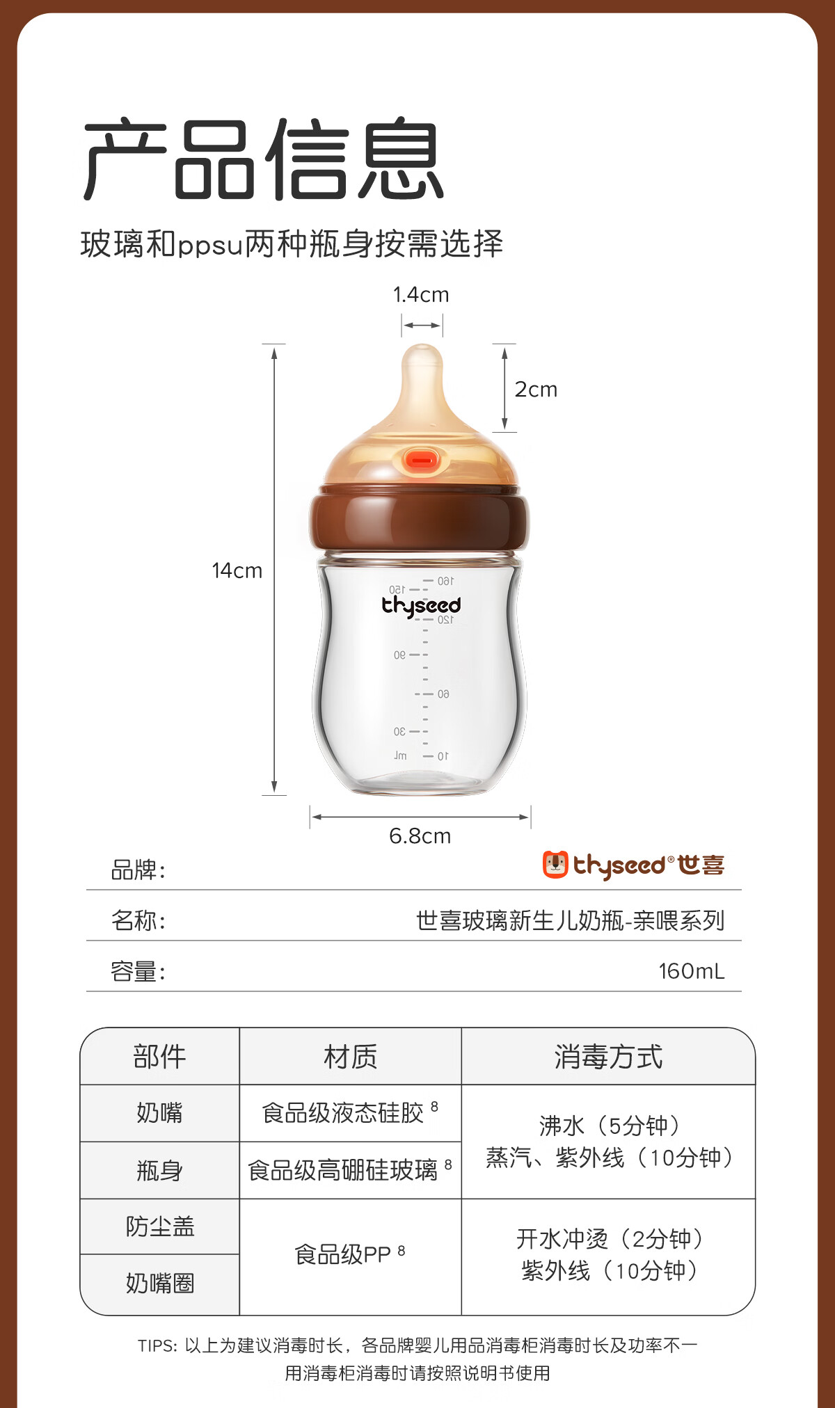 世喜新生儿1-2个月防胀气奶瓶玻璃婴儿仿母乳奶嘴160ml