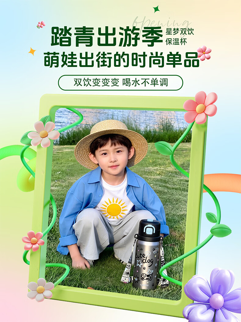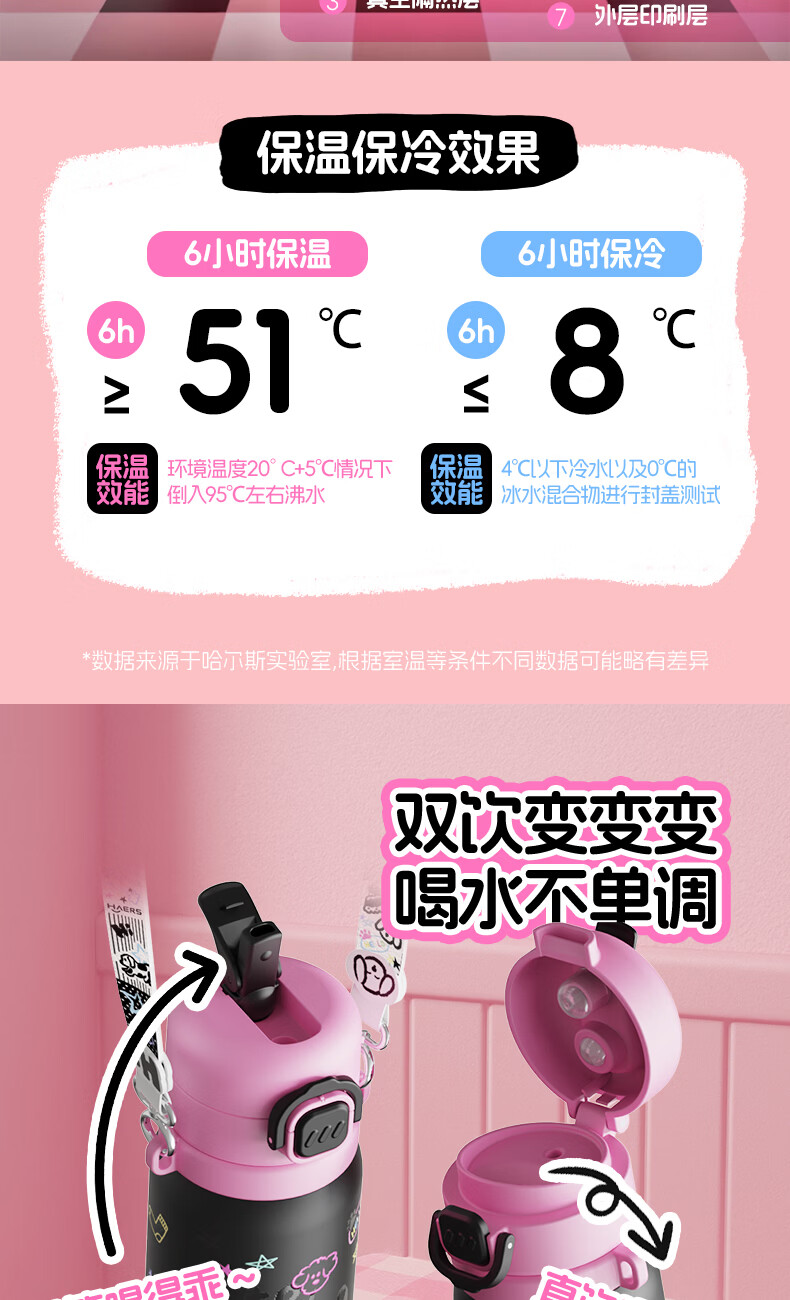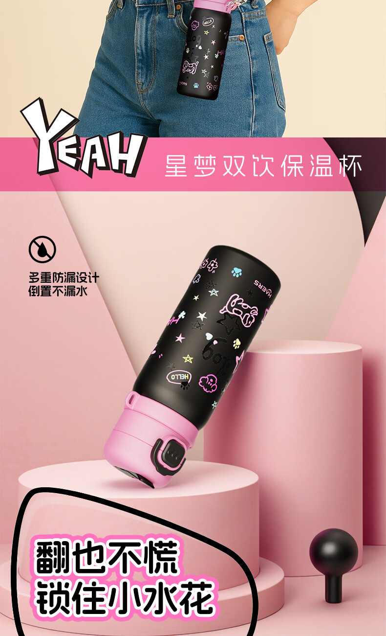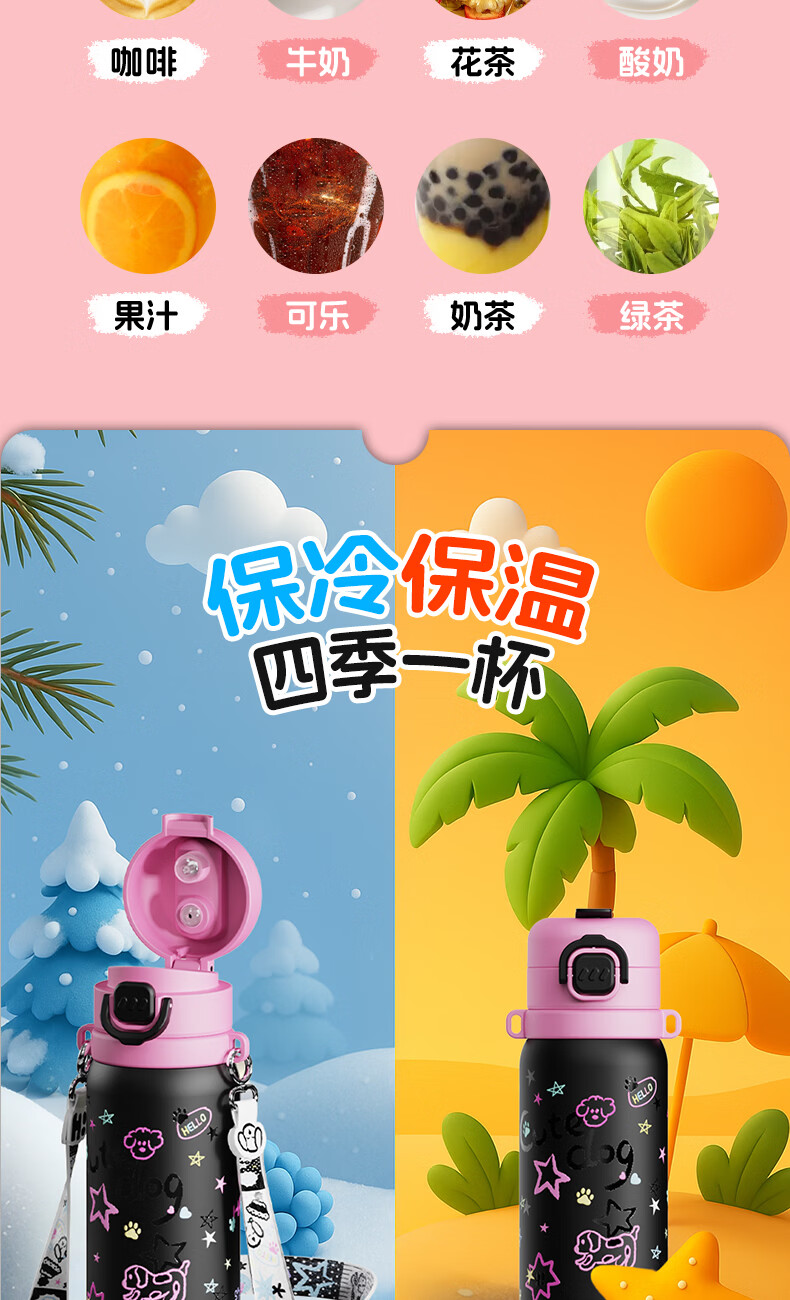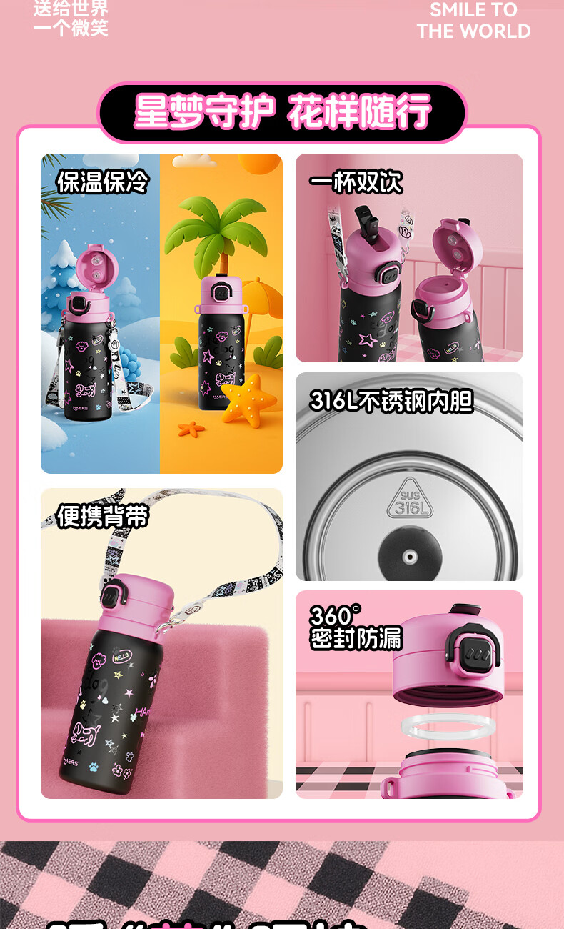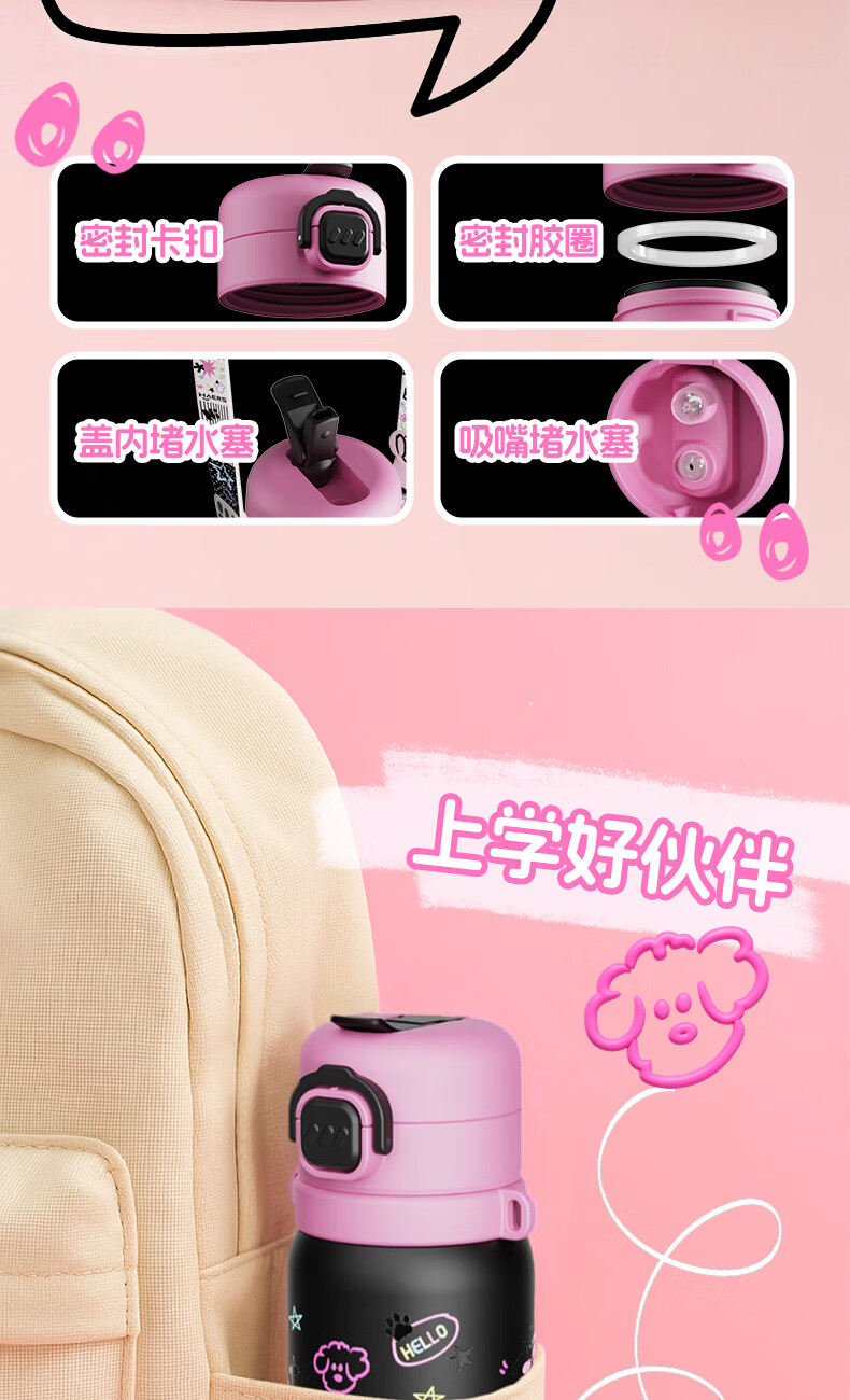 哈尔斯(HAERS)保温杯儿童吸管杯直饮双饮316L大容量学生水杯6-12岁上学专用