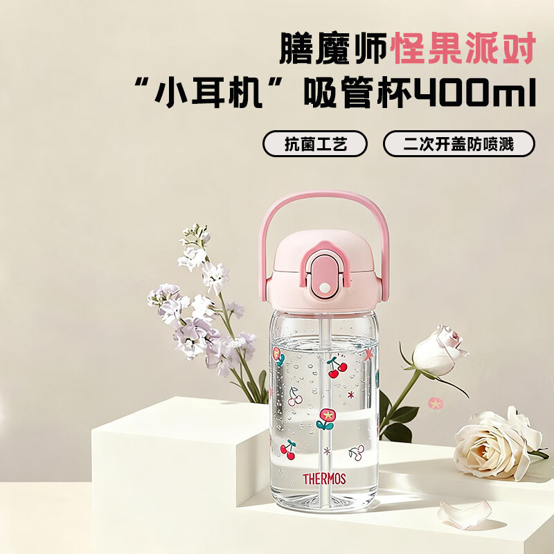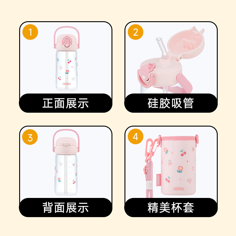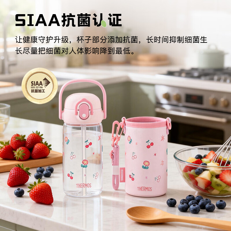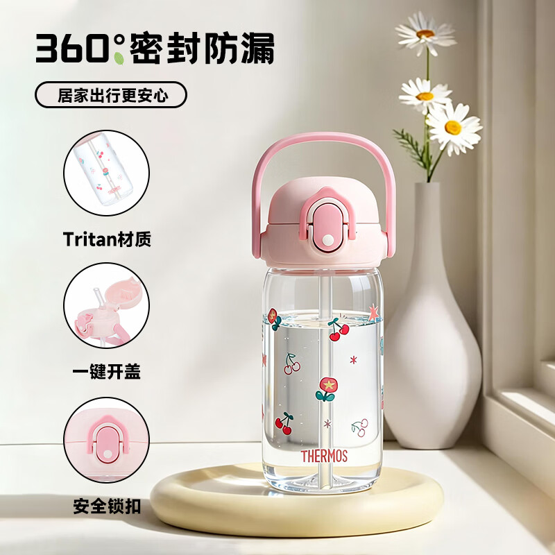 膳魔师(THERMOS)儿童学生杯Tritan杯套幼儿园吸管水杯出行上学杯大容量BBSK
