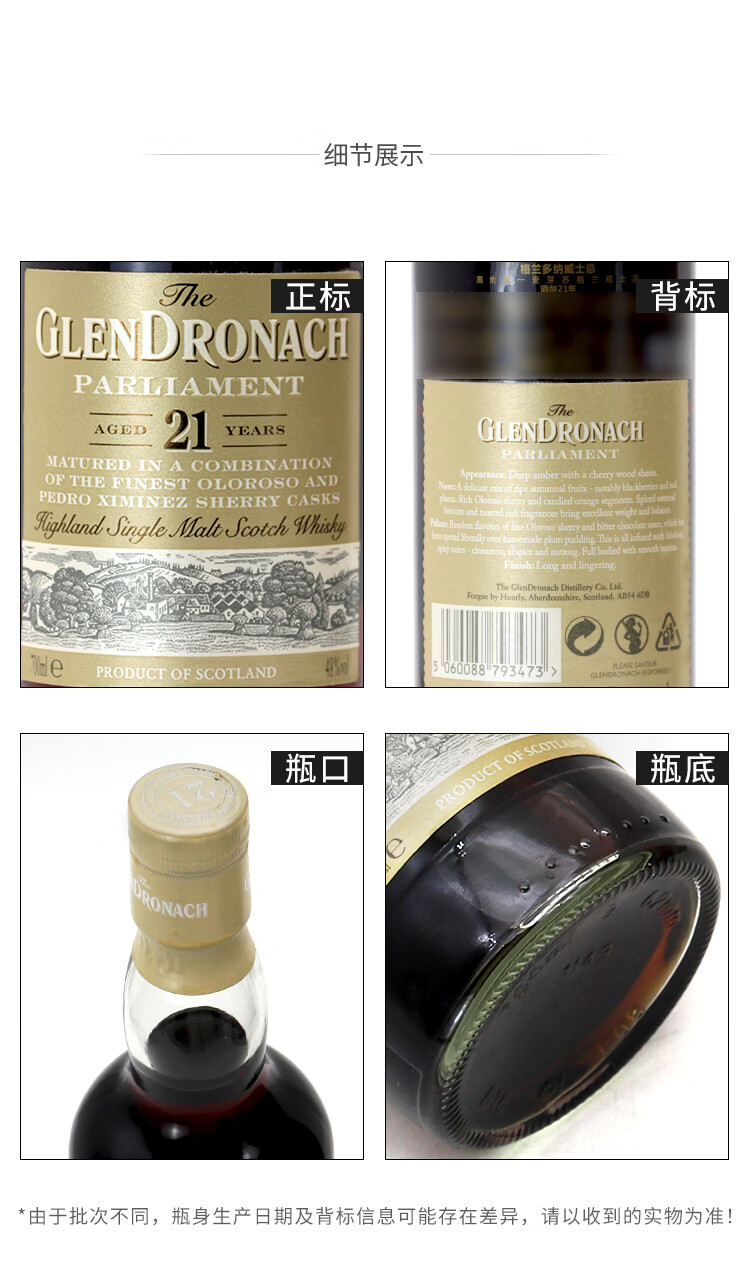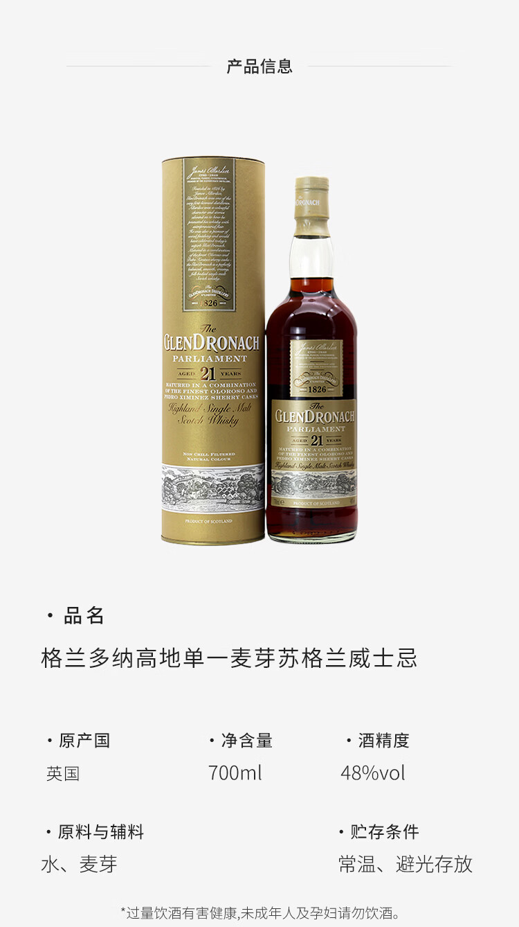 格兰多纳(GLENDRONACH)苏格兰单一麦芽威士忌 英国原瓶进口洋酒 新款格兰多纳18年