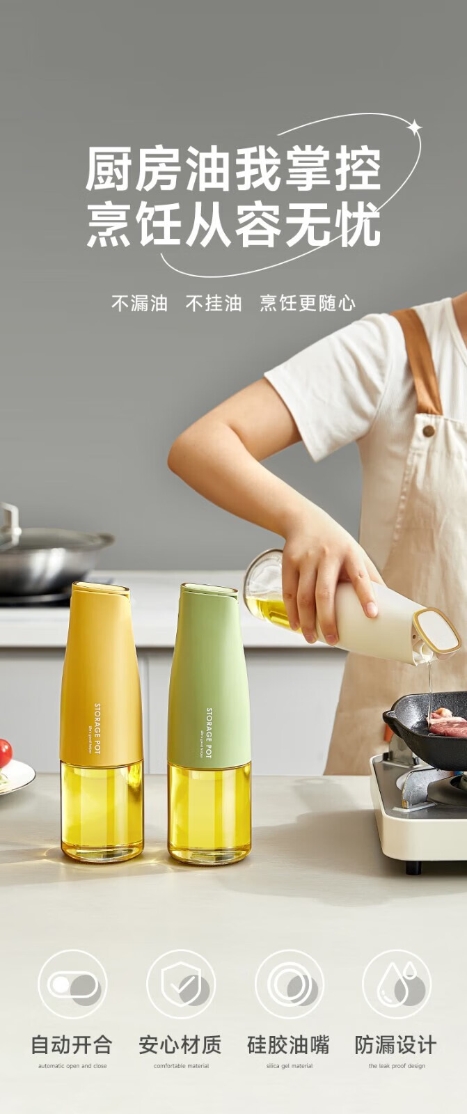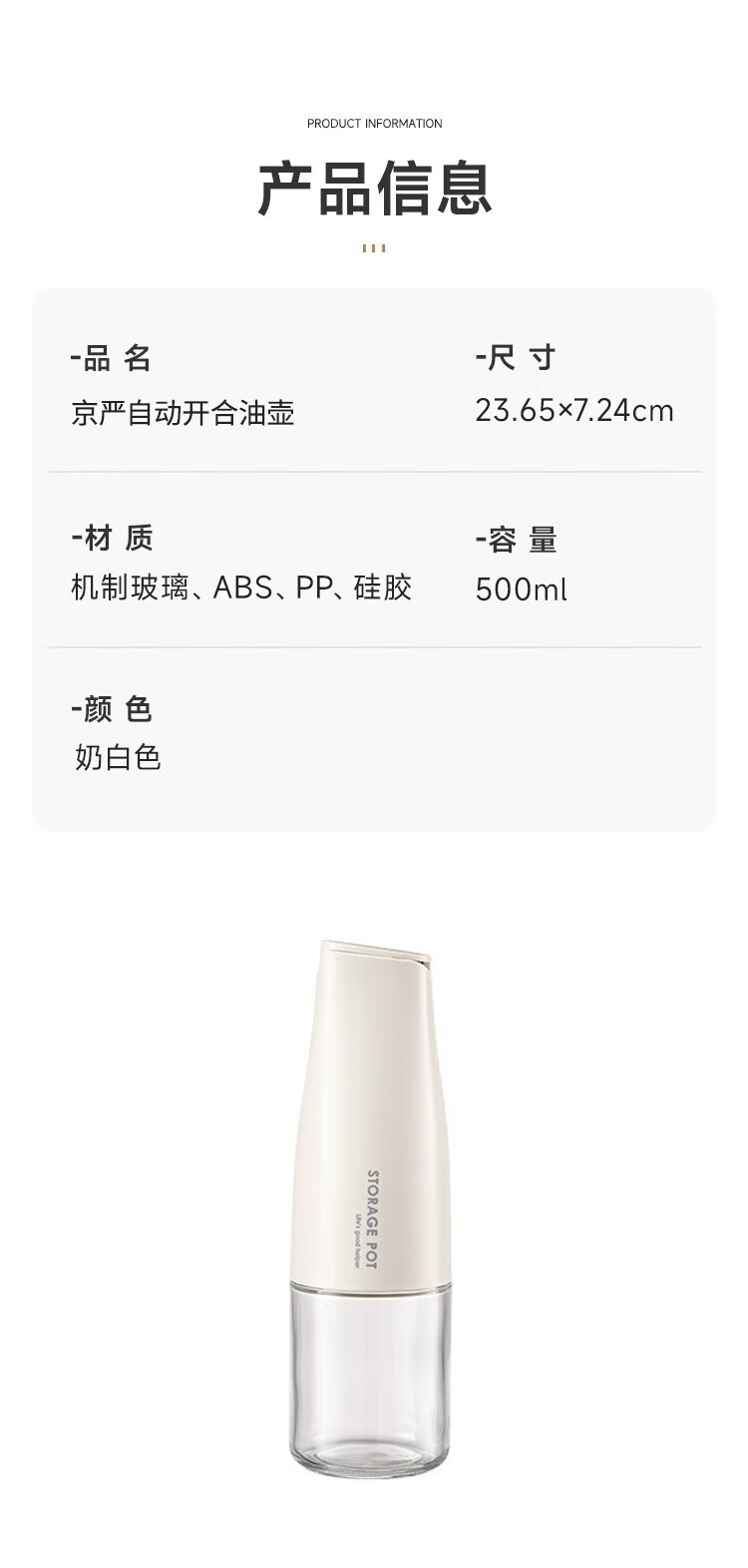 京严油壶家用玻璃油罐厨房食用油喷油壶自动开合不挂油酱油醋调料油瓶 自动开合500ml【体验装】1个装