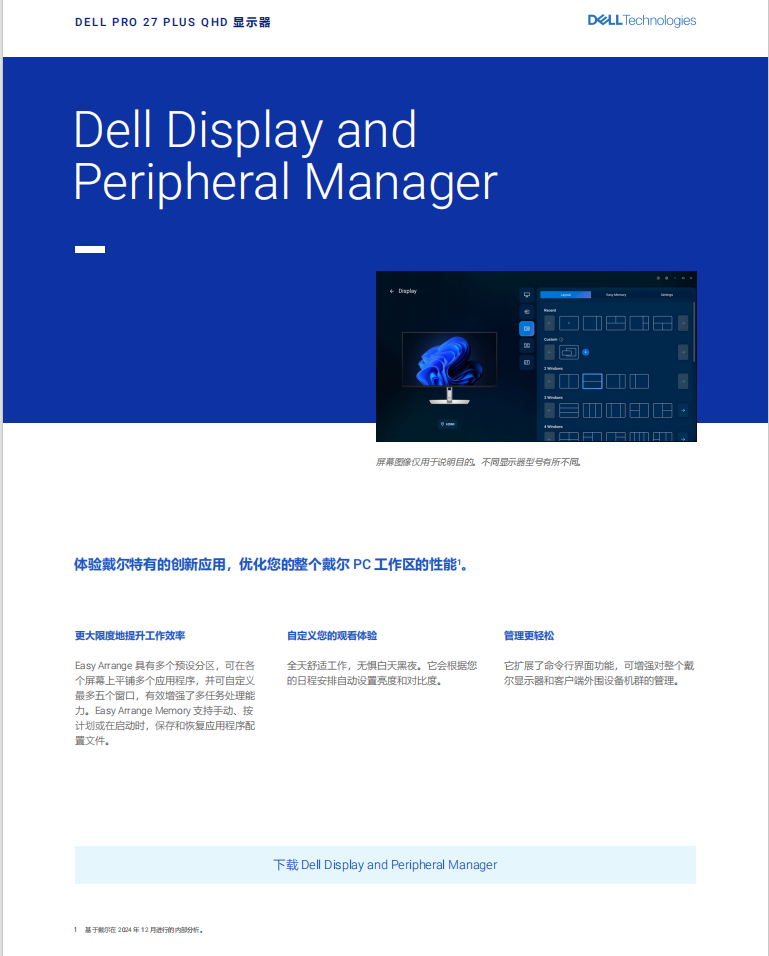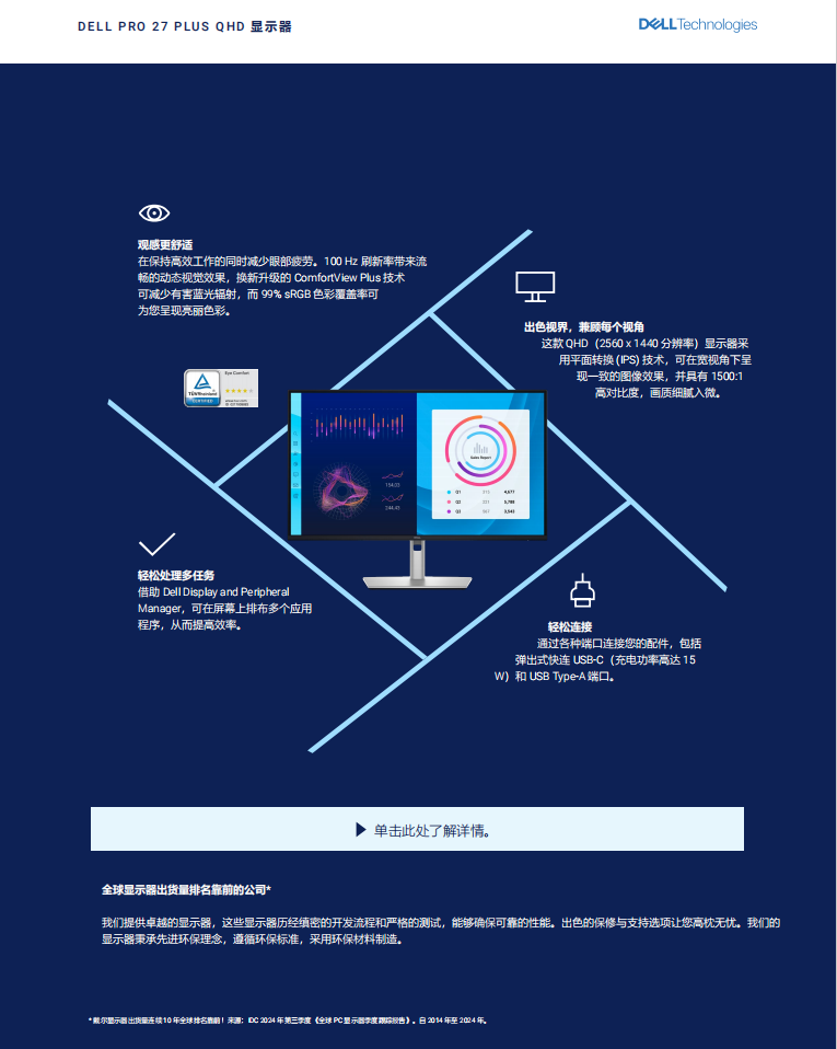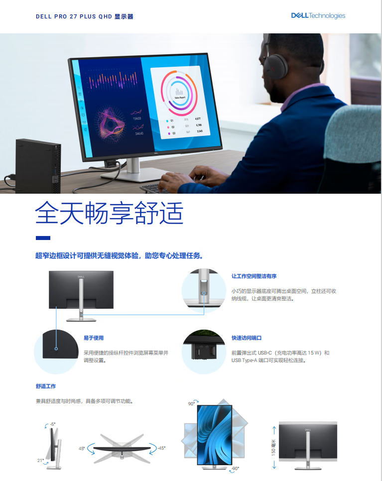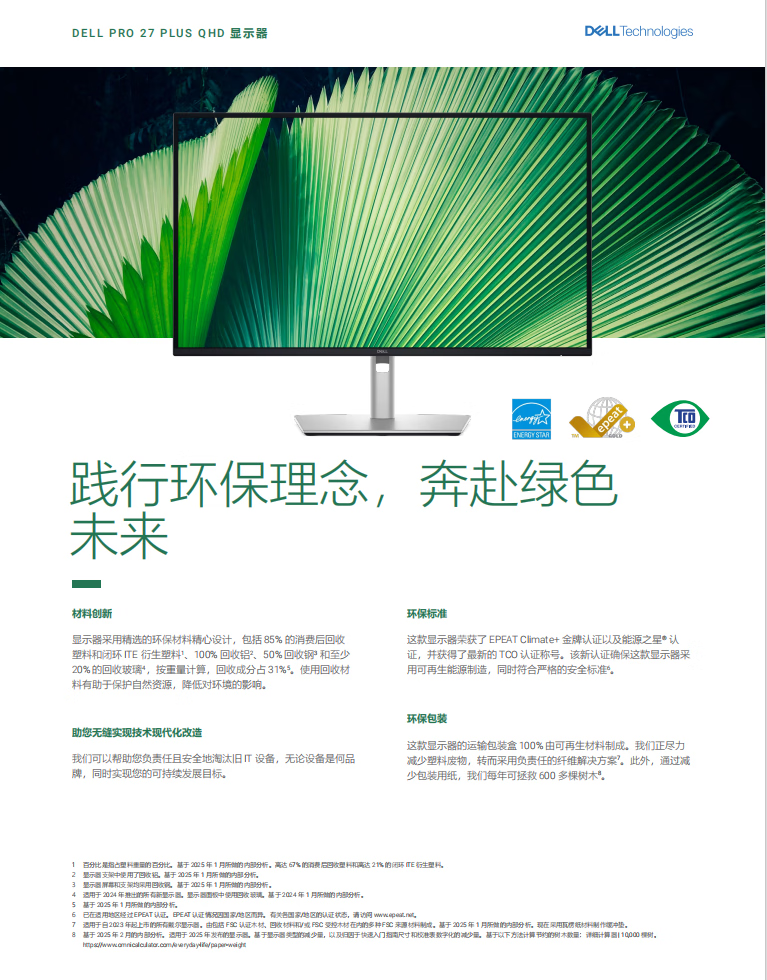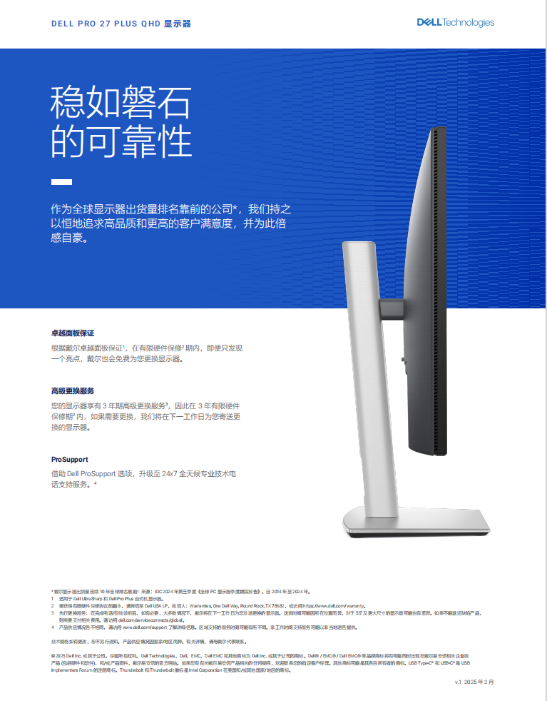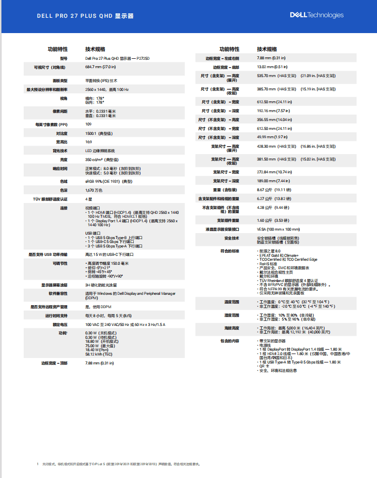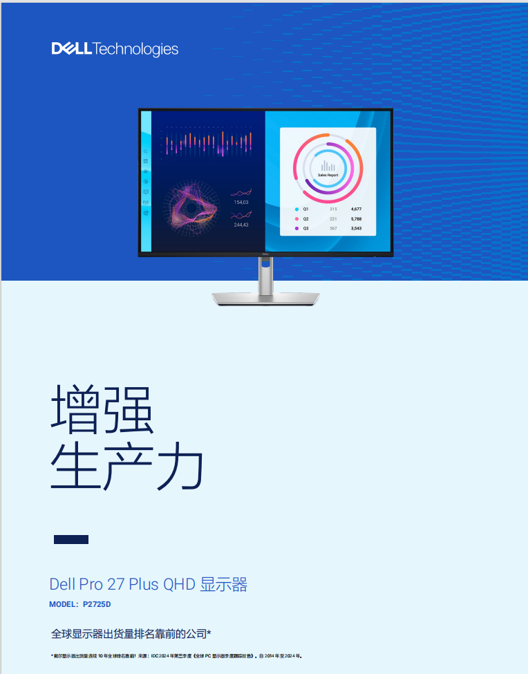 戴尔(DELL)27英寸 办公显示器 2K 100Hz IPS硬件级防蓝光 旋转升降支架 微边框 设计修图 电脑显示屏 P2725D
