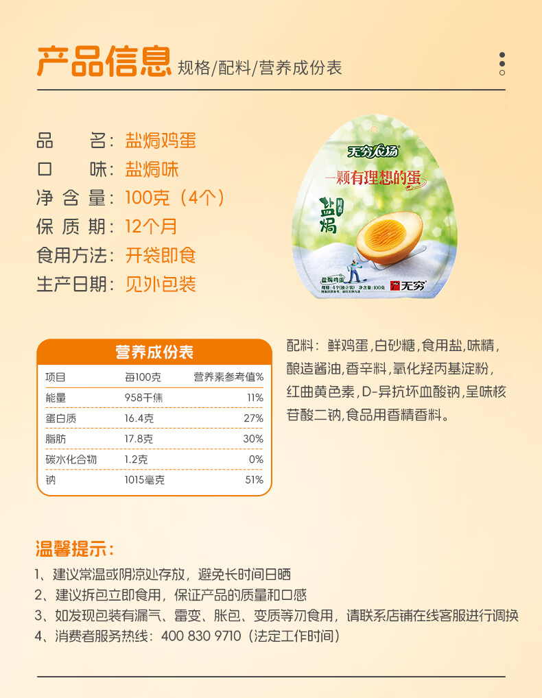 无穷卤蛋休闲零食盐焗鸡蛋100g袋装/4小包