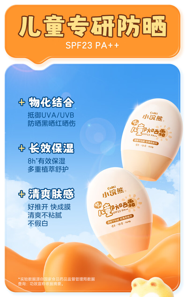 小浣熊儿童防晒霜男女宝宝防晒乳液隔离紫外线学生青少年防晒面霜 【店长推荐立省15元】儿童防晒45g+夏季面霜40g