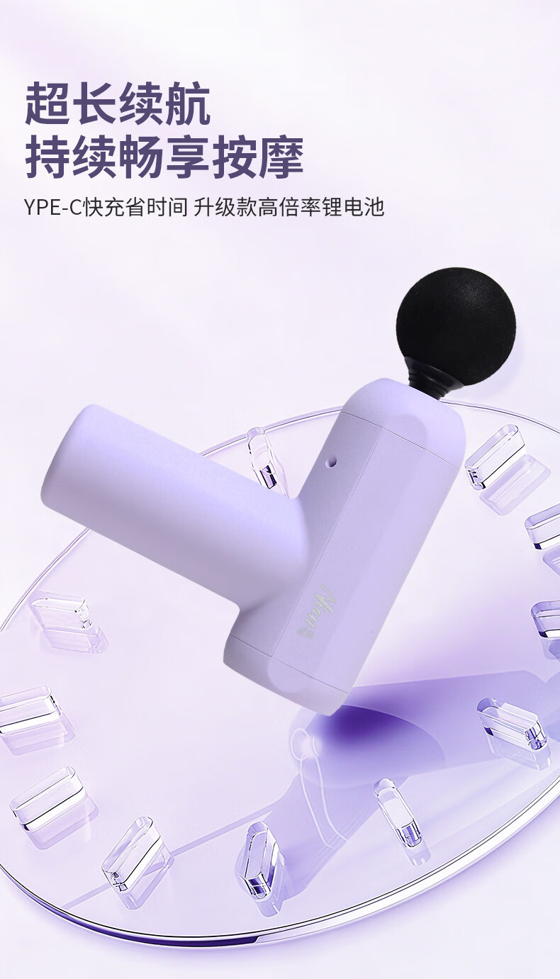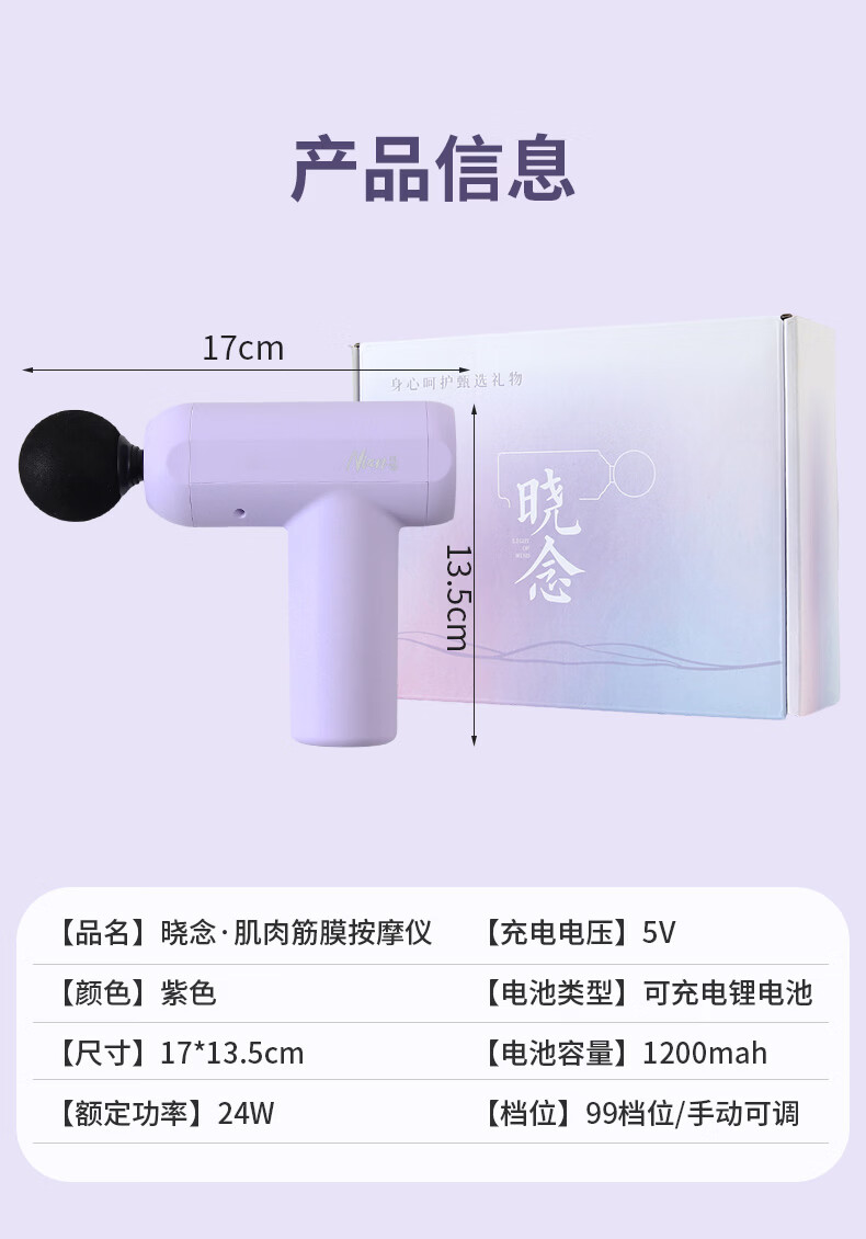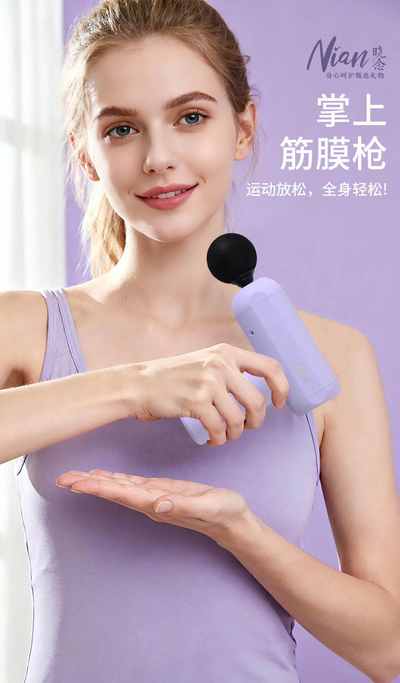 晓念迷你筋膜枪肌肉按摩器多功能电动按摩枪便携式长续航多档调节健身放松肩颈腰背肌送男女友生日礼物 紫色【4款按摩头/多挡调节/持久续航】