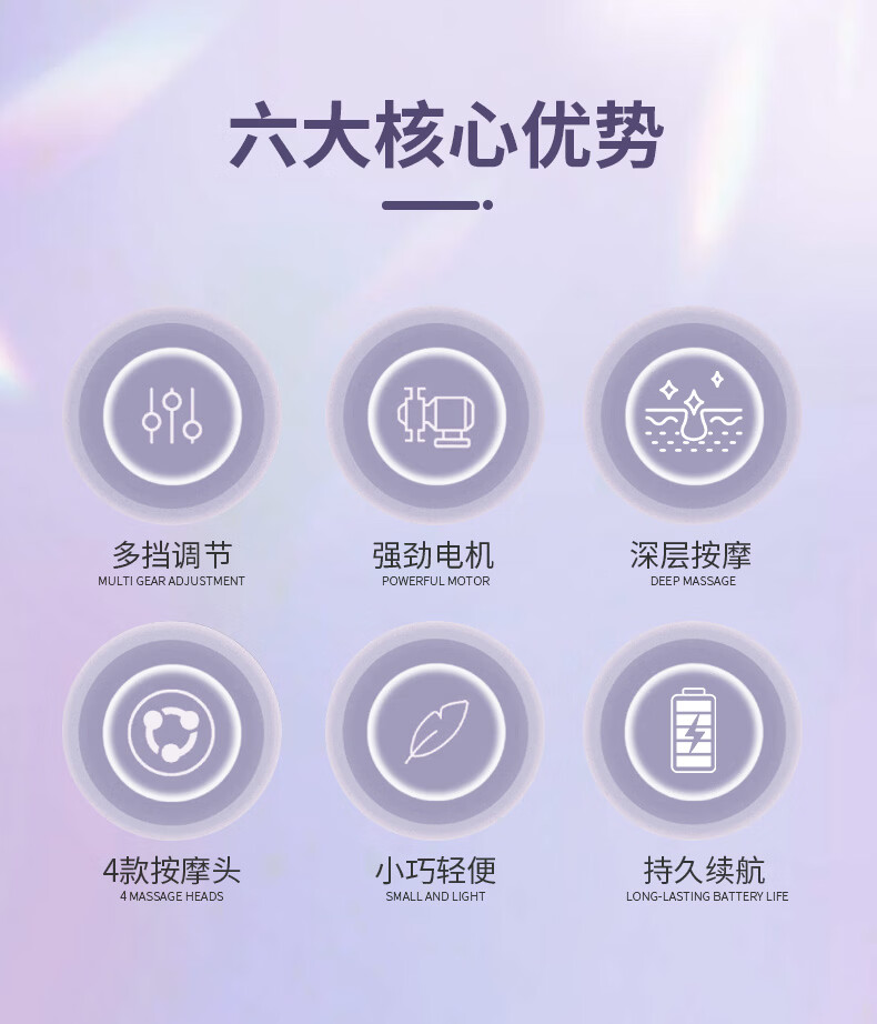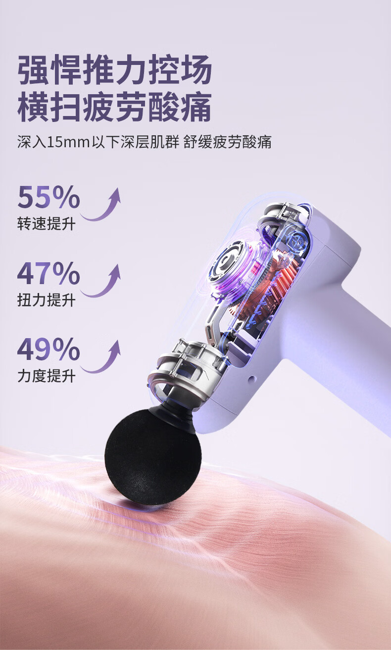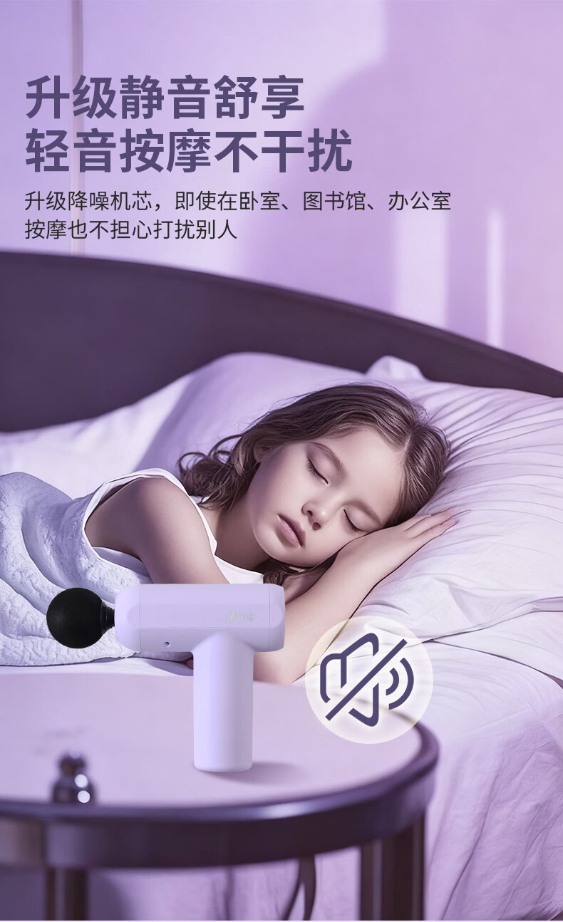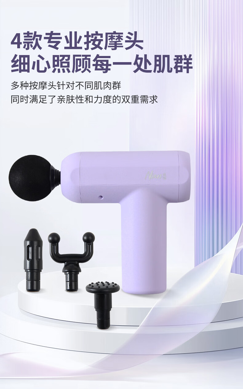 晓念迷你筋膜枪肌肉按摩器多功能电动按摩枪便携式长续航多档调节健身放松肩颈腰背肌送男女友生日礼物 紫色【4款按摩头/多挡调节/持久续航】