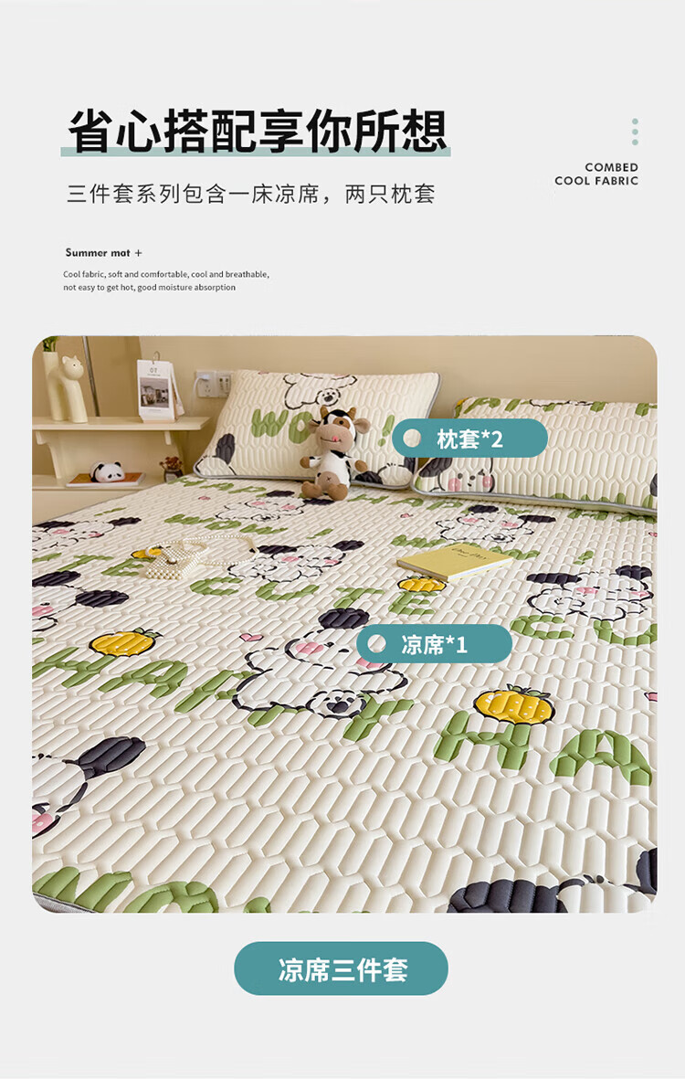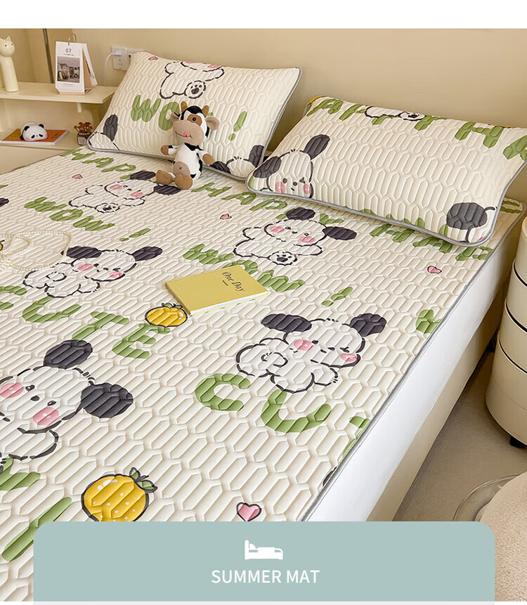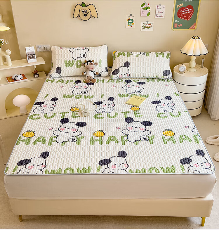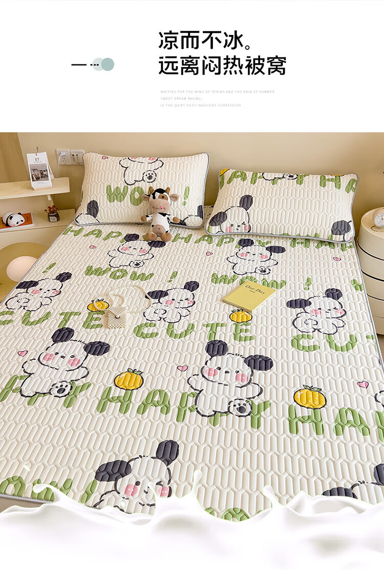 天然乳胶凉席 乳胶凉席加厚宿舍凉席单人双人 可轻柔机洗学生凉席 字母萌犬 150*200三件套