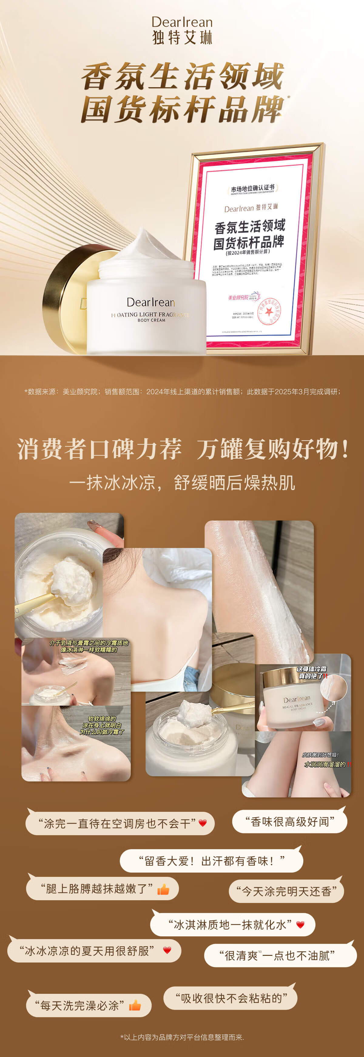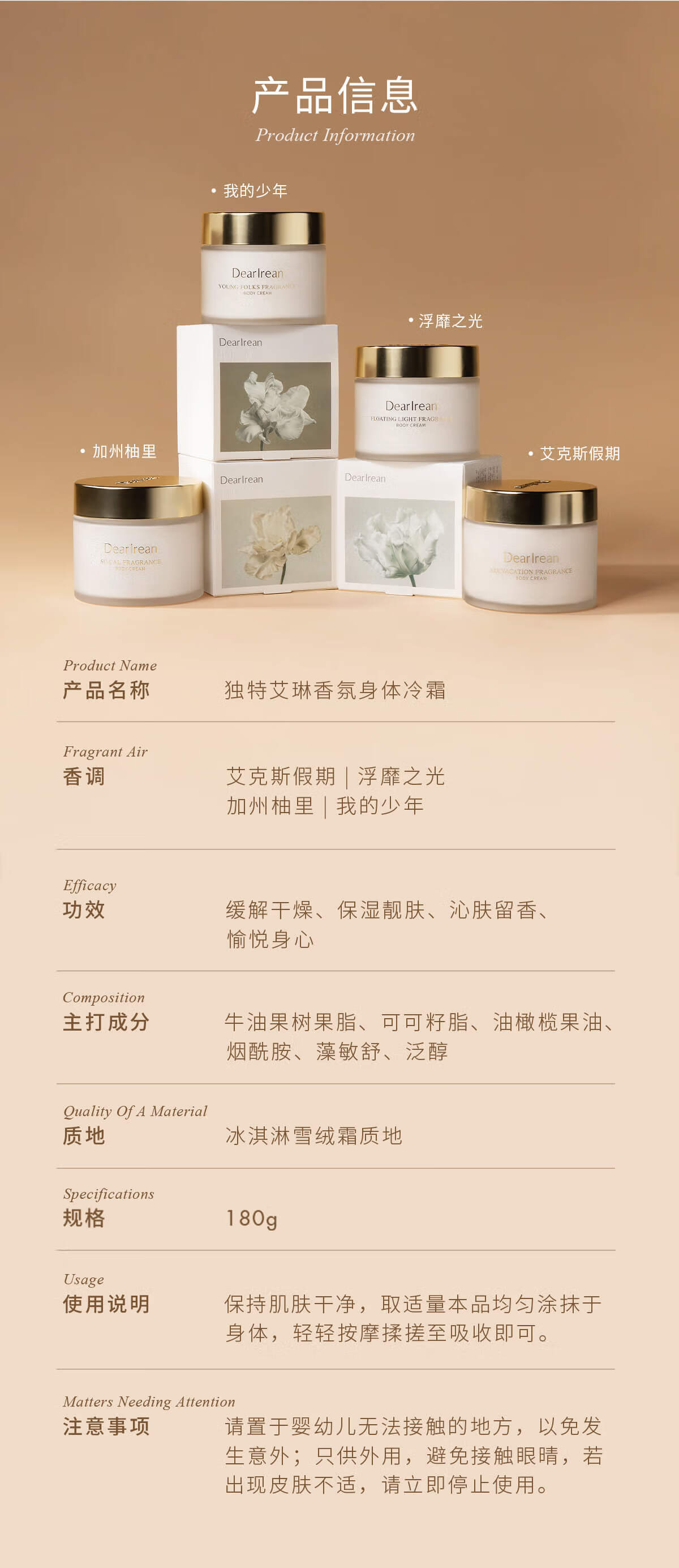 独特艾琳(Dear lrean)身体乳润肤乳冷霜保湿香味留香长干皮可用润肤烟酰胺清爽护肤乳膏 我的少年180g