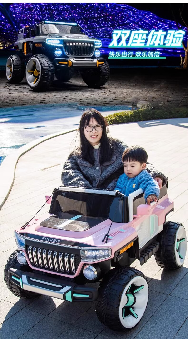孩儿乖奔驰大g儿童电动车四轮遥控越野双座宝宝玩具车可坐大人双人礼物 粉色【四驱双油门-12V7大电瓶-全功能-皮座】