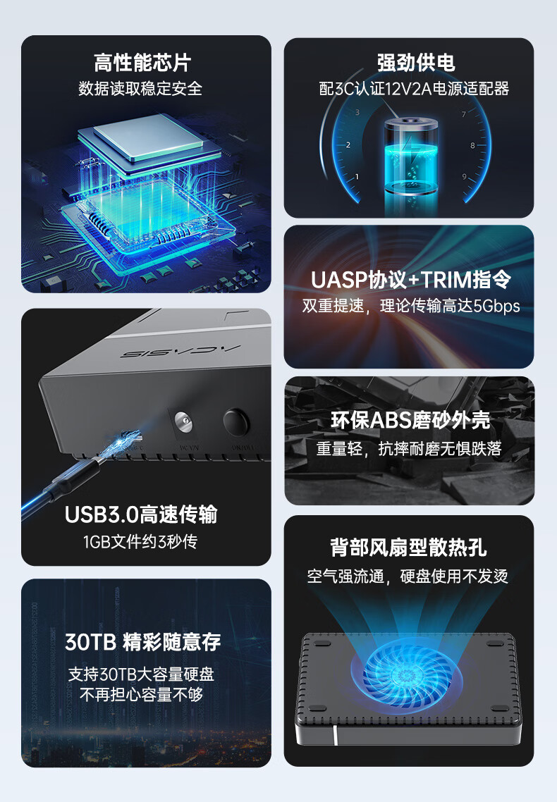 阿卡西斯(acasis) USB3.0移动硬盘盒 3.5英寸SATA串口台式机笔记本电脑外置固态机械硬盘存储盒子EC-5351C