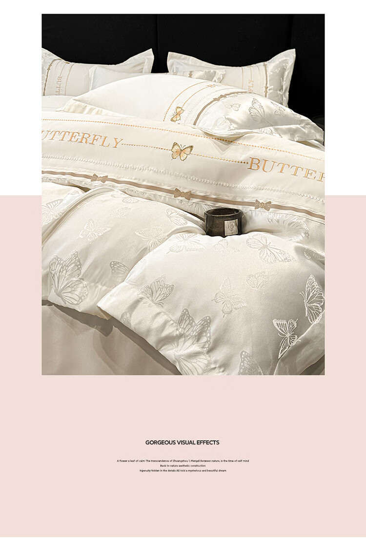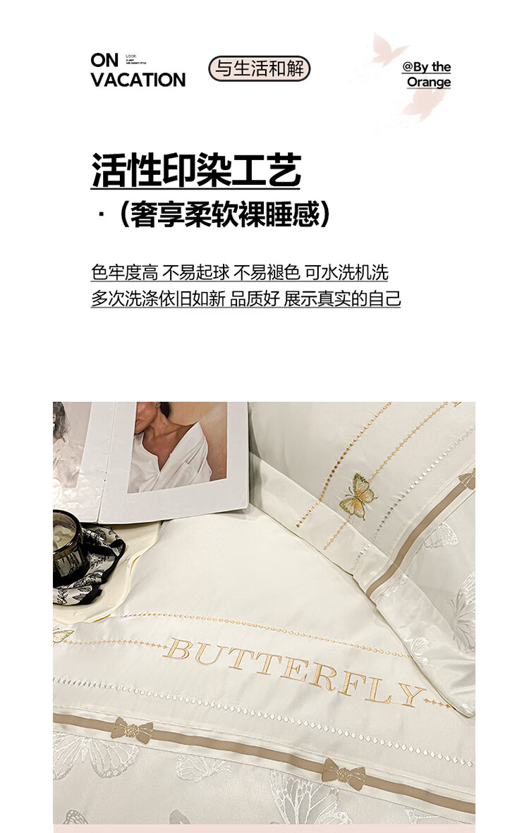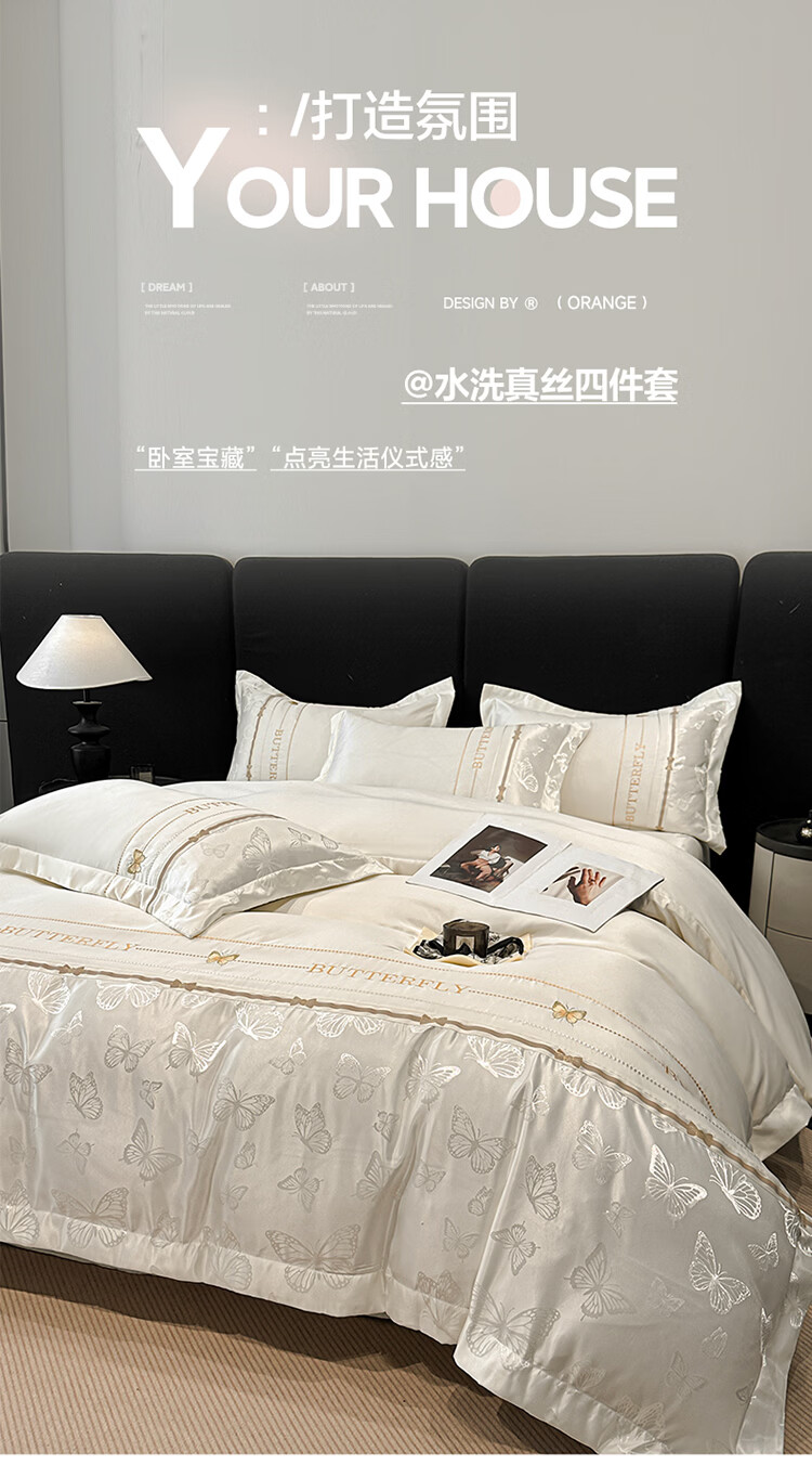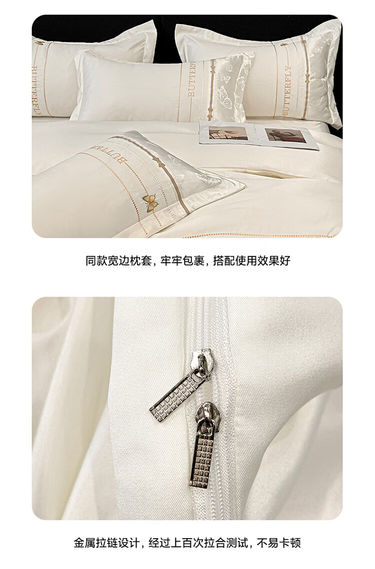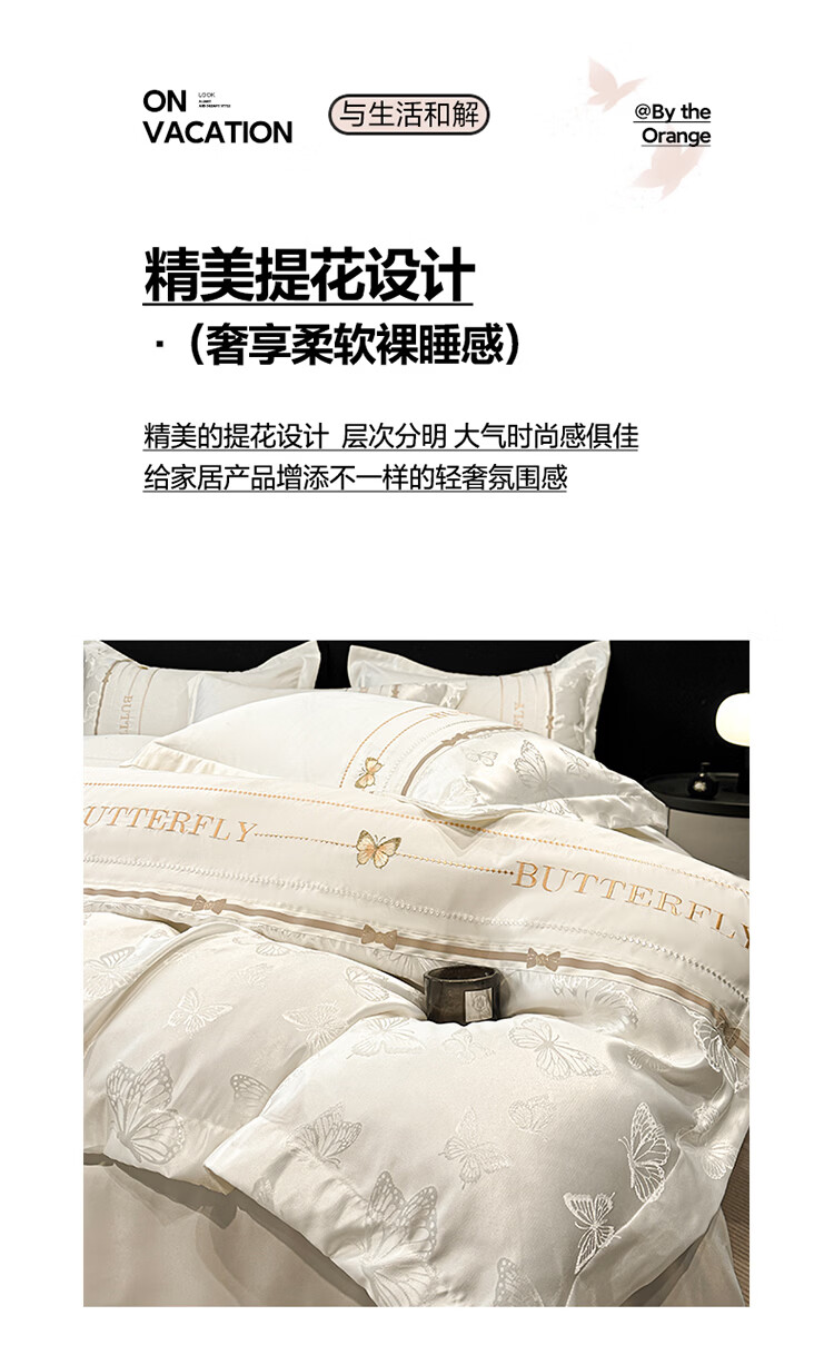 无印良品轻奢冰丝刺绣四件套夏季凉感床单被套家用裸睡床笠款床被罩上用品 拾光蝶影-奶白【亲肤细腻 自带凉感】 1.8m 床单款 四件套-被套200x230cm