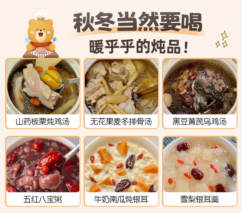 小熊(Bear)电炖锅 电炖盅隔水炖 炖汤盅电炖锅 煲汤锅炖汤锅 宝宝辅食煮粥锅熬粥燕窝炖盅1-2人DDZ-C10V1 1L