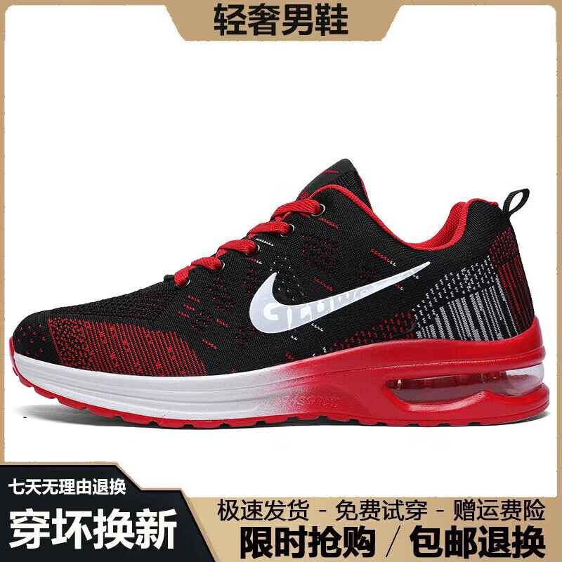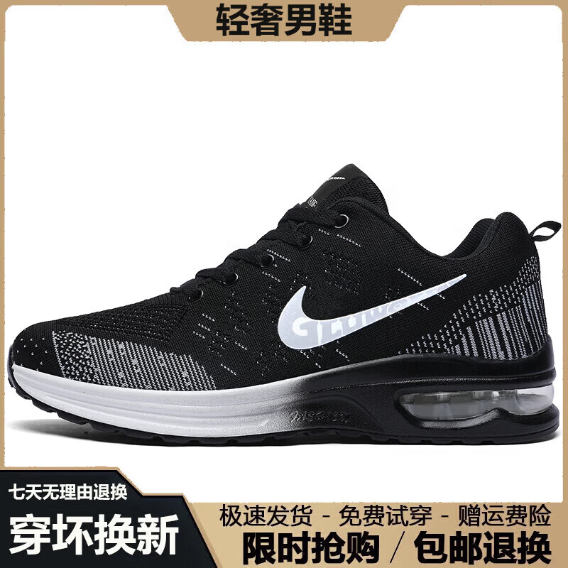 轻奢潮流男鞋春夏季新款运动鞋男软底休闲跑步鞋男百搭透气鞋子男 NK8866黑白色【网面款】 42
