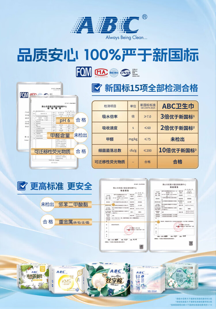 ABC瞬吸云棉棉柔表层日用组合透气卫生巾套装防漏姨妈巾9包72片