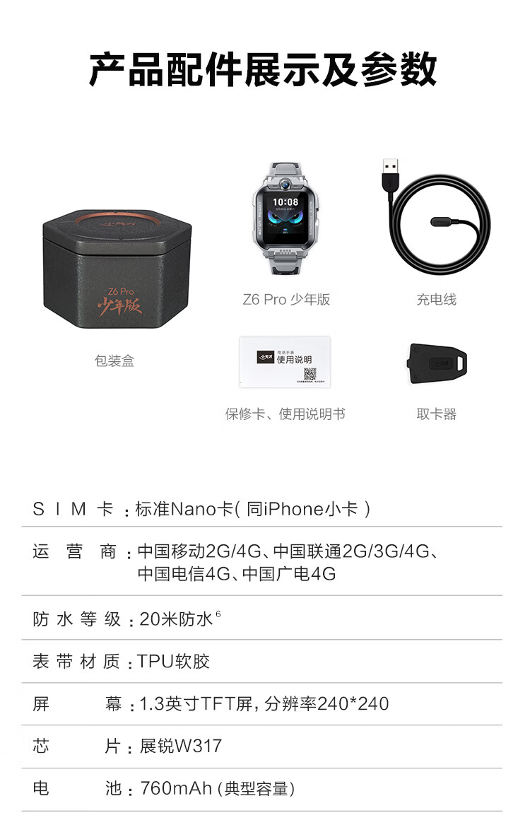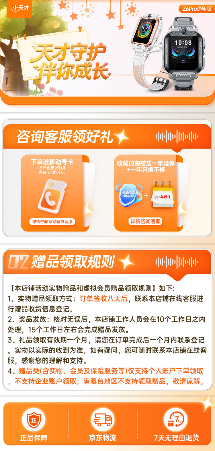 小天才儿童电话手表Z6Pro少年版陨石灰防水GPS定位学生儿童智能手表移动联通电信4G视频拍照双摄男女表