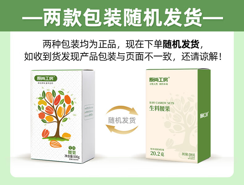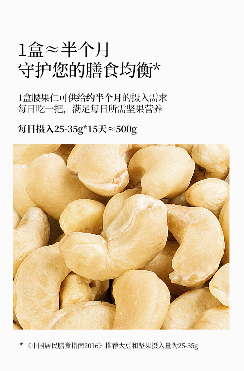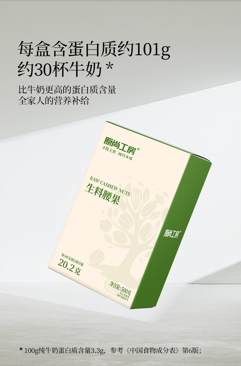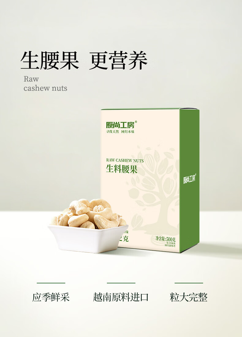 原尚工房 原味生腰果仁500g每日坚果炒货休闲零食越南腰果仁干果果仁