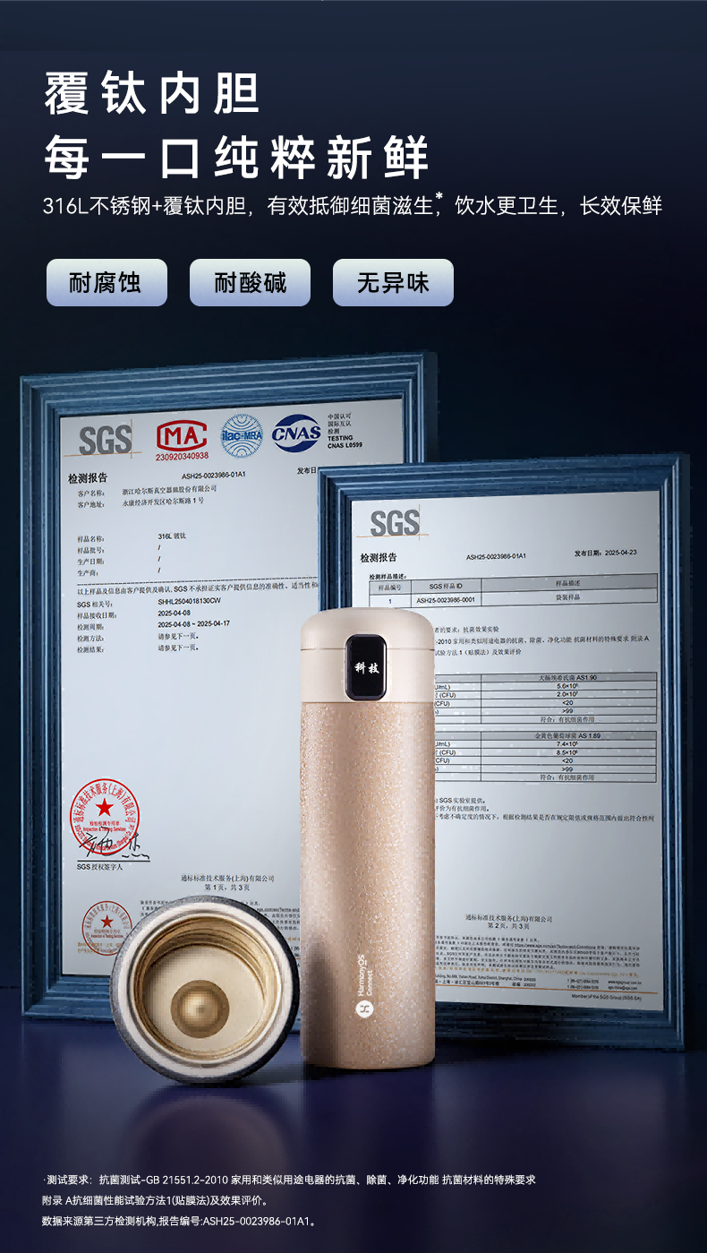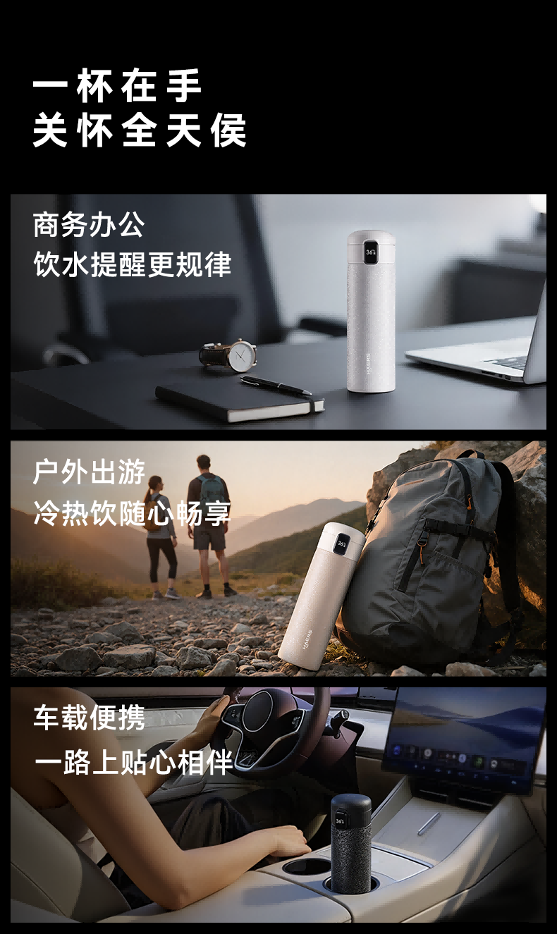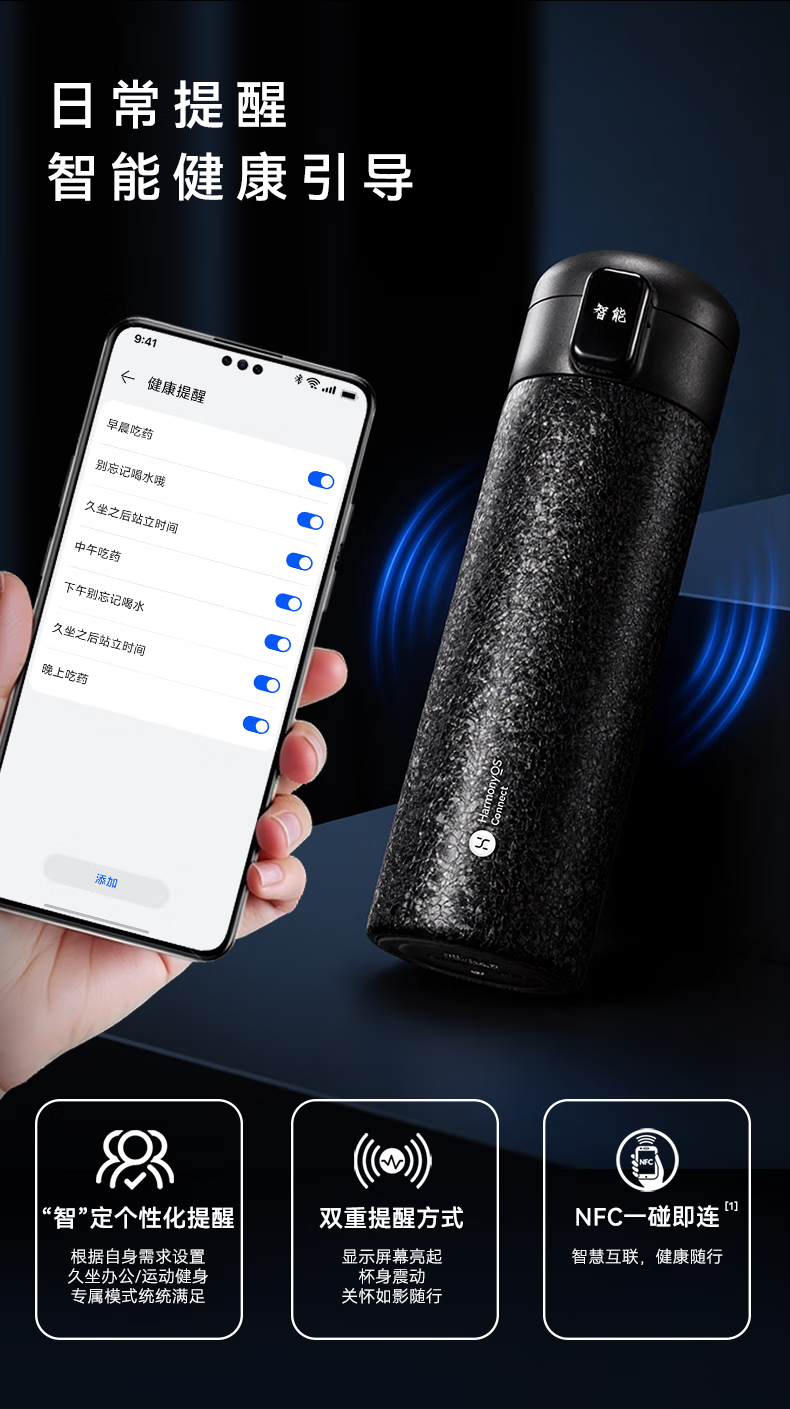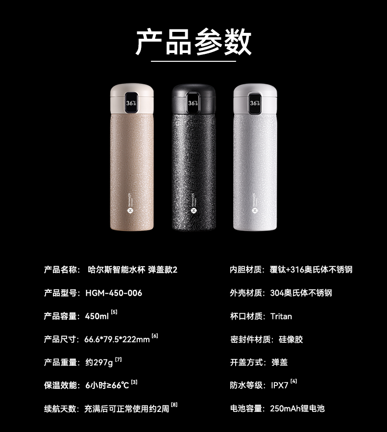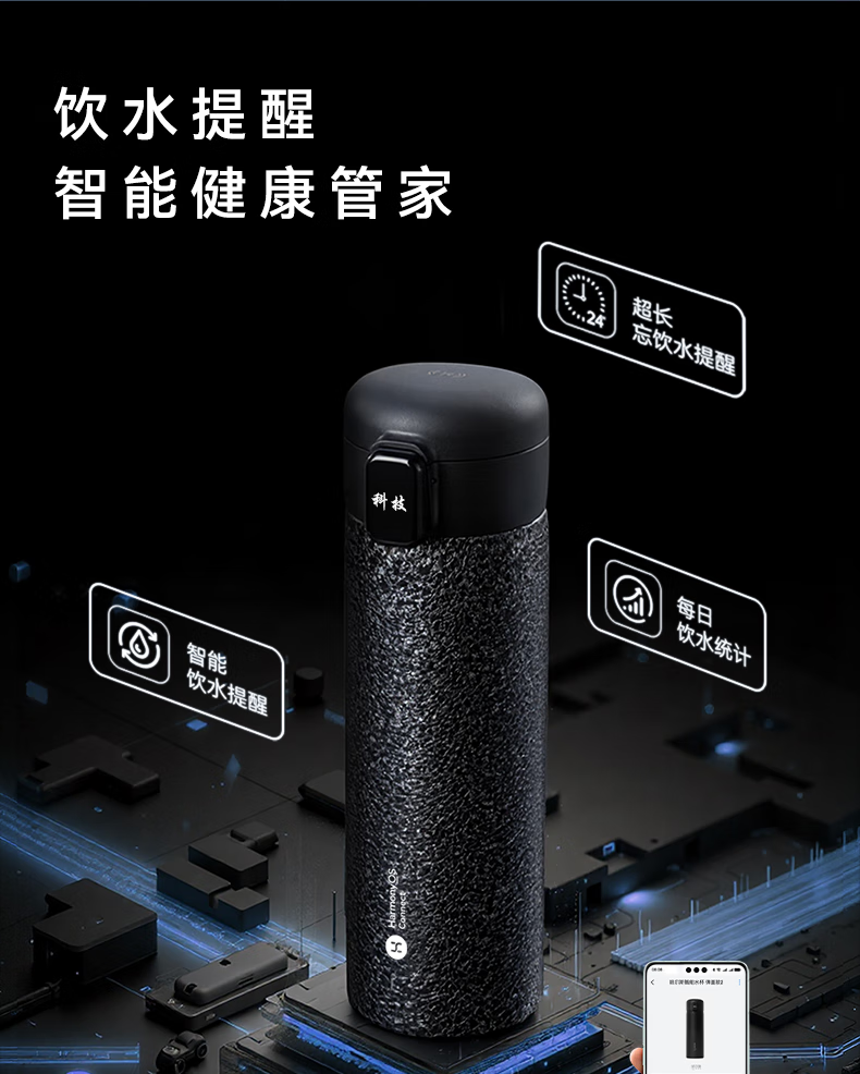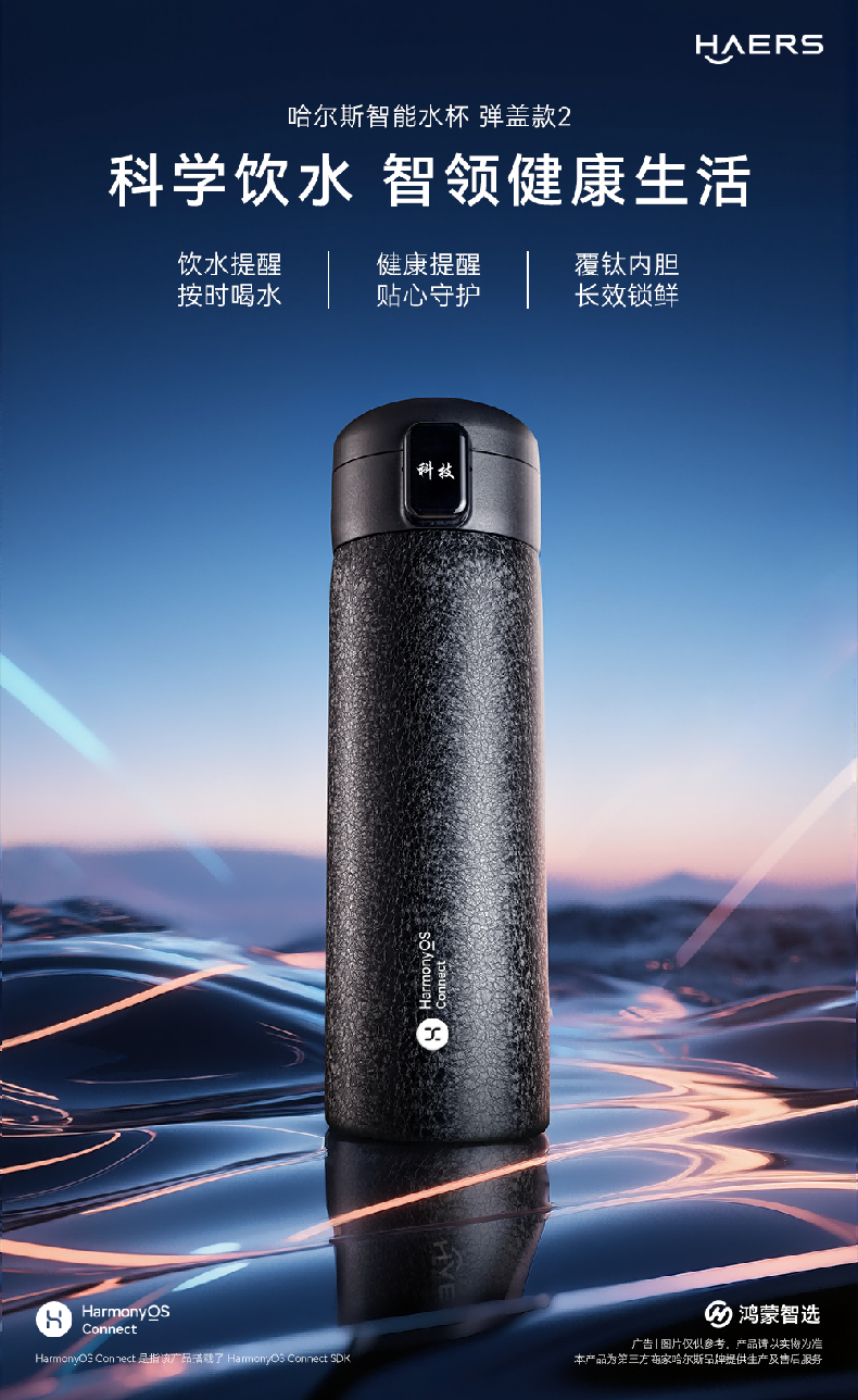 鸿蒙智选哈尔斯保温杯支持华为智慧生活智能弹盖杯450ml覆钛学生水杯送礼