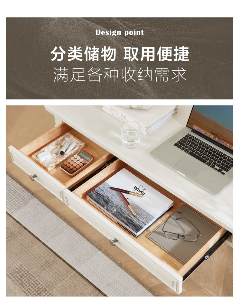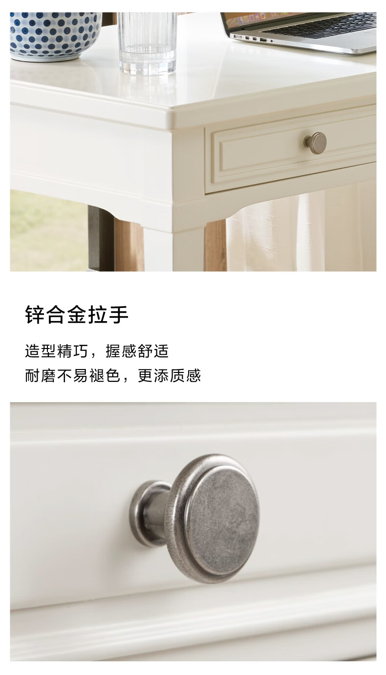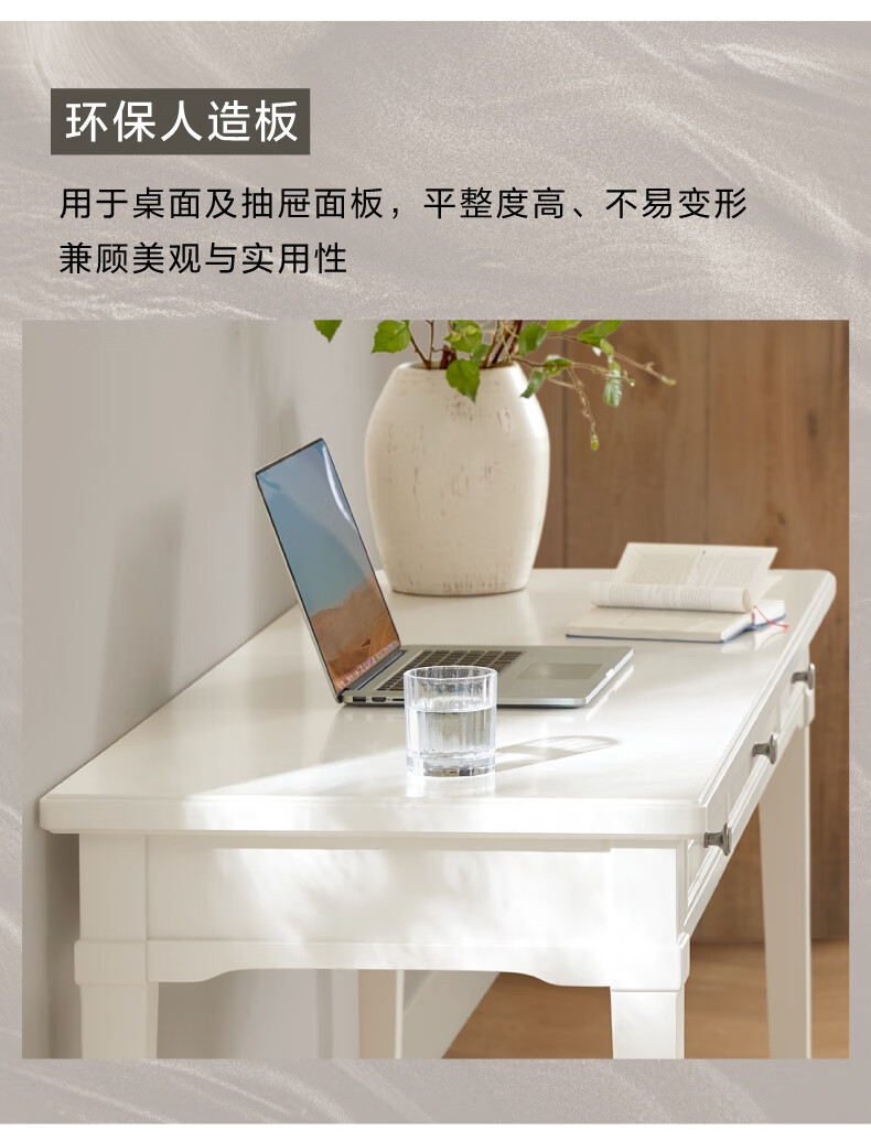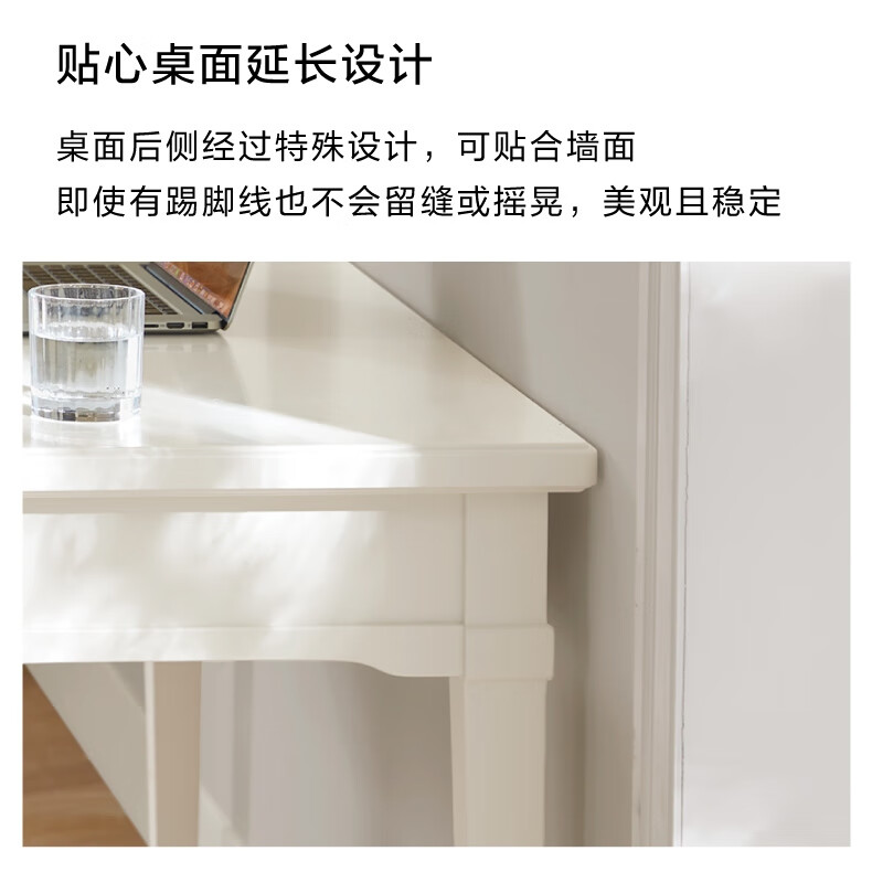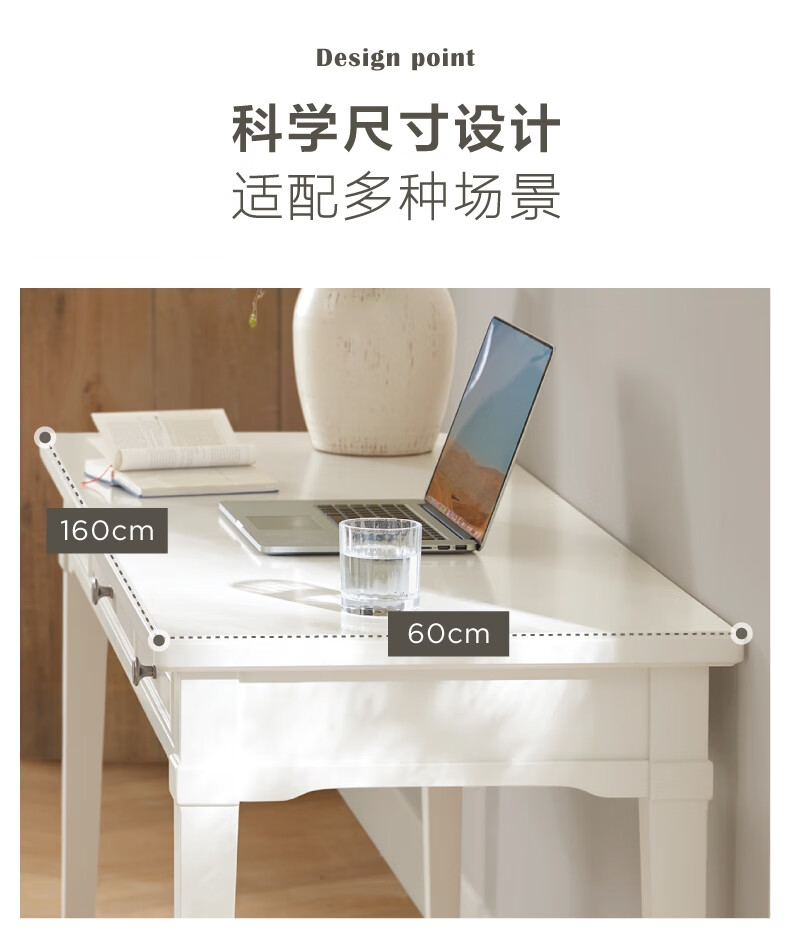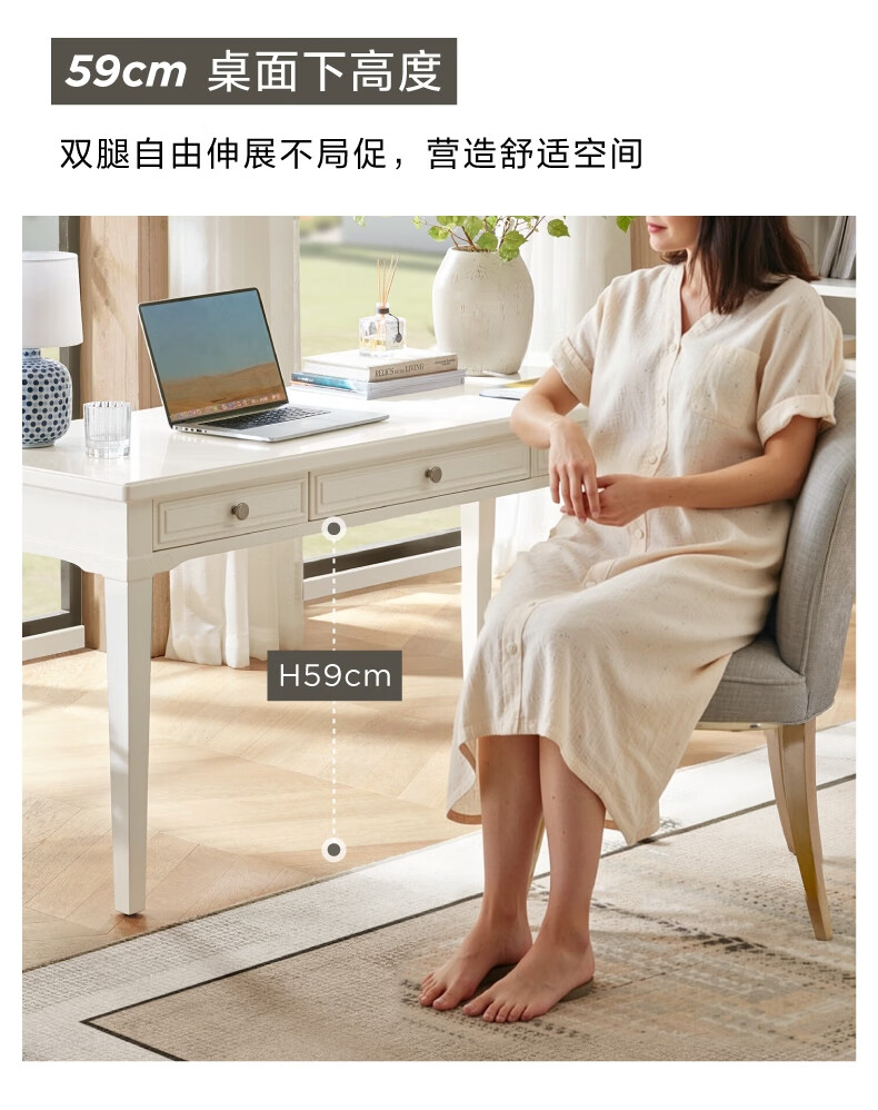 Harbor House【政府补贴】美式轻奢书房书桌经典简约实木框架学习桌靠墙写字台 Victoria 书桌-白色 长1600X宽600X高760mm
