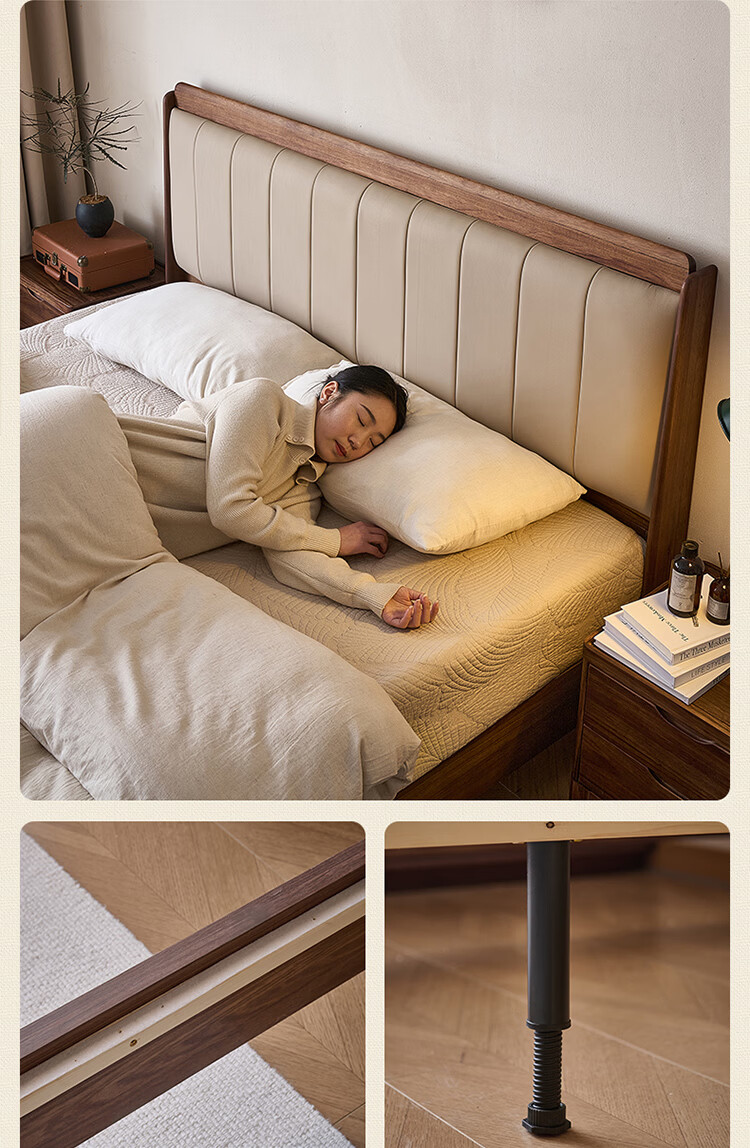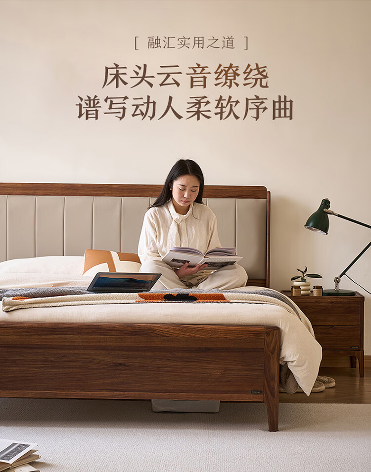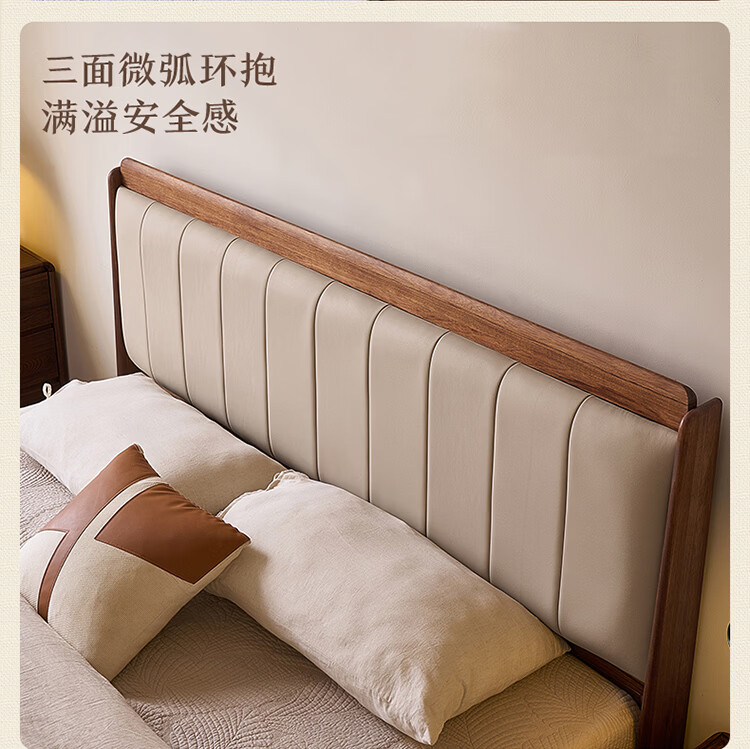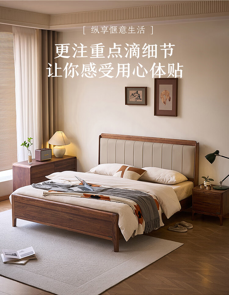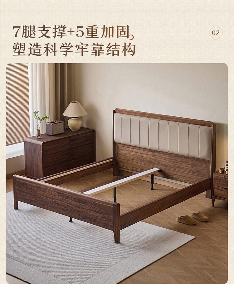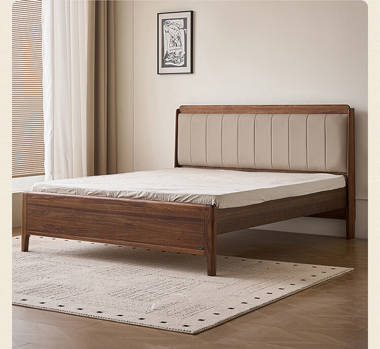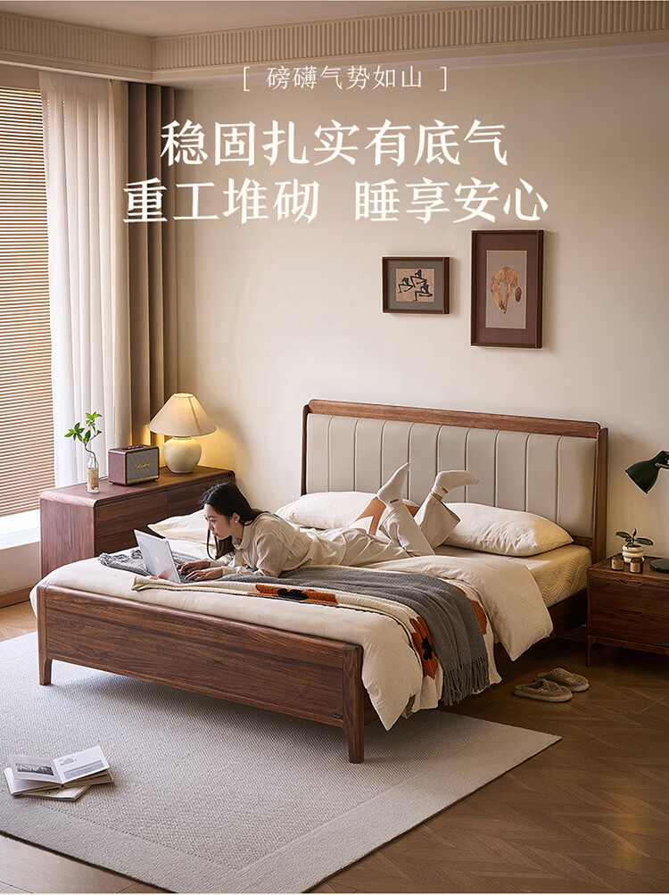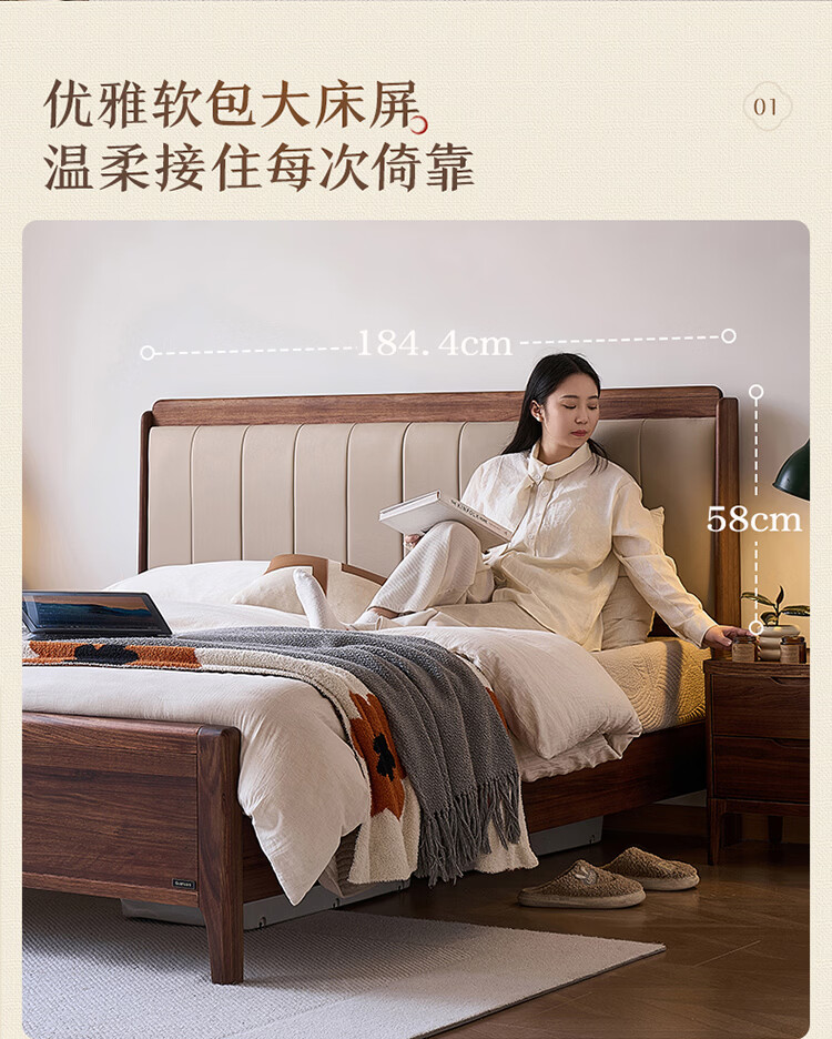 全友家居新中式乌金木实木软包床小户型家用卧室齐边床含床垫组合套装 【乌金木 | 高脚款】 1.8米x2米 床头柜