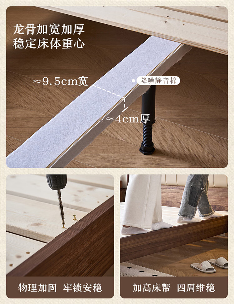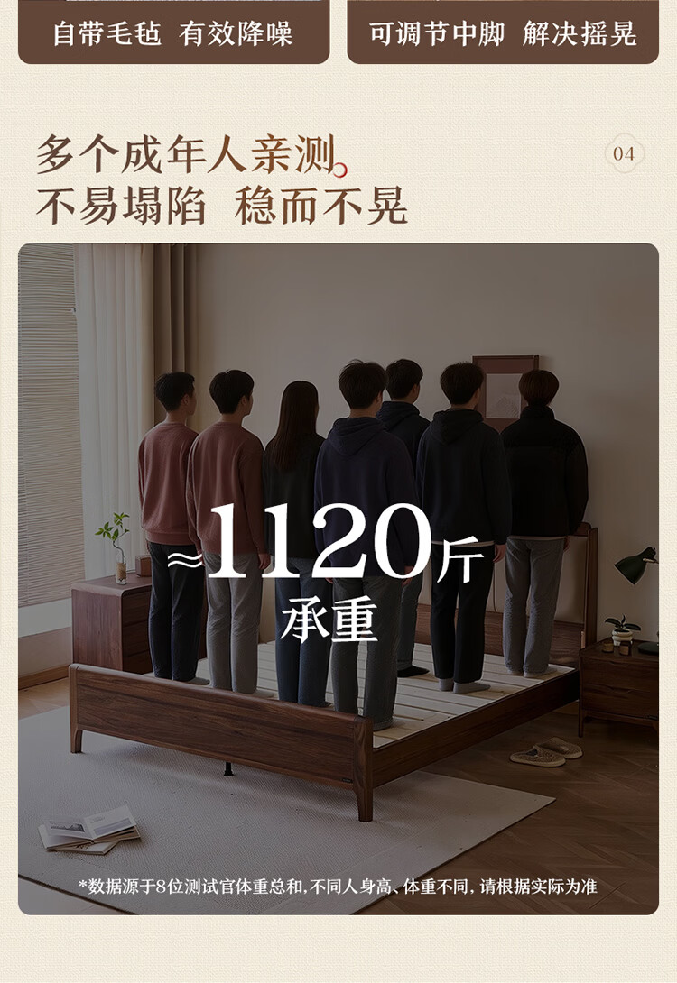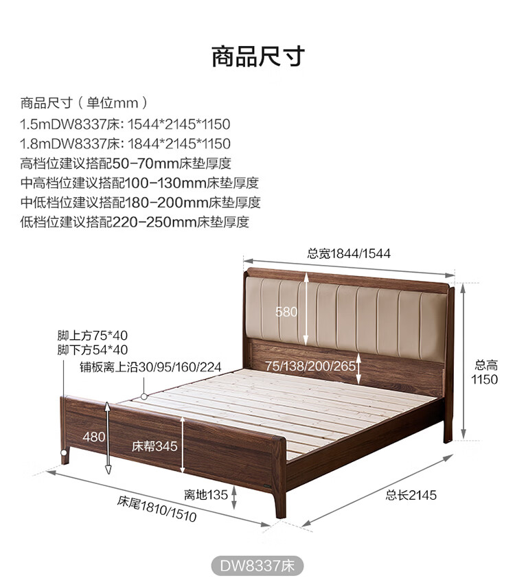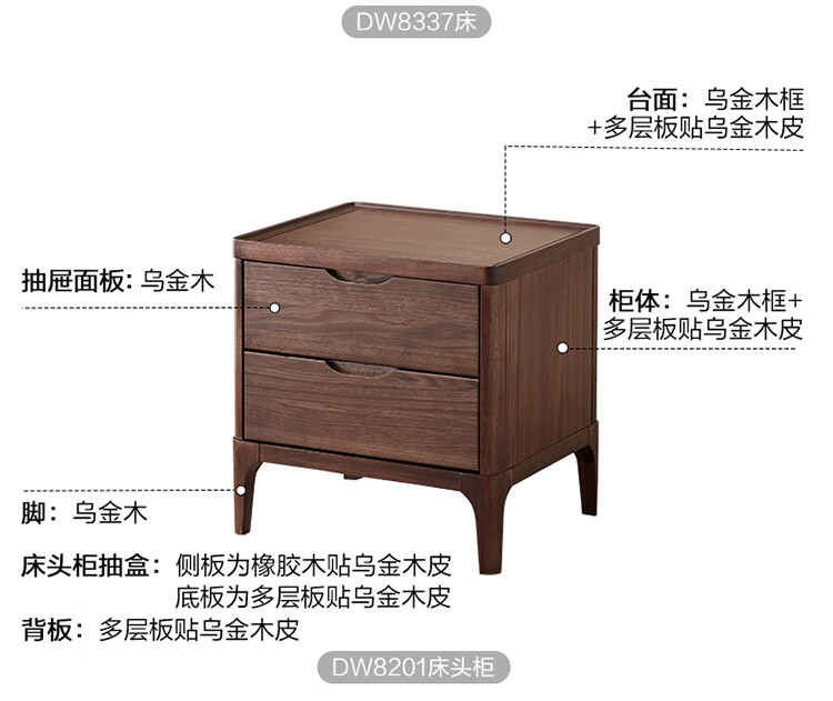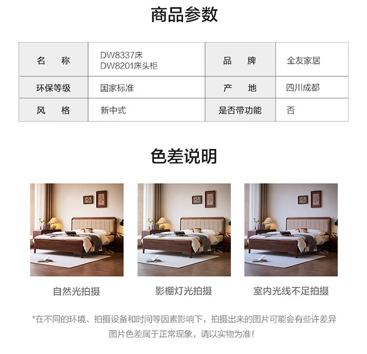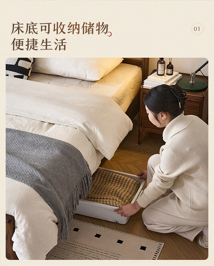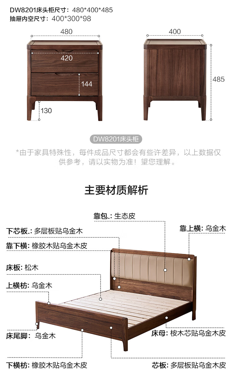 全友家居新中式乌金木实木软包床小户型家用卧室齐边床含床垫组合套装 【乌金木 | 高脚款】 1.8米x2米 床头柜