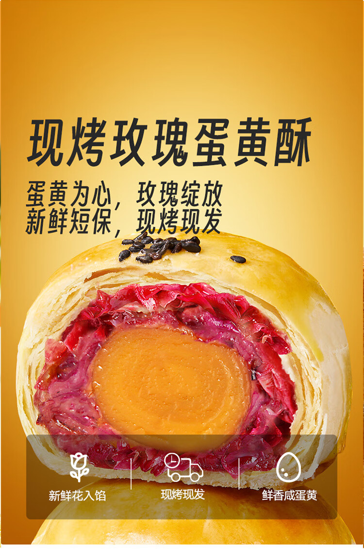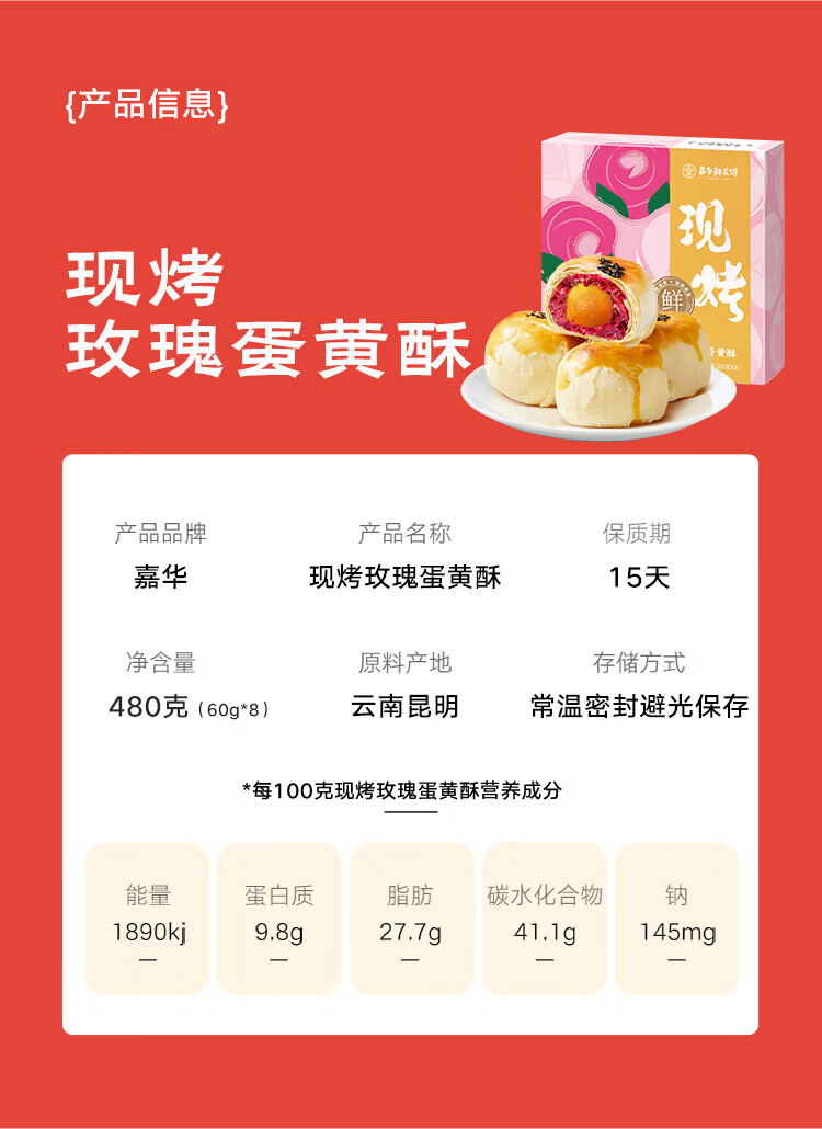 嘉华鲜花饼现烤玫瑰蛋黄酥60g*8枚 早餐糕点云南特产 源头直发包邮