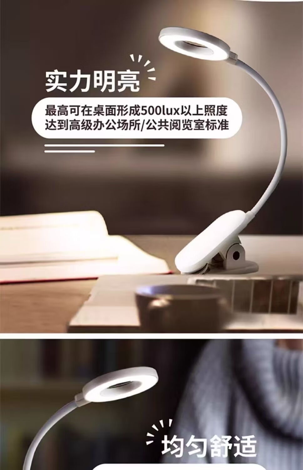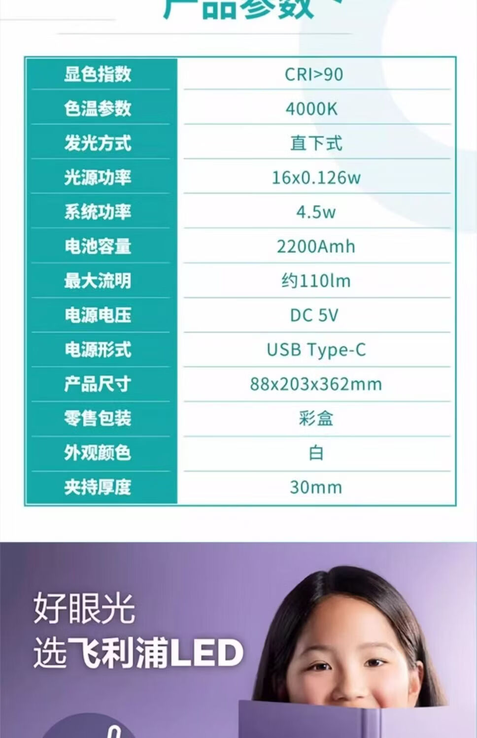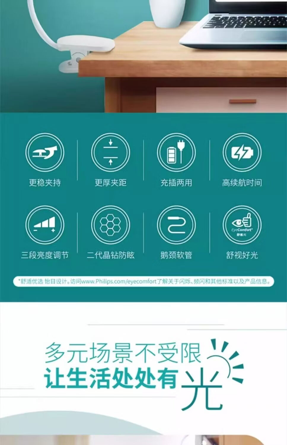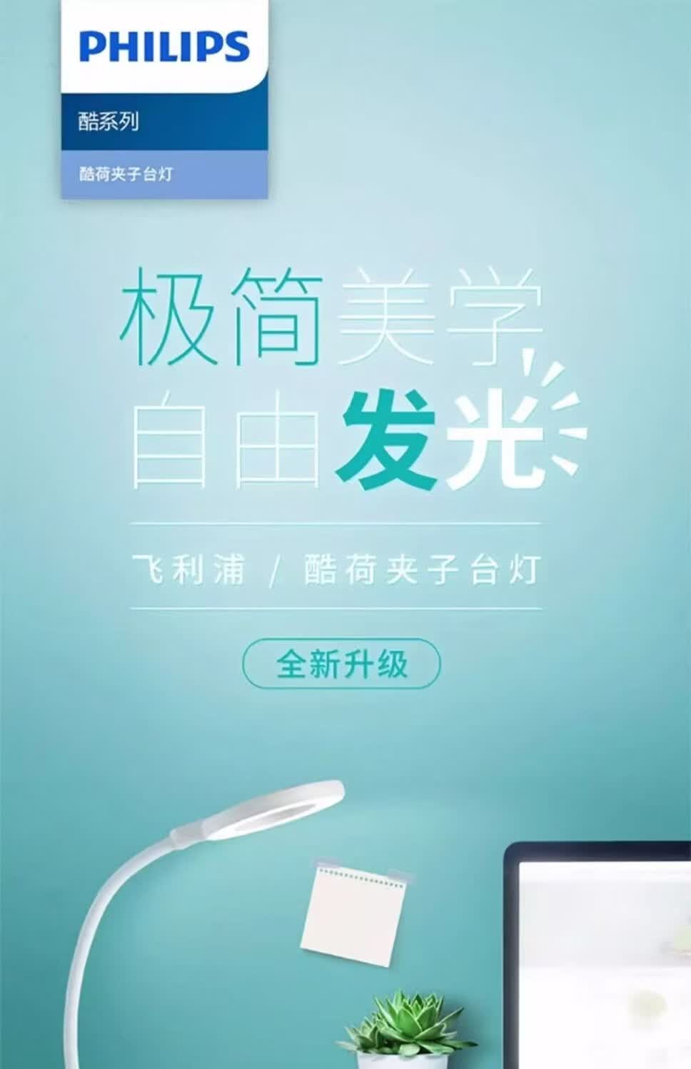 飞利浦(PHILIPS)充电台灯学习作业夹子灯卧室床头书桌阅读寝室起夜灯 酷荷 66200酷荷/2200毫安/白色