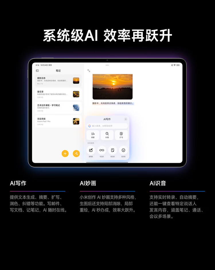 小米平板7S Pro 12.5英寸新款平板电脑 3.2K 超清屏 玄戒® O1 澎湃OS2 紫色 8G+256GB 官方标配