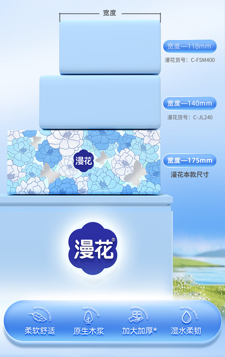 漫花山茶花大包抽纸巾大尺寸400张优等品质餐巾纸面巾纸家用卫生抽纸 大尺寸 优等品 5层 400张*18包