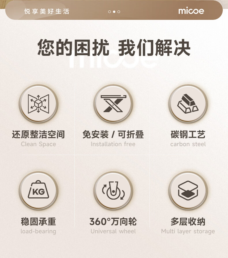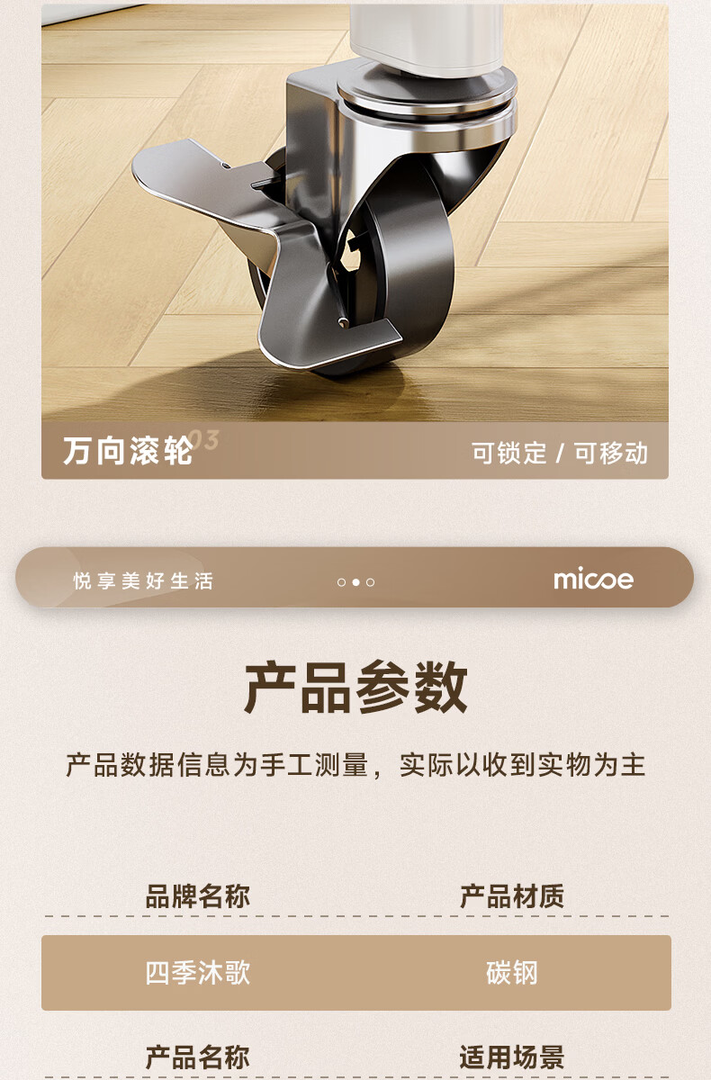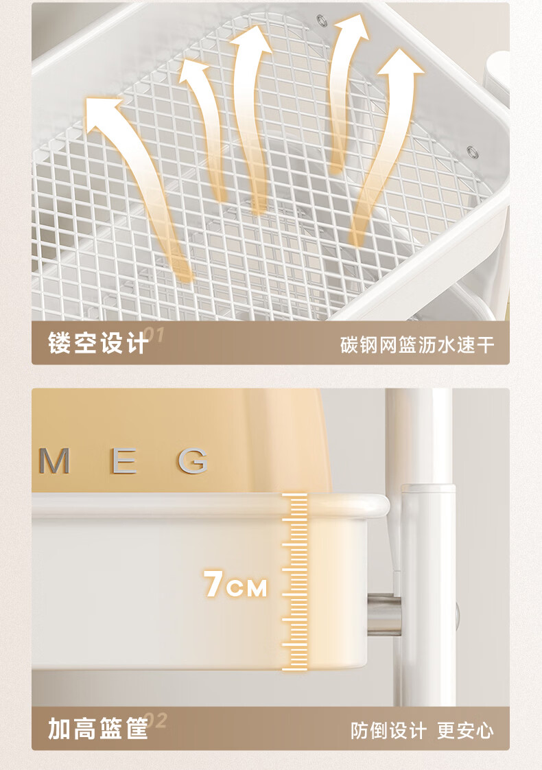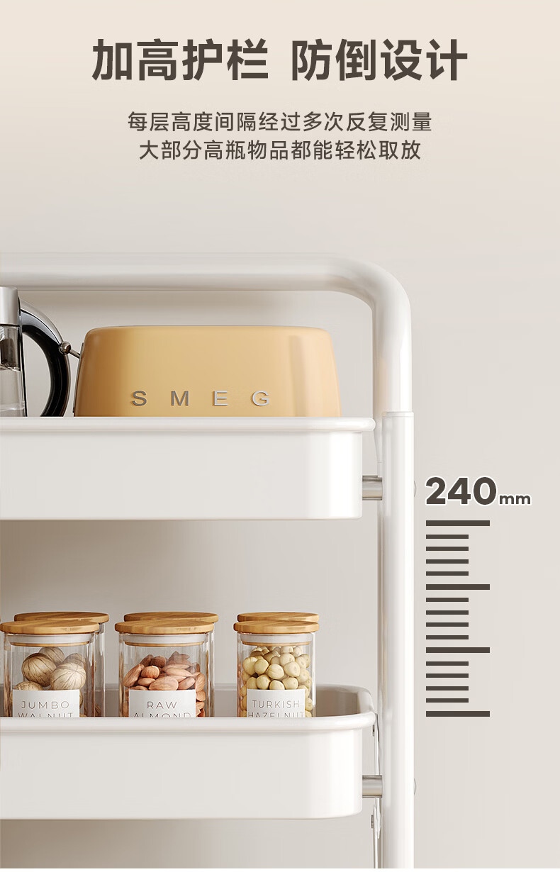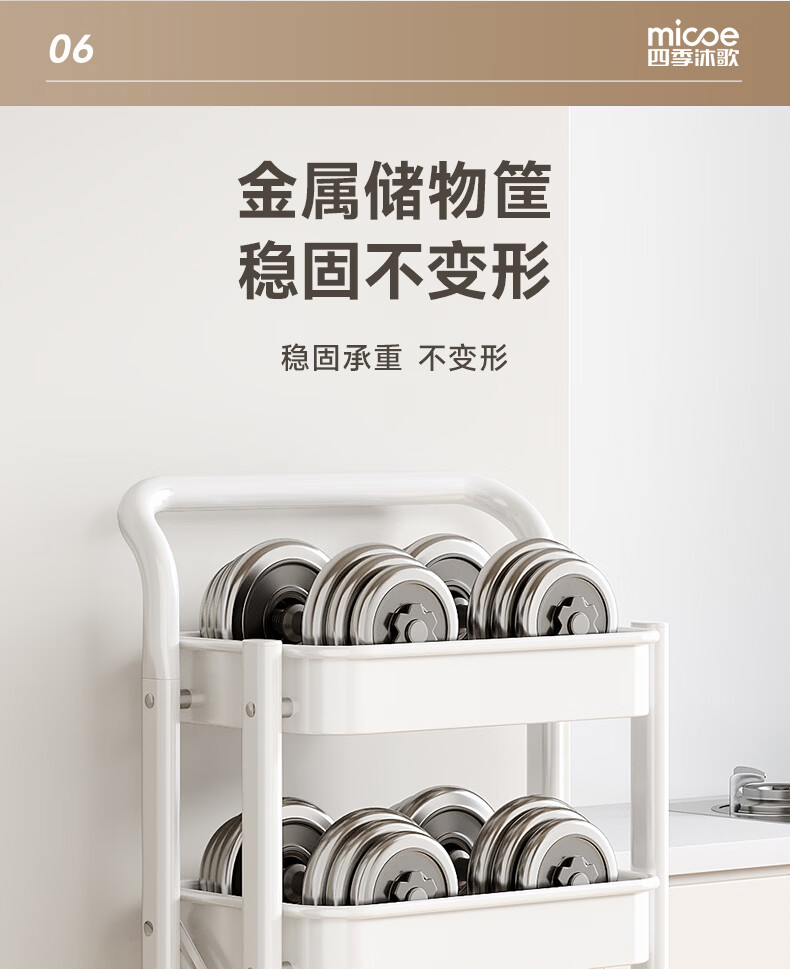 四季沐歌厨房置物架落地折叠小推车置物架免安装零食收纳储物移动果蔬菜篮 3层耀黑【可折叠】常规款