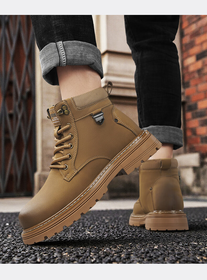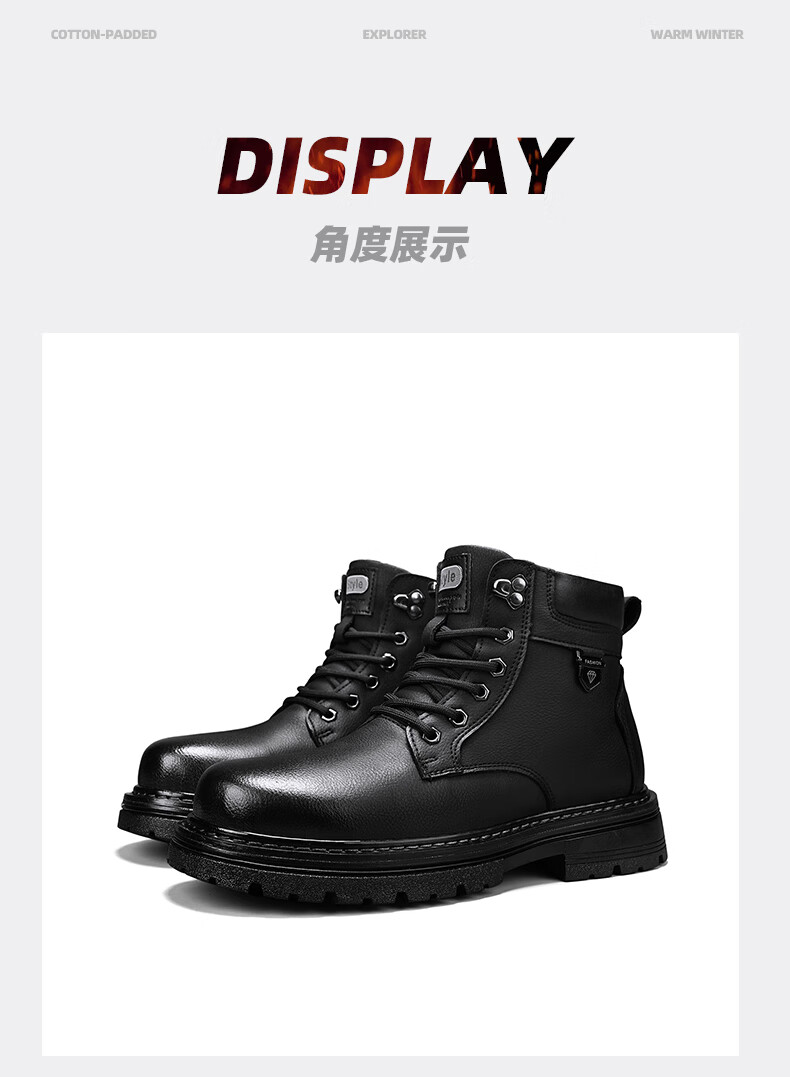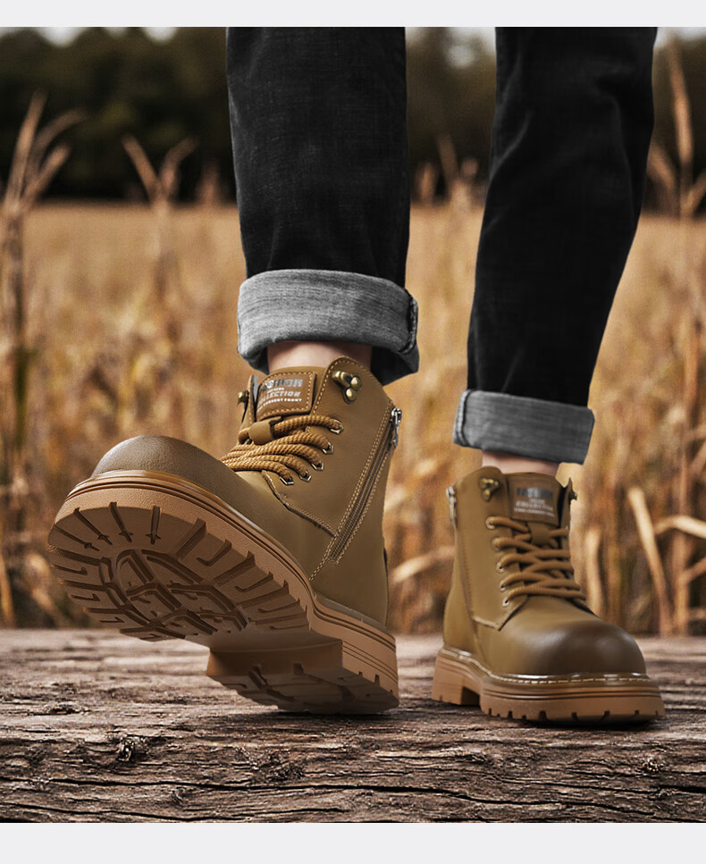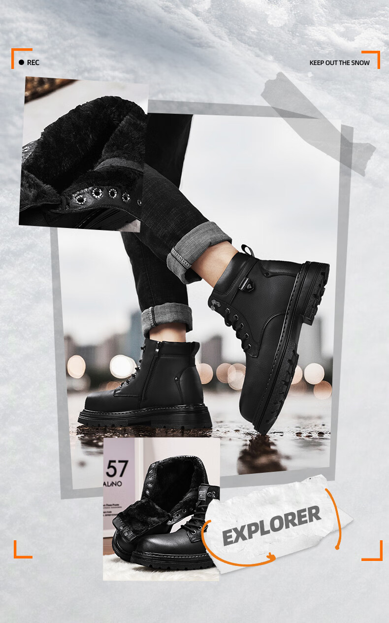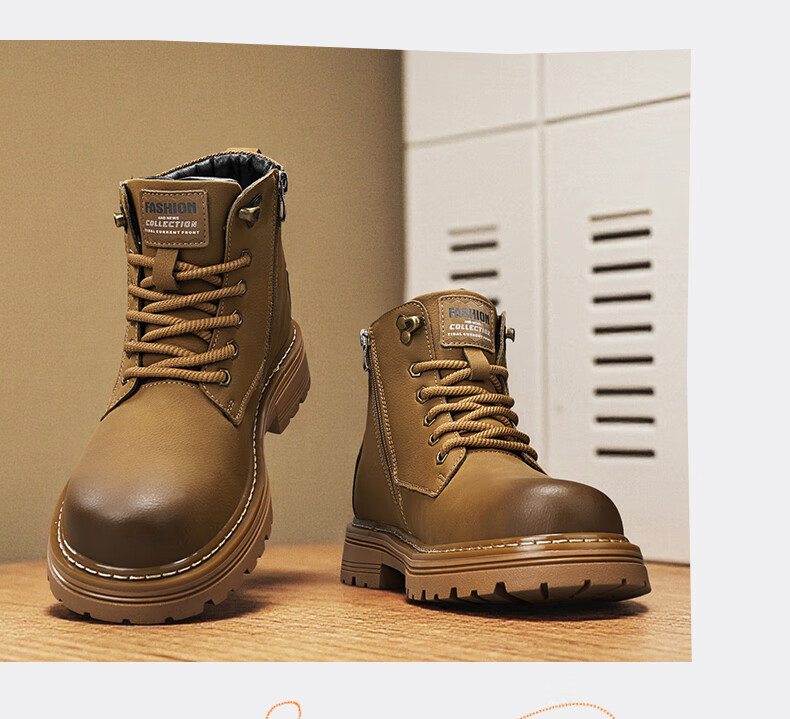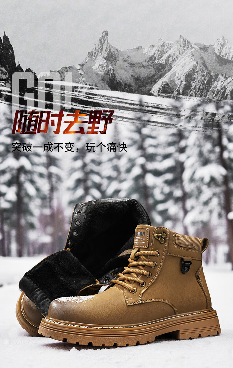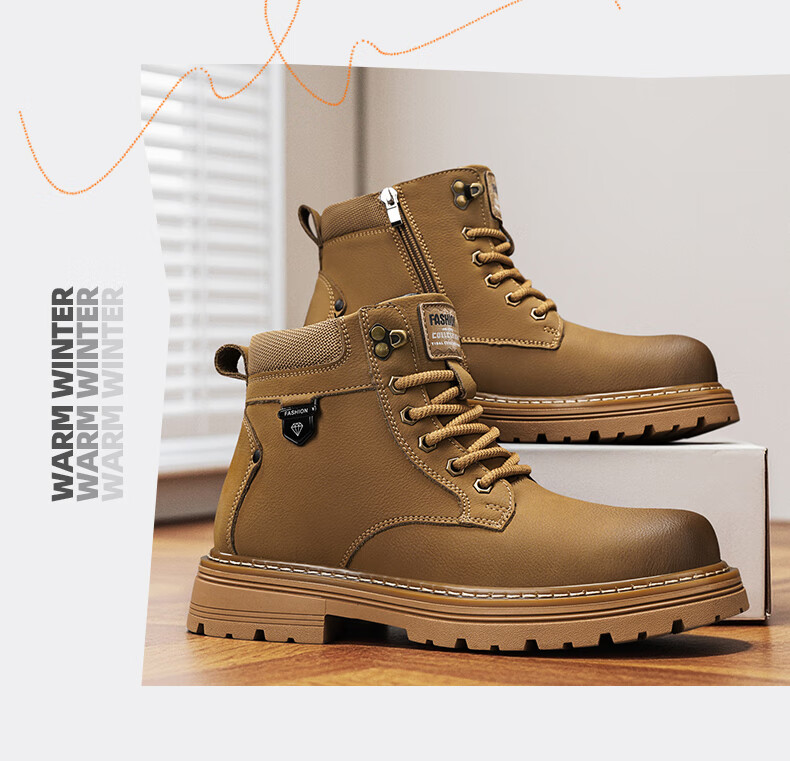 稻草人(MEXICAN)真皮高帮男鞋冬季加绒保暖皮鞋侧拉链潮流复古英伦工装马丁大黄靴 黑色单鞋 44 标准皮鞋码