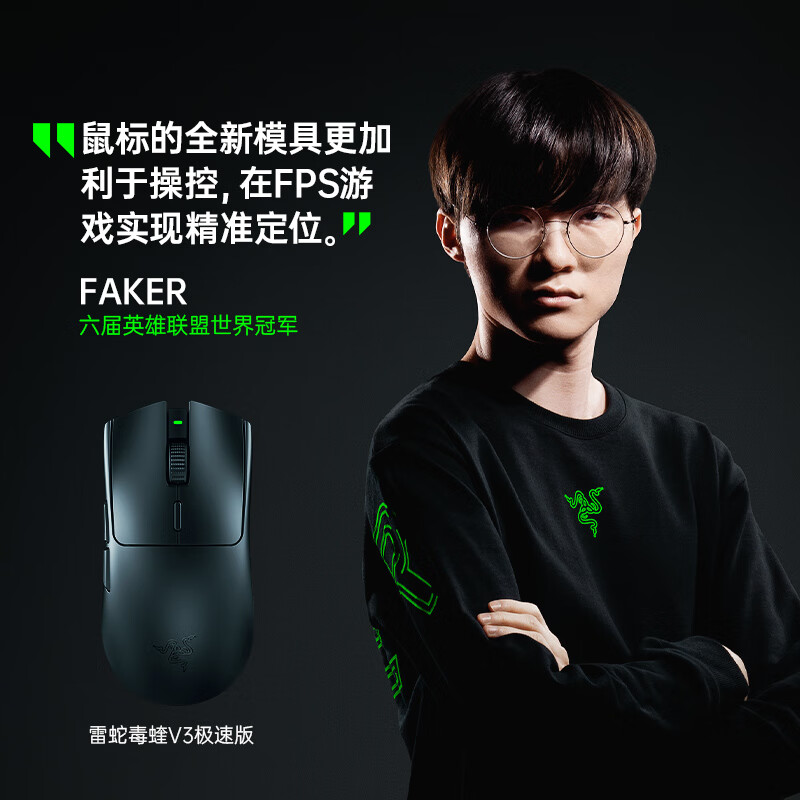雷蛇(Razer) 毒蝰V3极速版 无线鼠标 电竞游戏鼠标 轻量化鼠标 吃鸡/三角洲打瓦/LOL Faker冠军推荐 黑色
