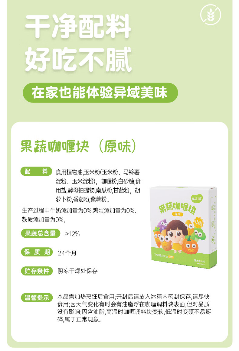 佑儿圆果蔬咖喱块100g不辣四块拌饭酱营养孩子早餐调味料口感温和 原味