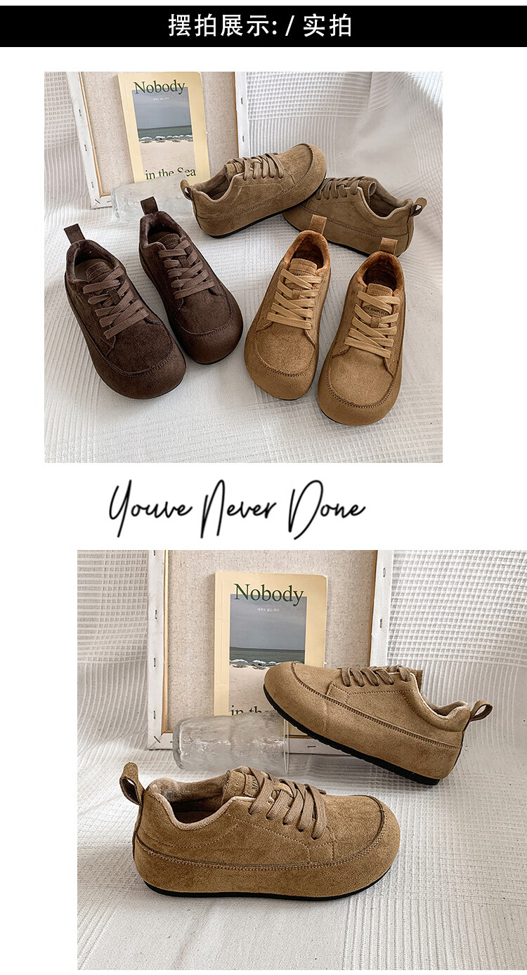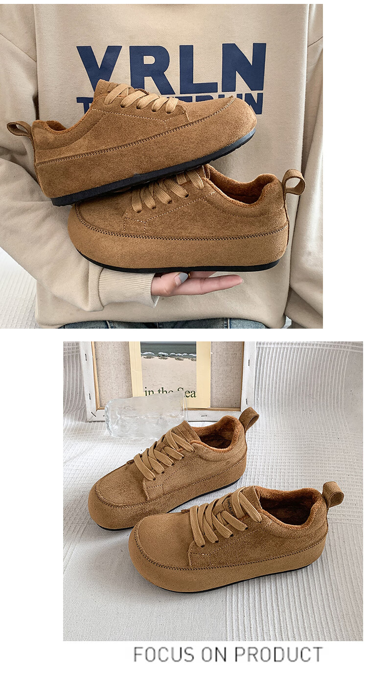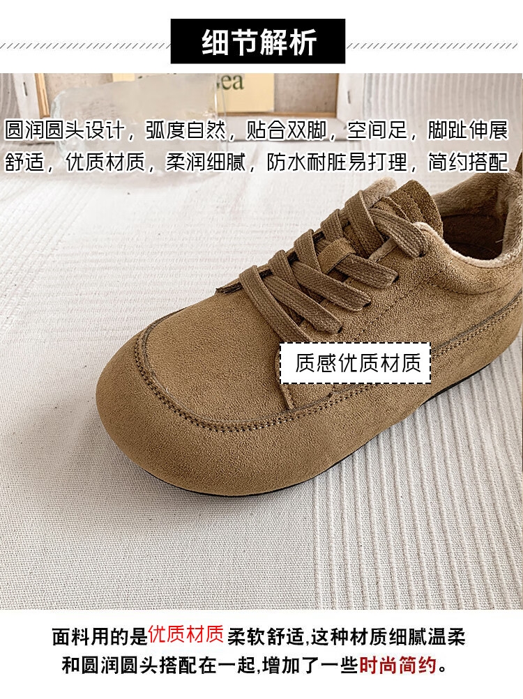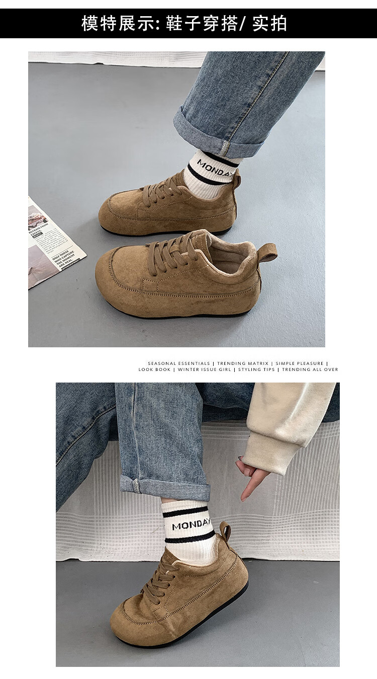 稻草人(MEXICAN)加绒勃肯鞋女2026年秋冬新款复古百搭休闲德训鞋保暖毛毛面包棉鞋 驼色 36