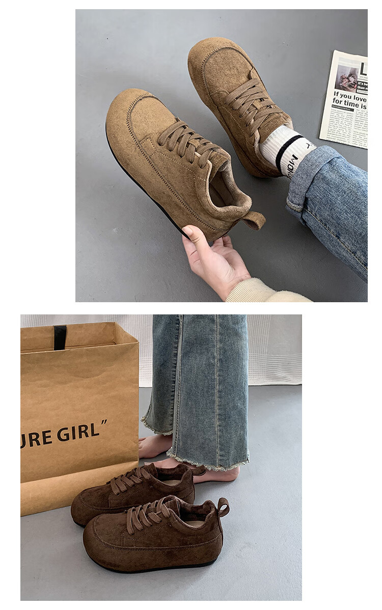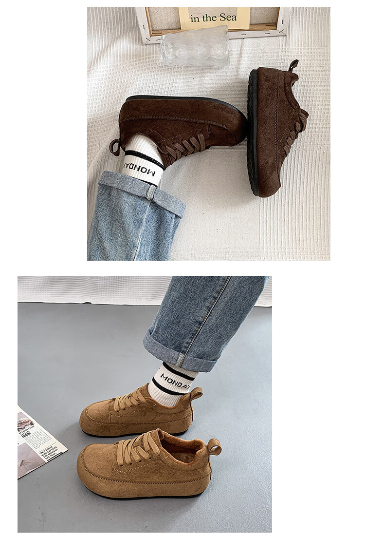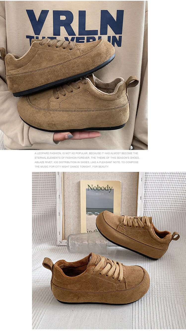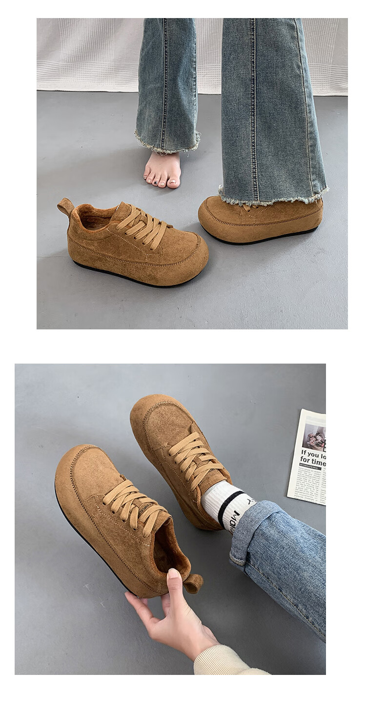 稻草人(MEXICAN)加绒勃肯鞋女2026年秋冬新款复古百搭休闲德训鞋保暖毛毛面包棉鞋 驼色 36