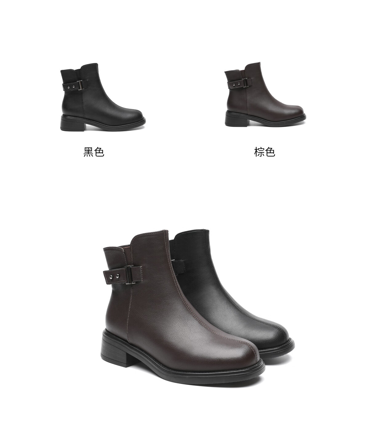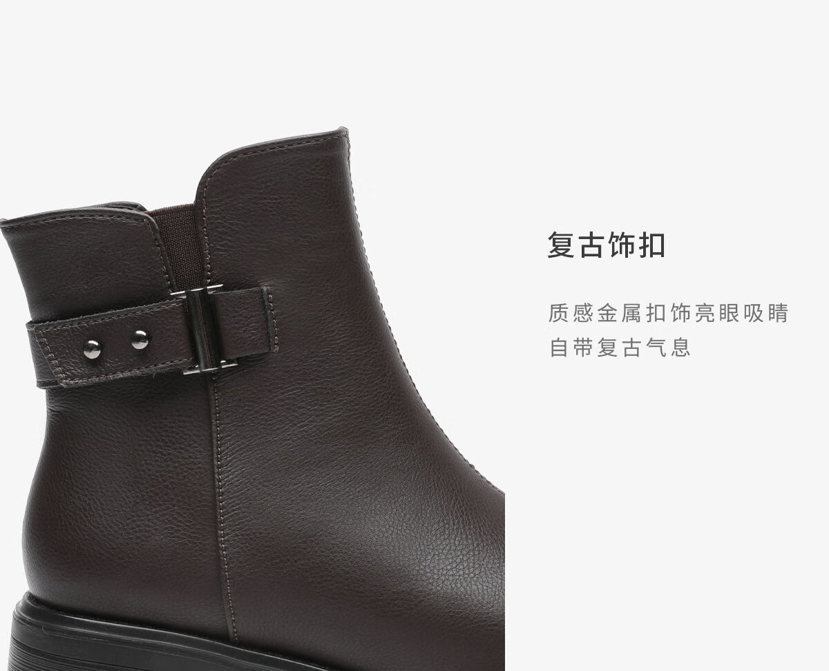 月芽儿猫跟短靴女2025年秋季季新款气质通勤扣带踝靴时装靴短筒靴 绒里黑色01T 34