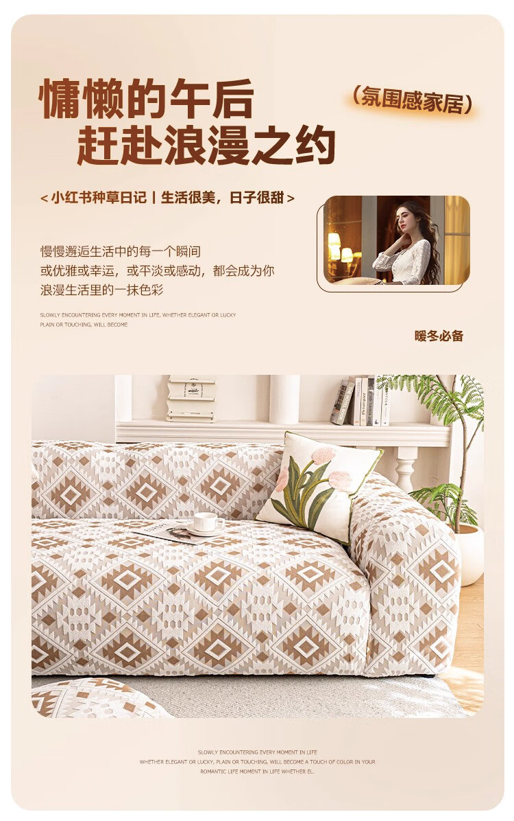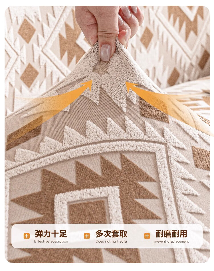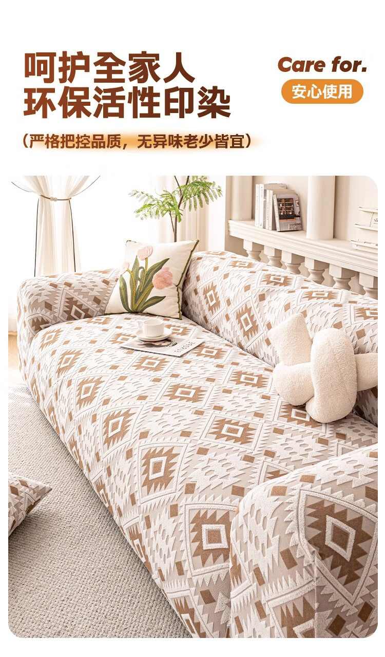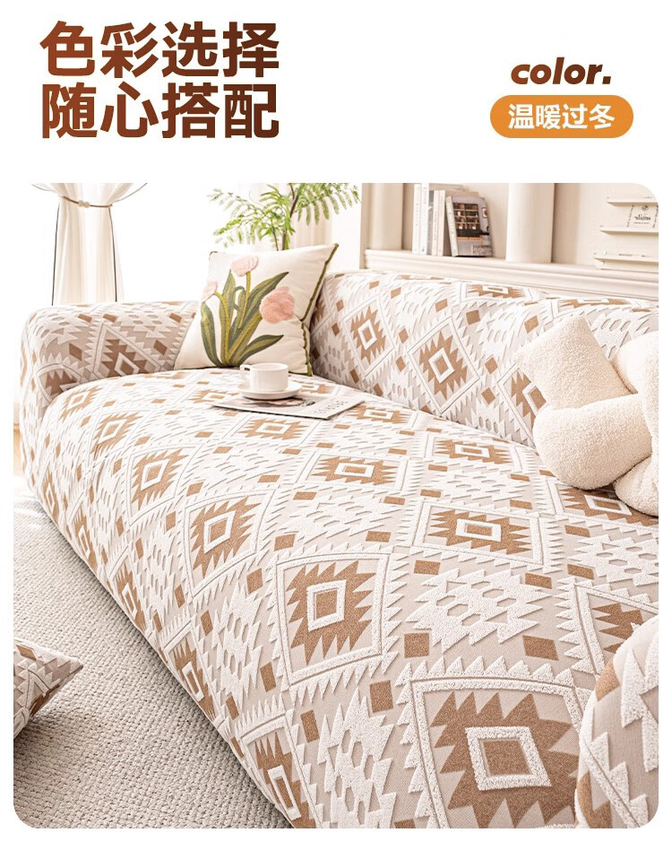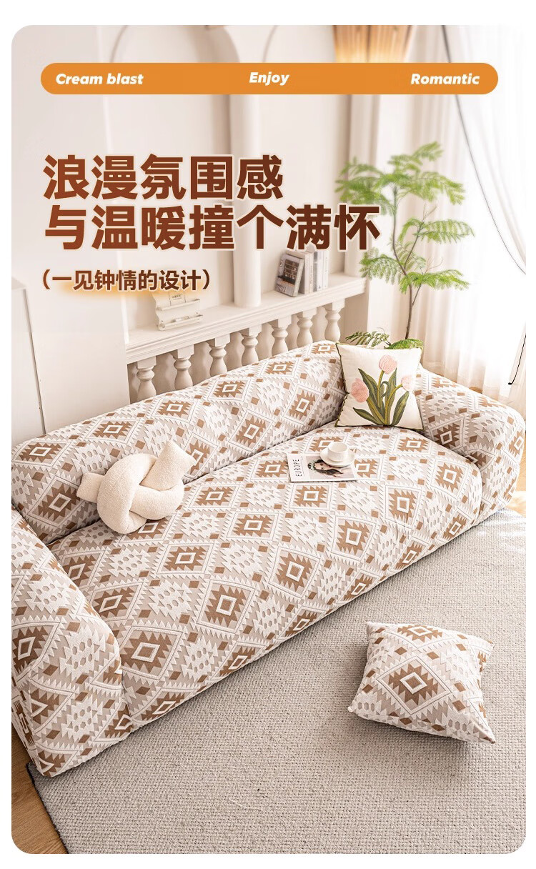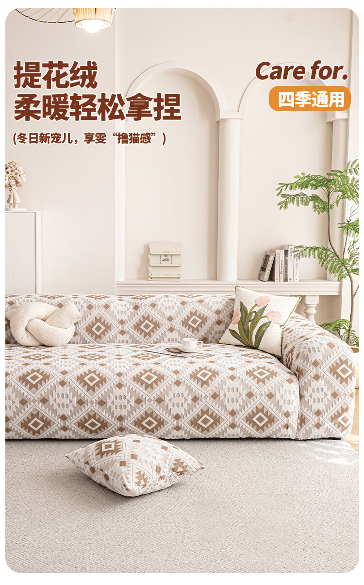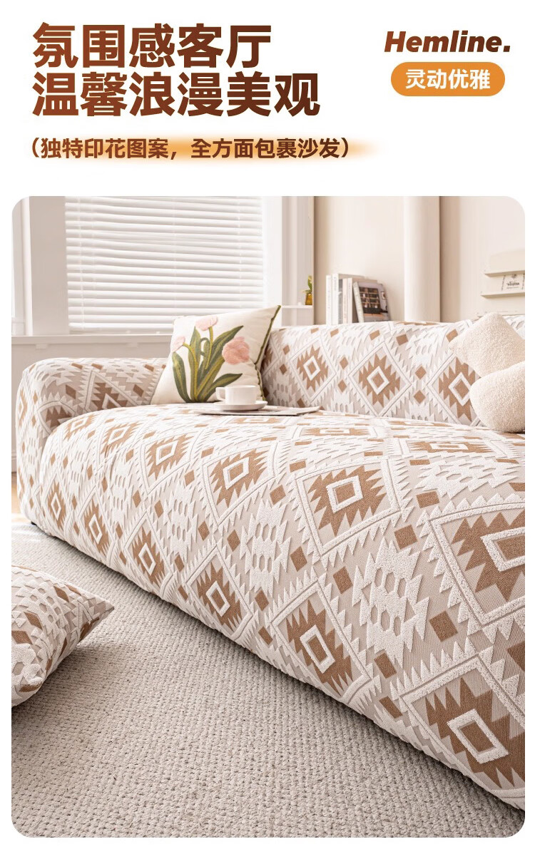 金拾美月防猫抓沙发套全包罩2026新款直排一体式沙发坐垫四季通用盖布巾 几何秘境-浅咖 全包单人/适用90-140cm(送抱枕套)