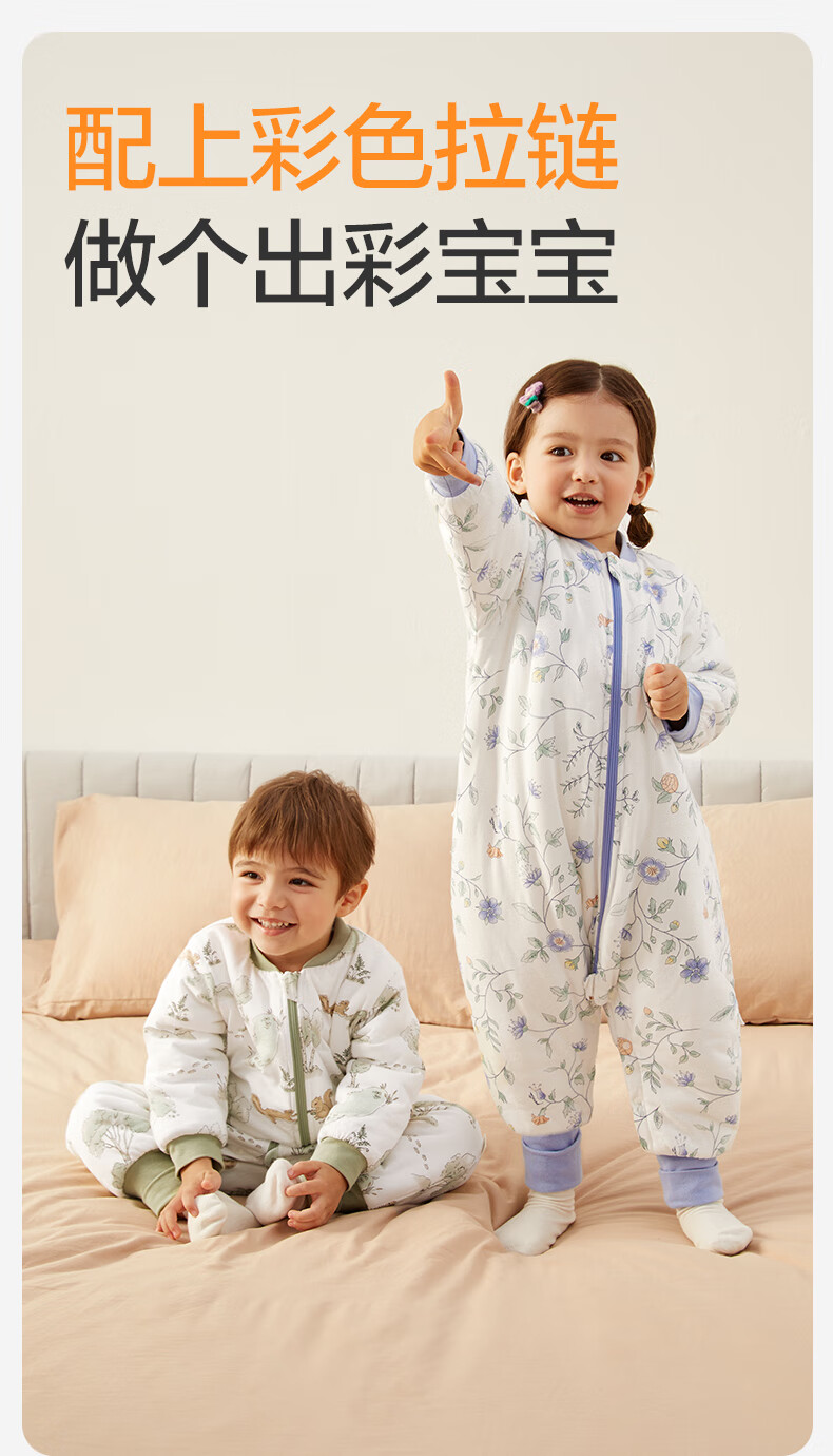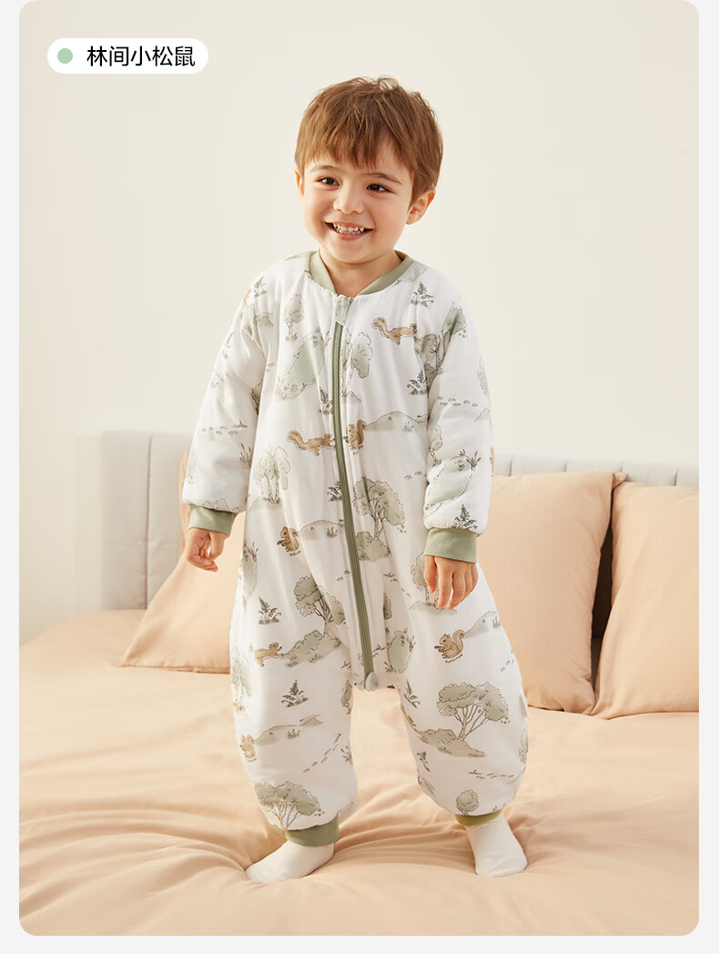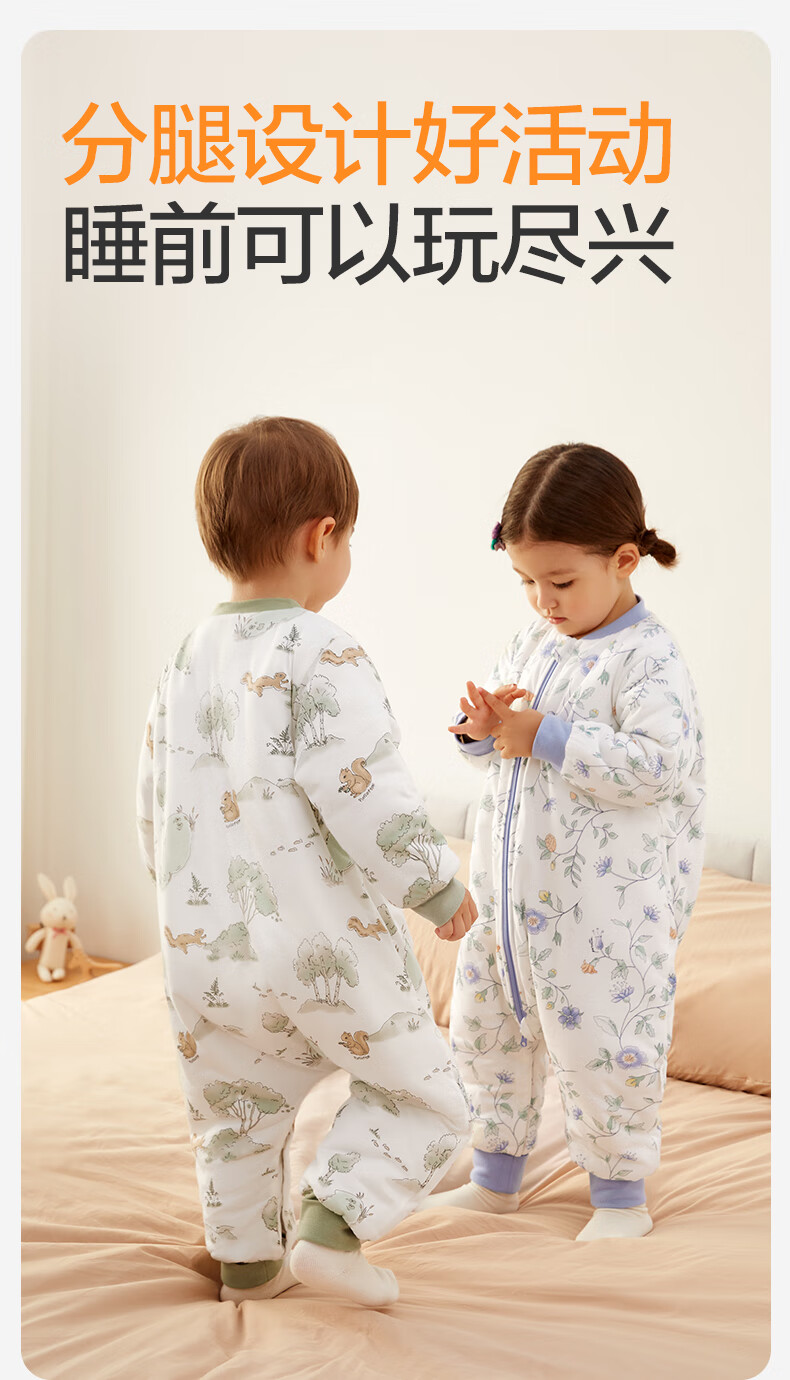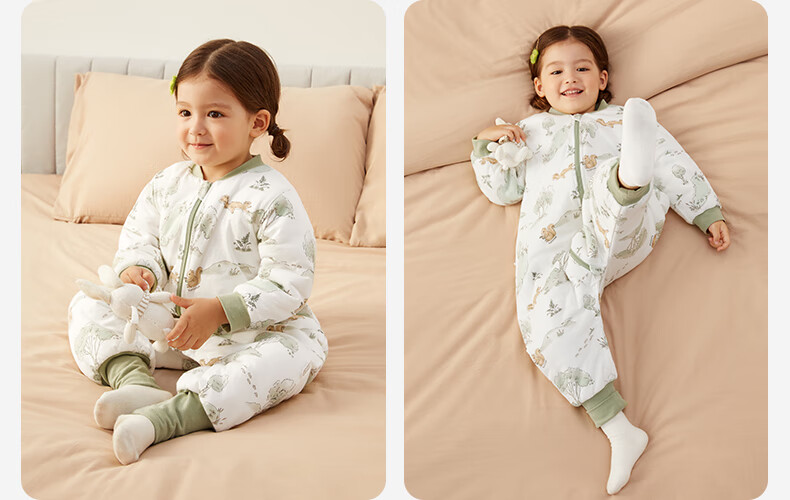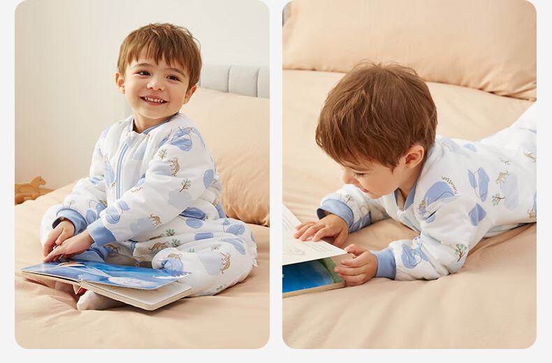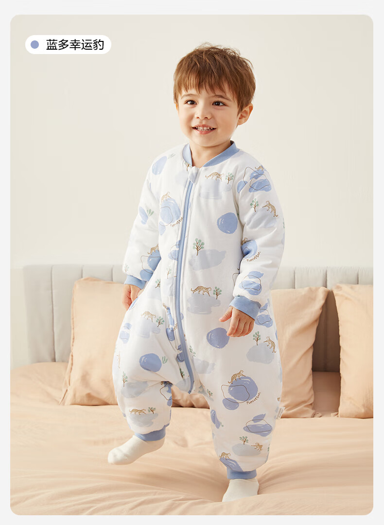 全棉时代婴儿睡袋秋冬厚款纯棉夹棉分腿睡袋睡衣儿童防踢幸运豹100×54cm