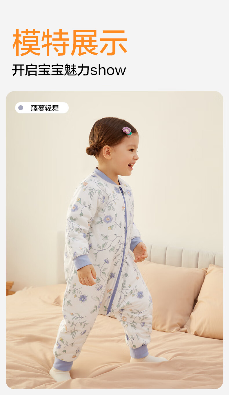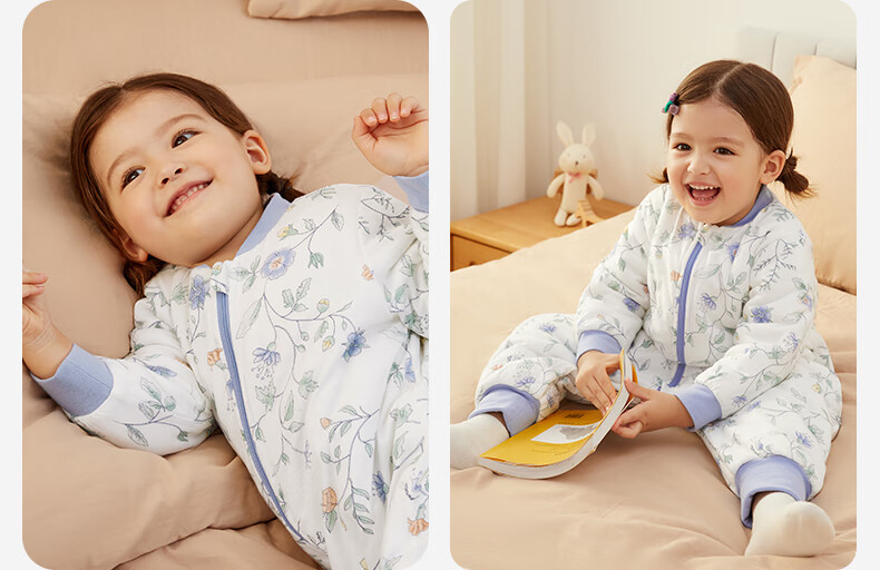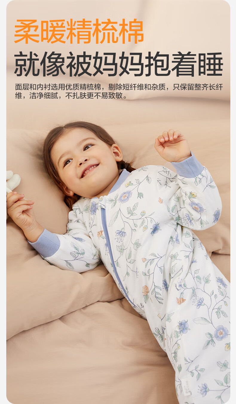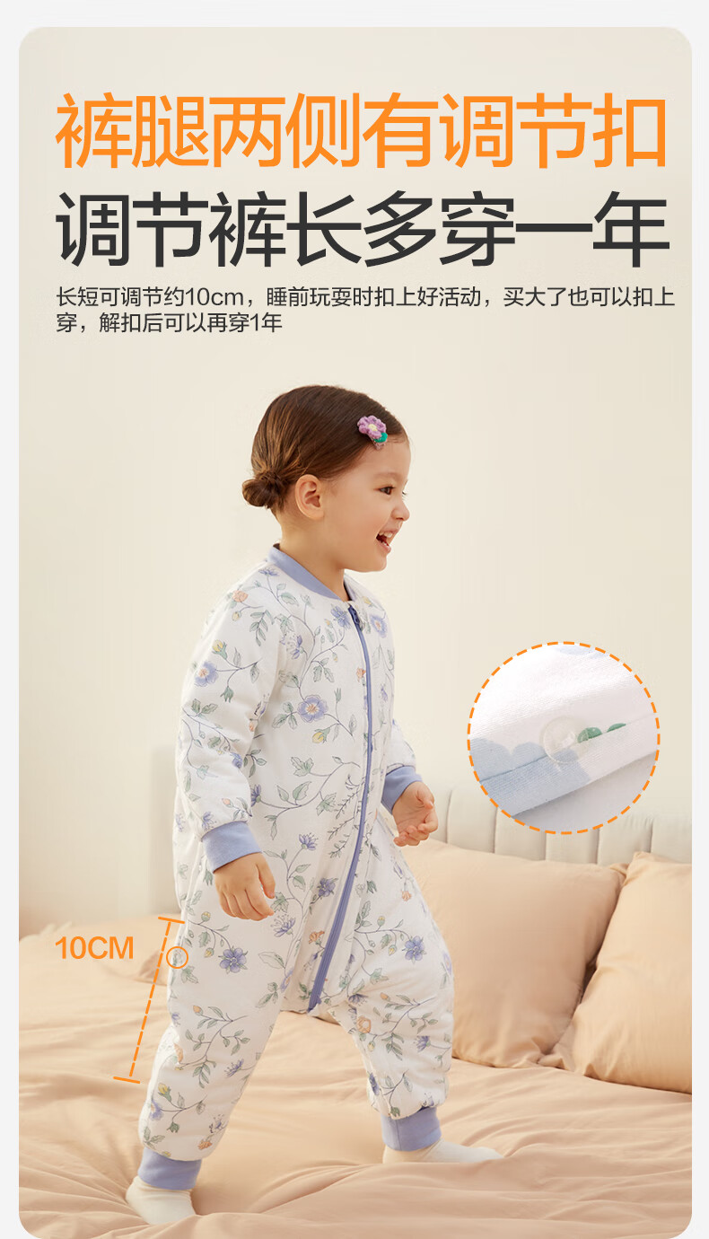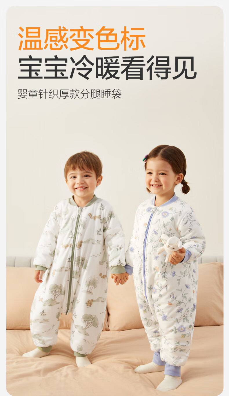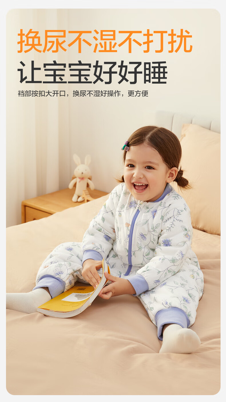 全棉时代婴儿睡袋秋冬厚款纯棉夹棉分腿睡袋睡衣儿童防踢幸运豹100×54cm