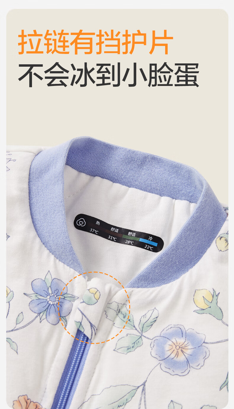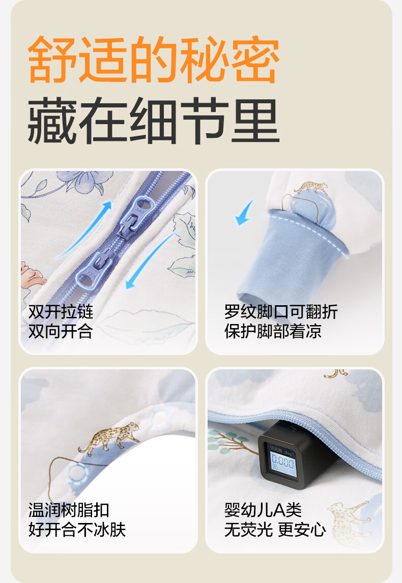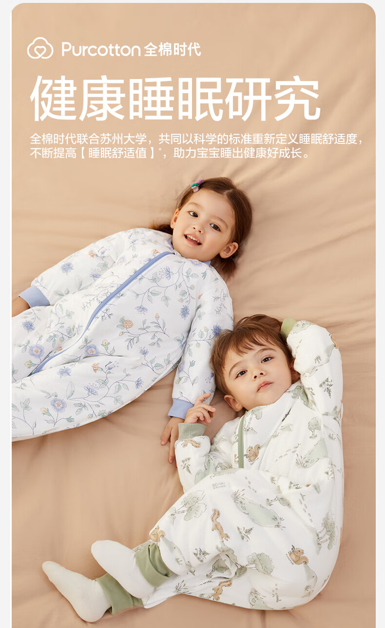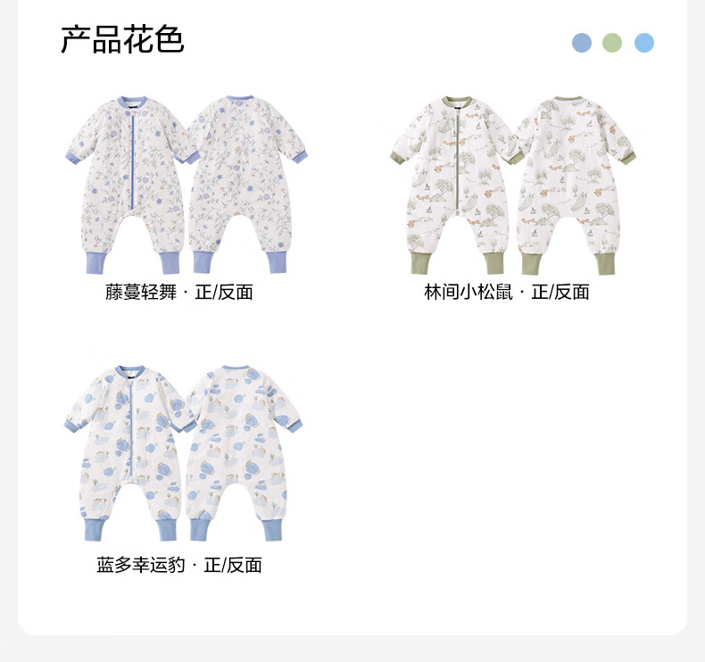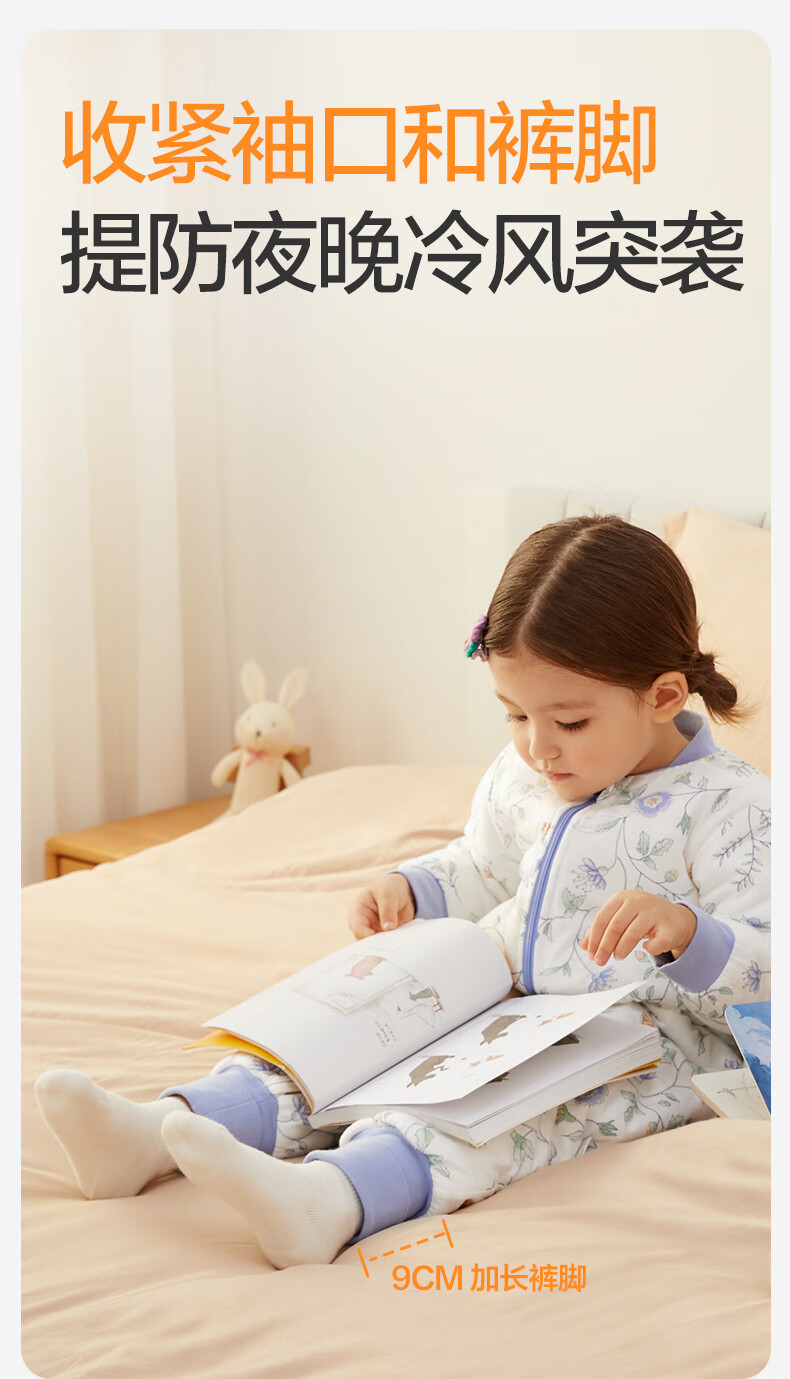 全棉时代婴儿睡袋秋冬厚款纯棉夹棉分腿睡袋睡衣儿童防踢幸运豹100×54cm